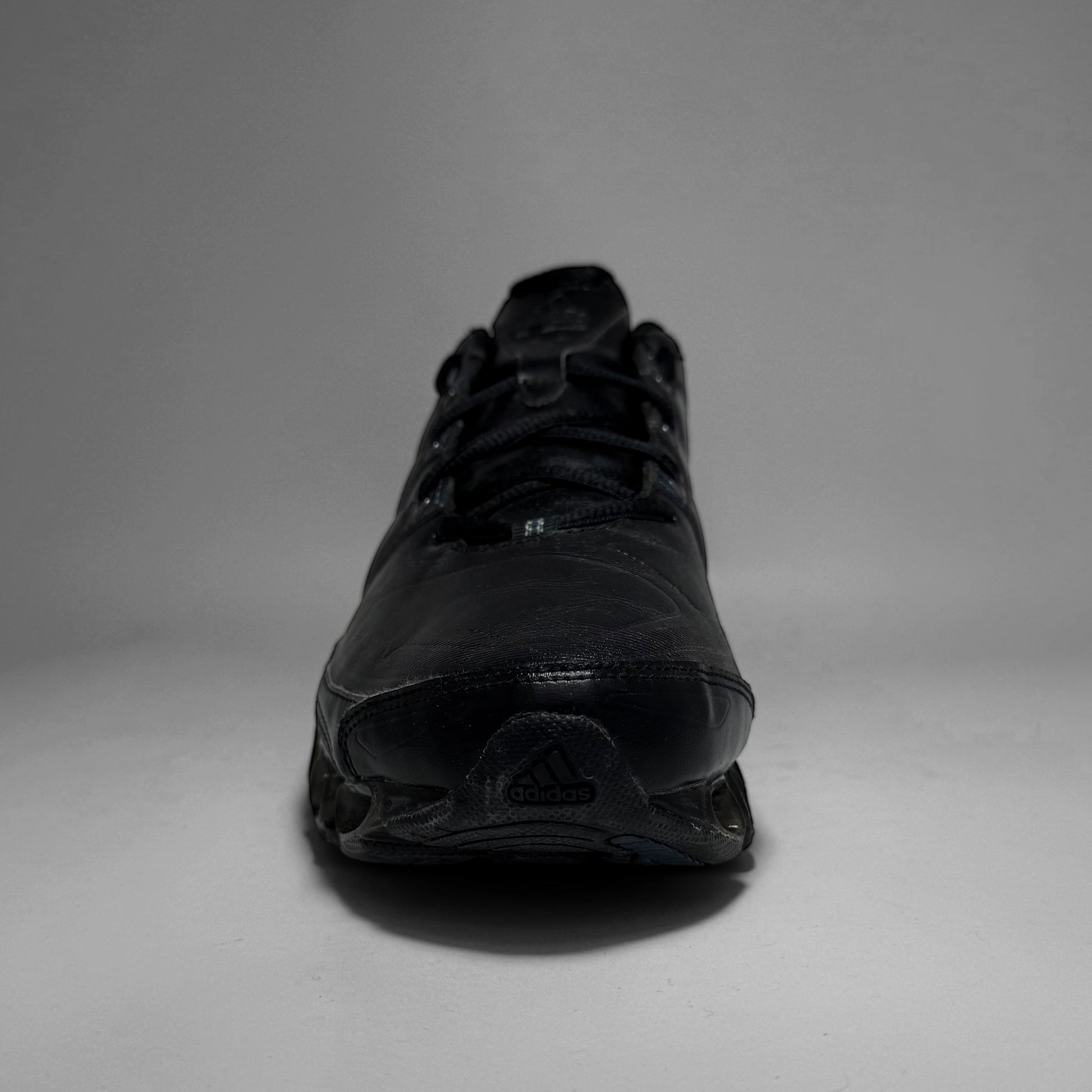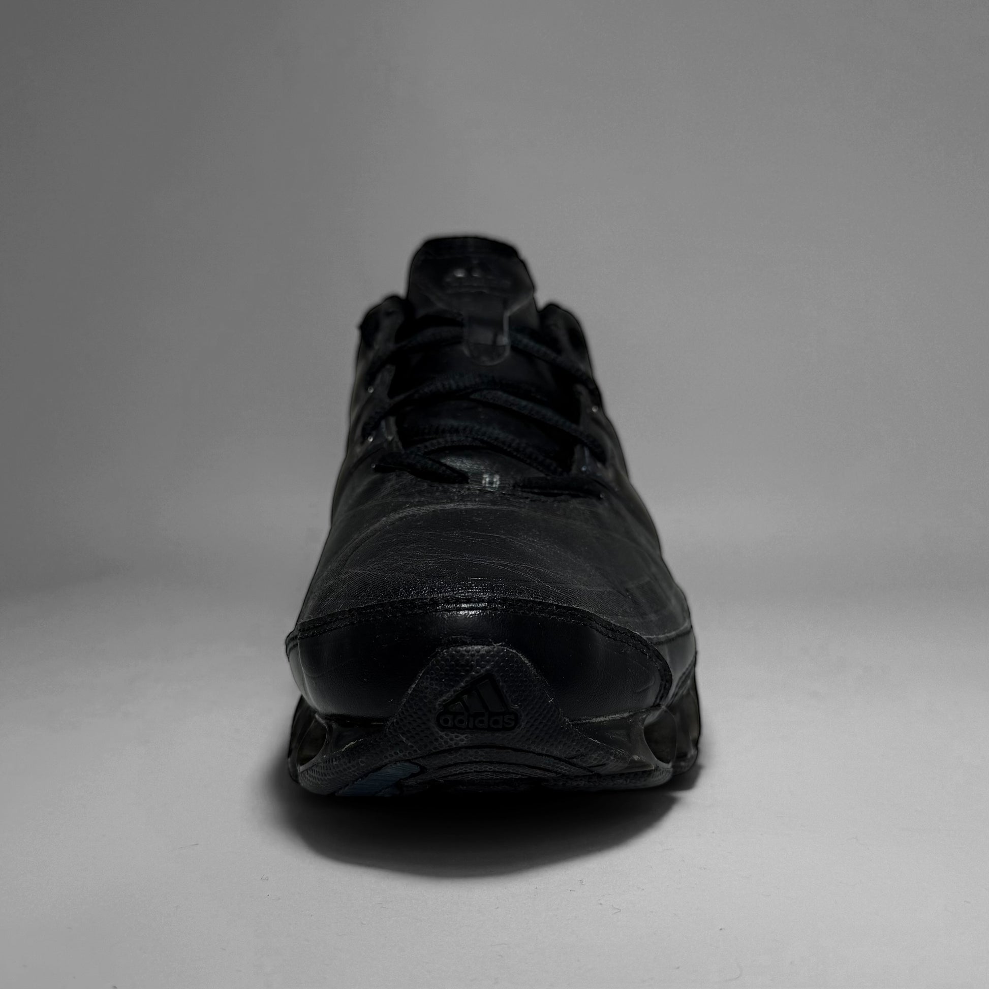 Featuring a full black upper combining smooth, detailed and grained leather panels with tonal Three Stripes and metallic blue detailing throughout. Built on the innovative Bounce sole system, designed for energy return and impact absorption. A rare prototype model.