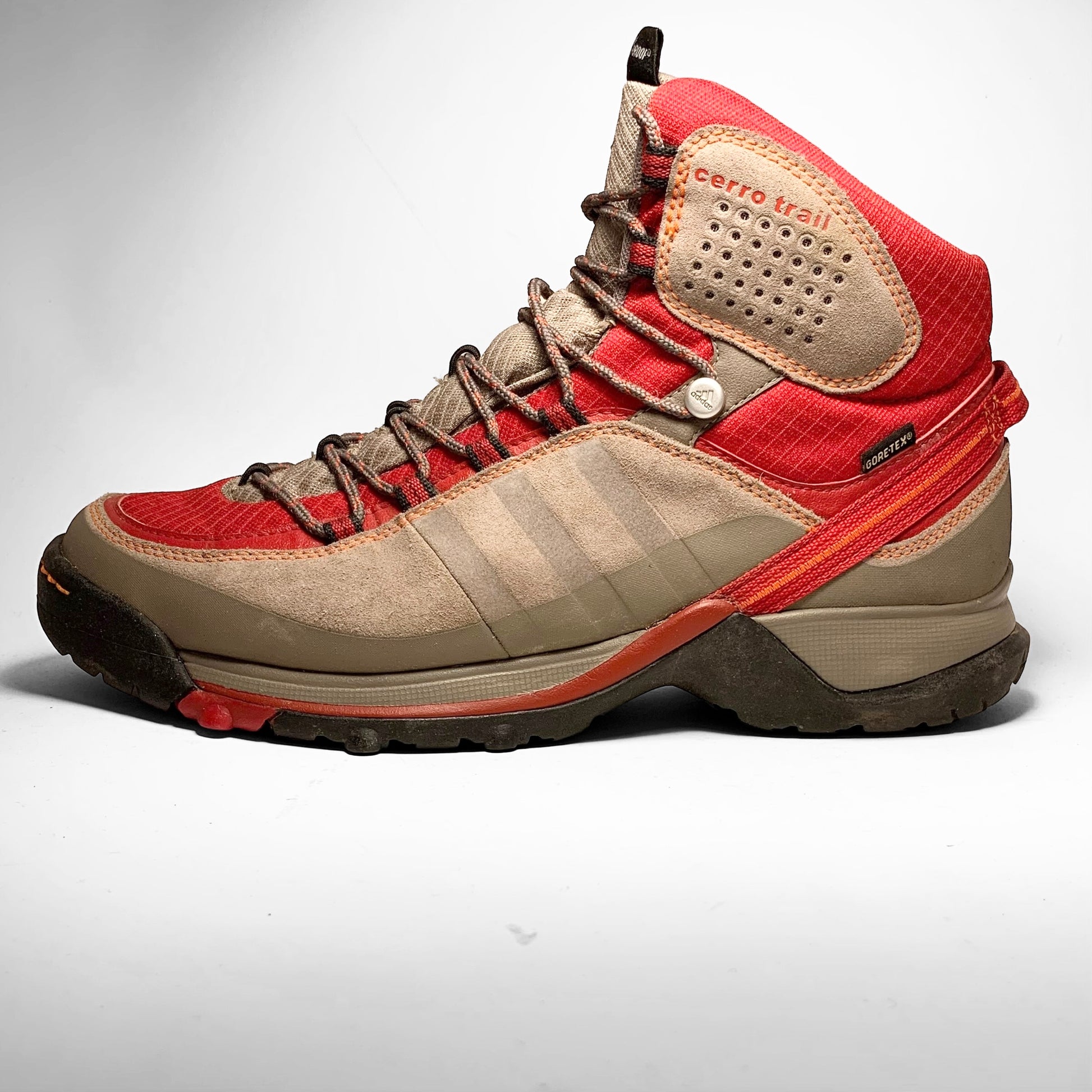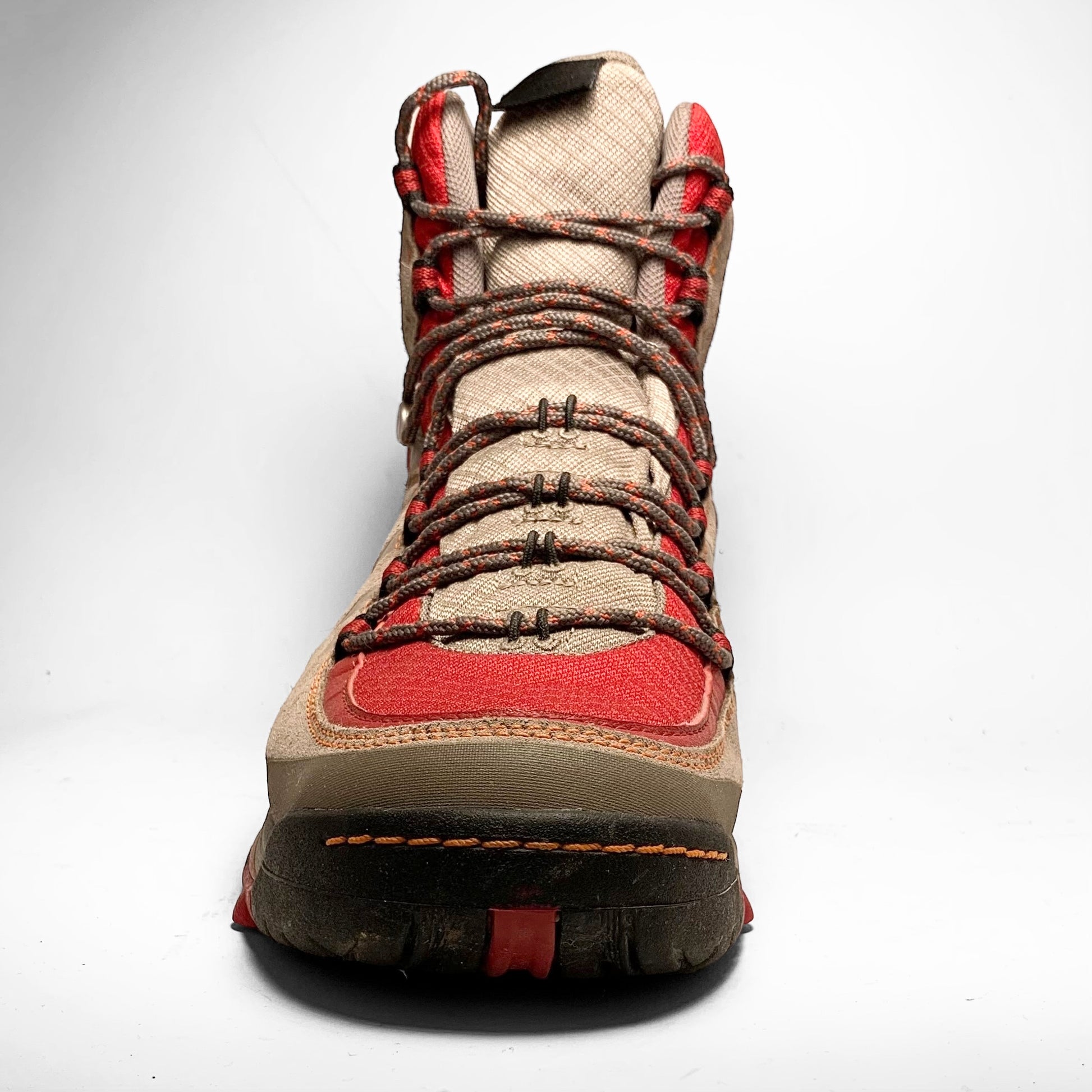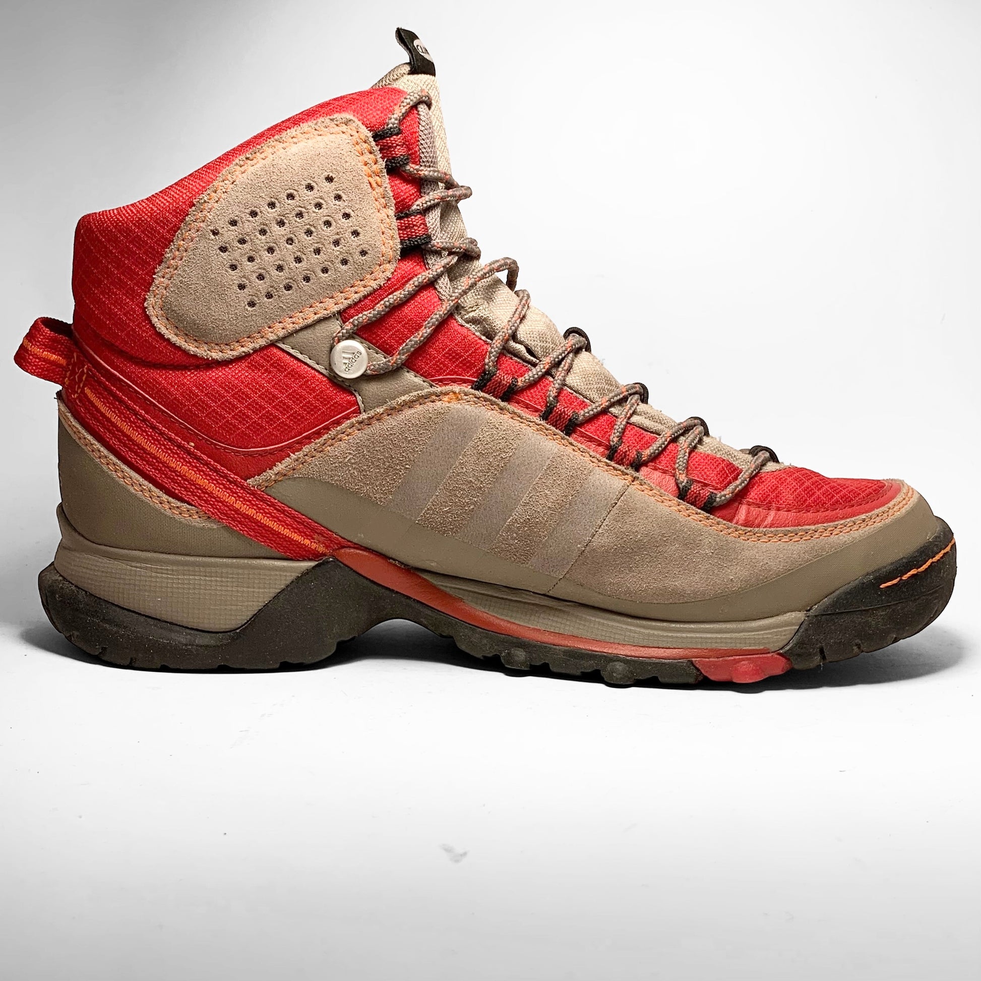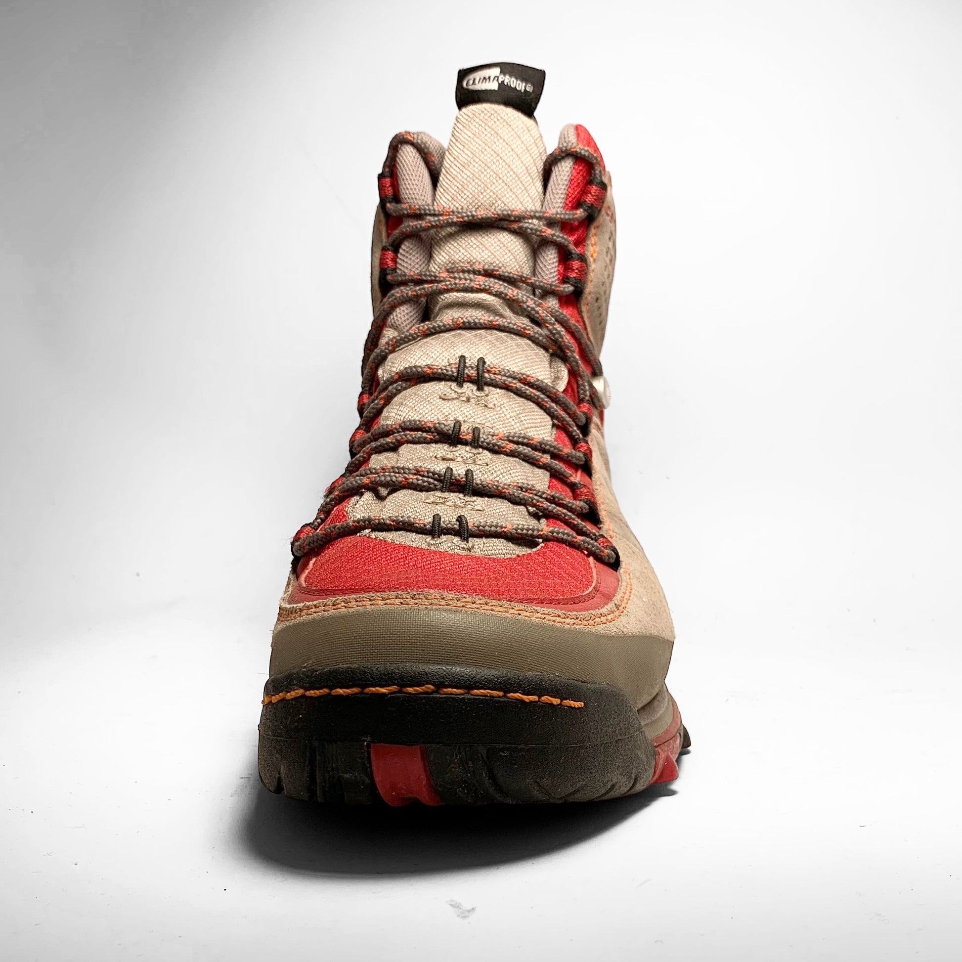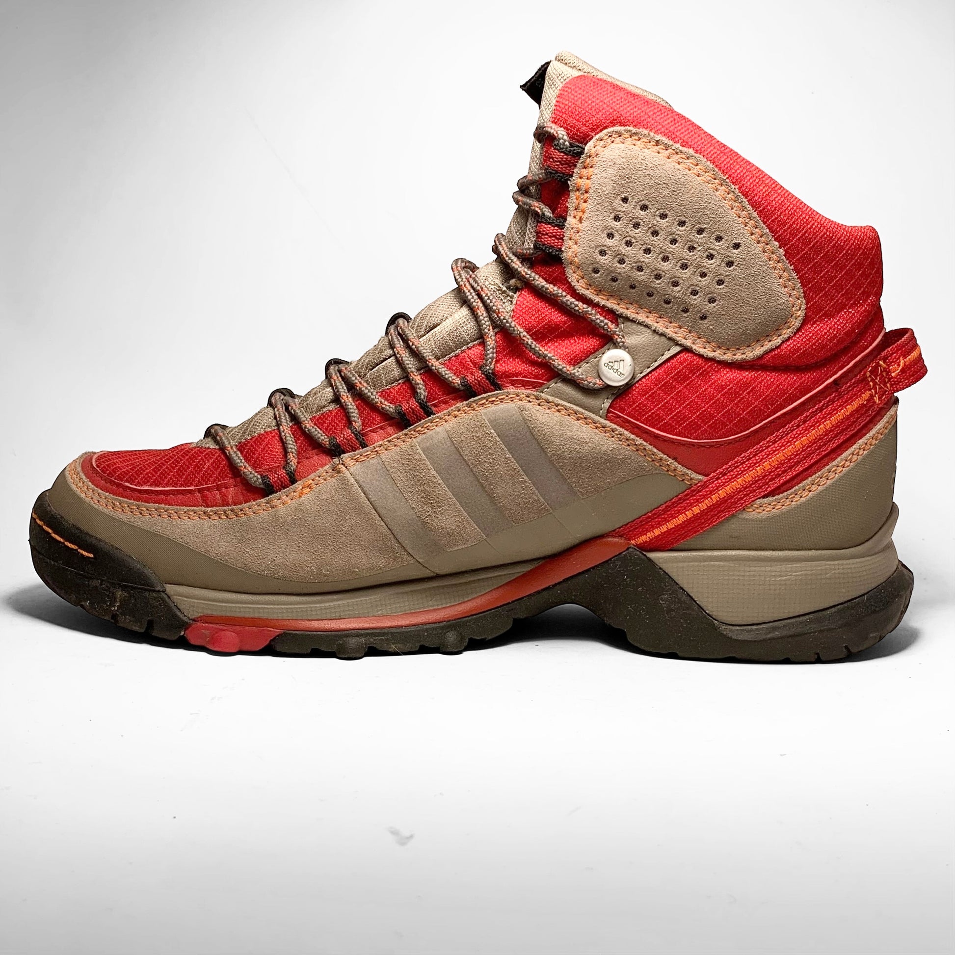 Perfect mix between the red rip-stop layers, branding and mid/out-sole, and tan coloured, perforated, detailed, and branded suede panels throughout.