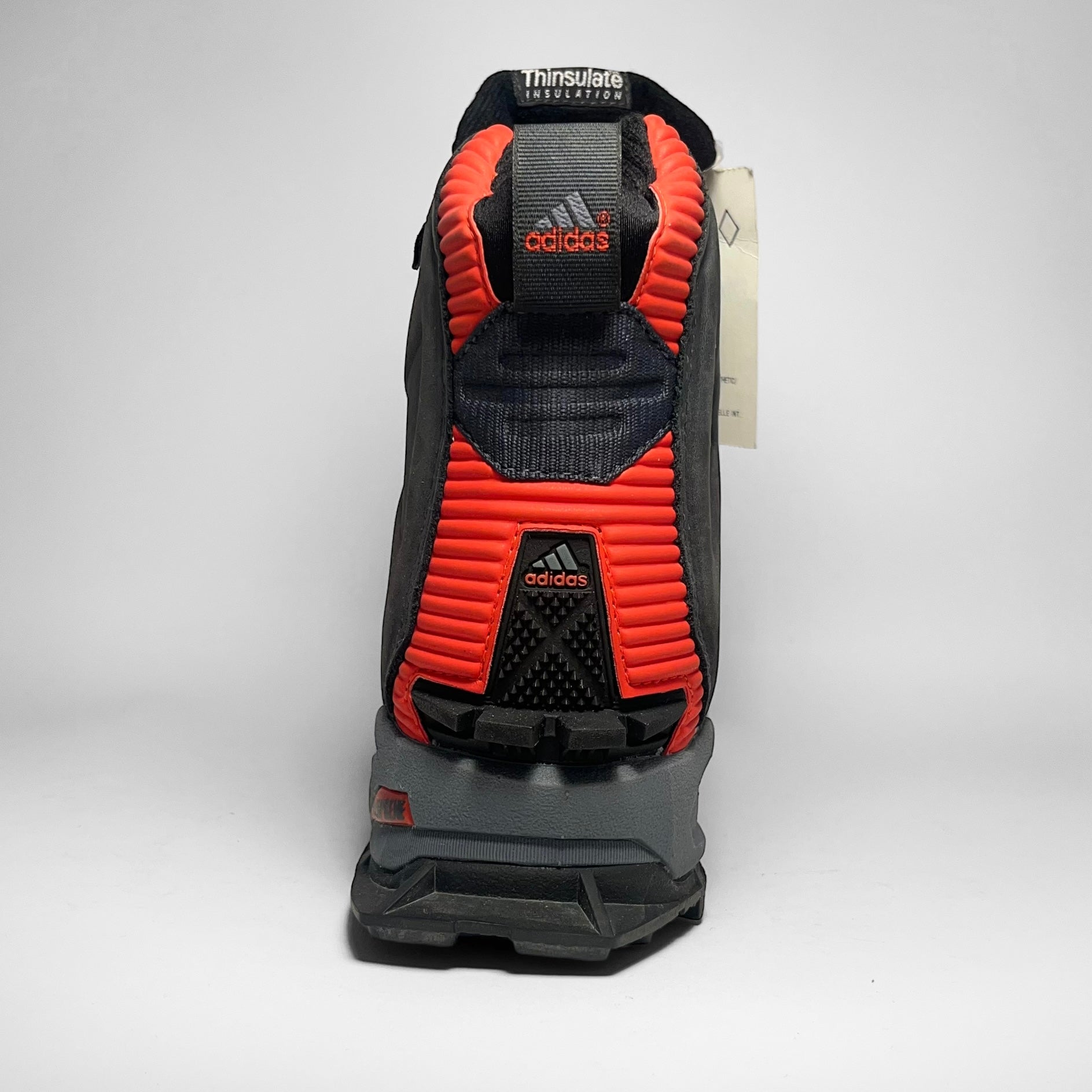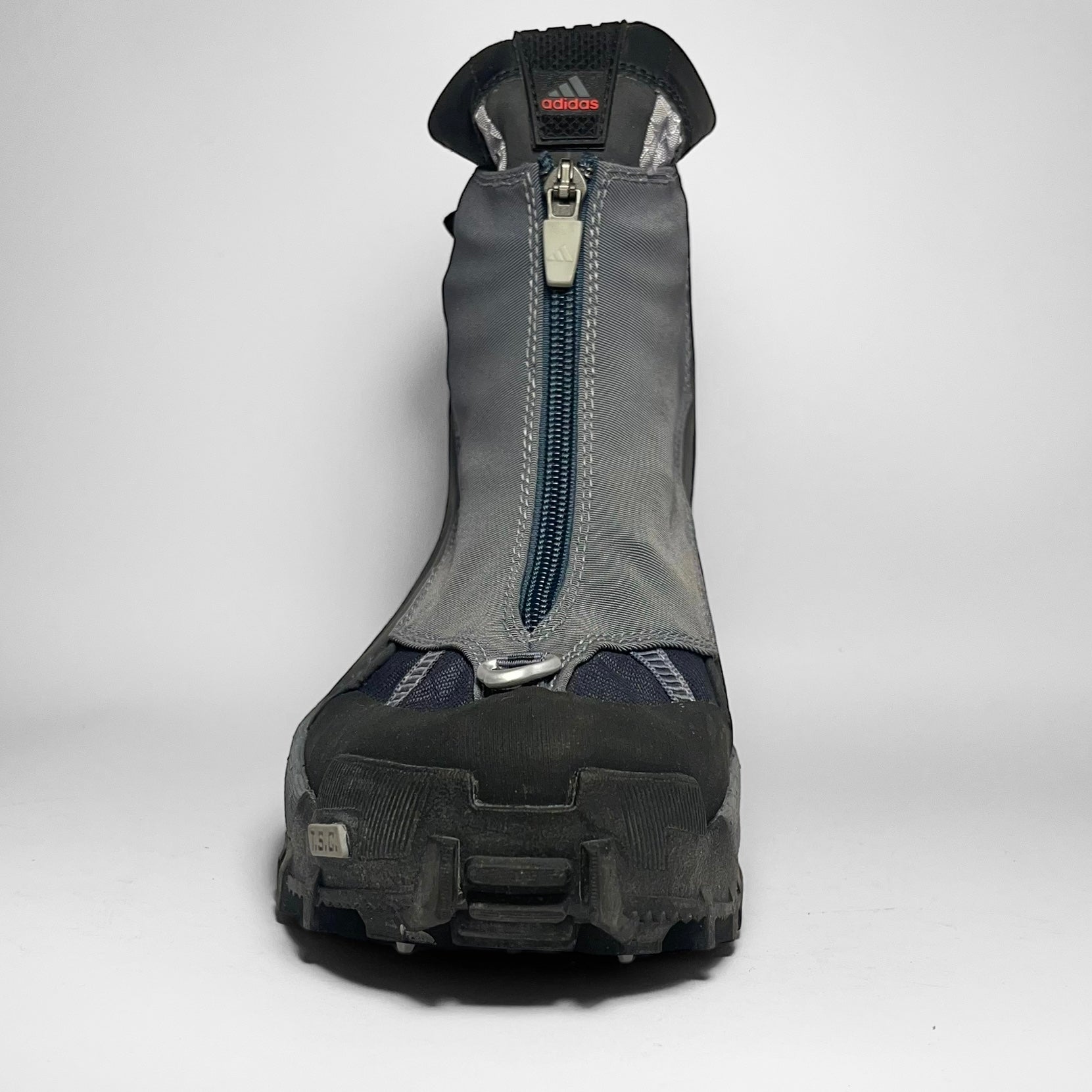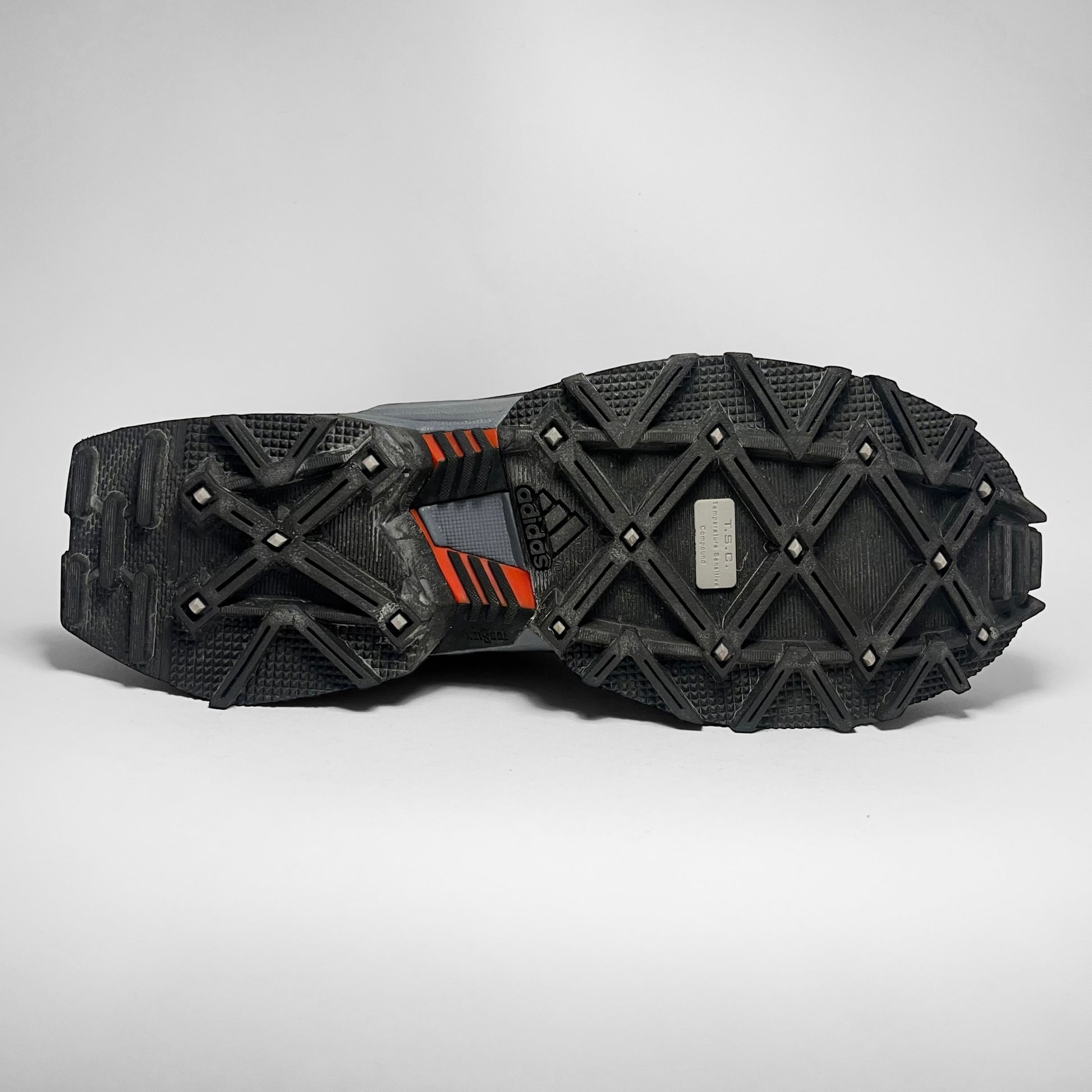 Sublime example of how to execute an off-terrain boot that can withstand all conditions. Woven nylon zip cover for the lacing system, woven nylon base front part with enforced belts, robust and embossed detailing side panels, rear-chassis, trail outsole, tooling and metal clip at front to secure your hiking pants. All with AdiDry (waterproof) technology. Perfect for styling and referencing.