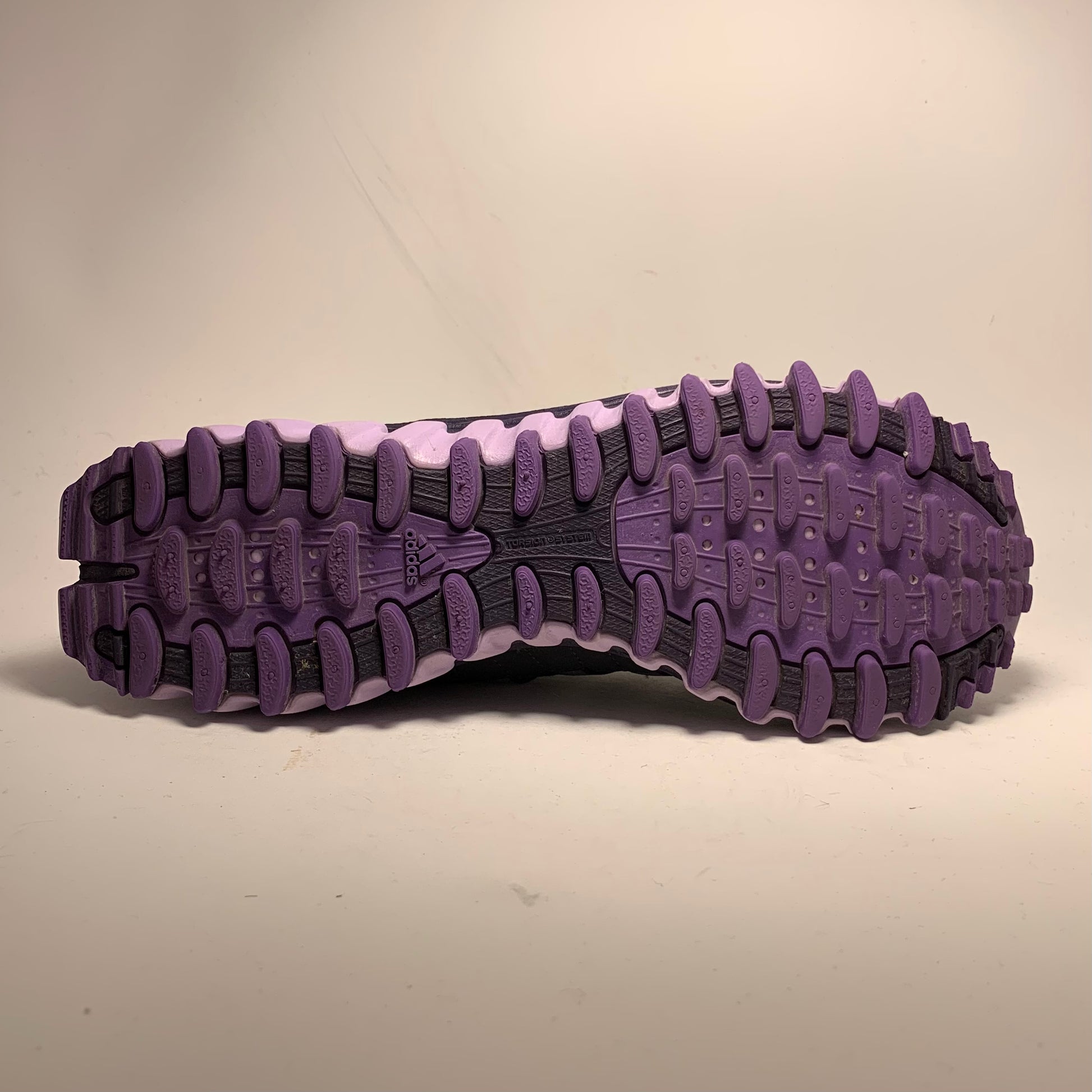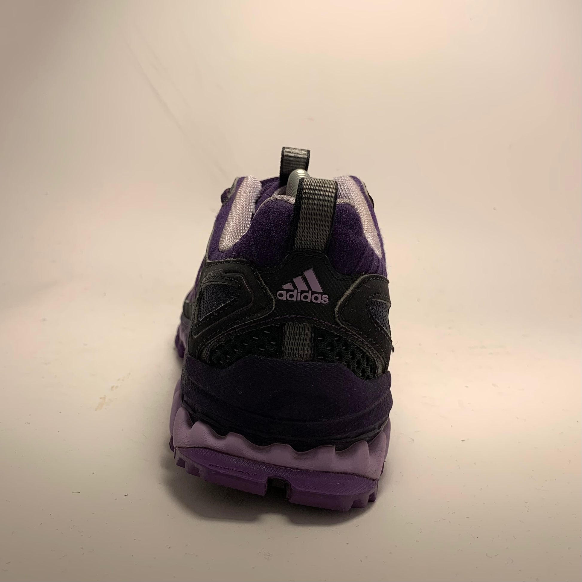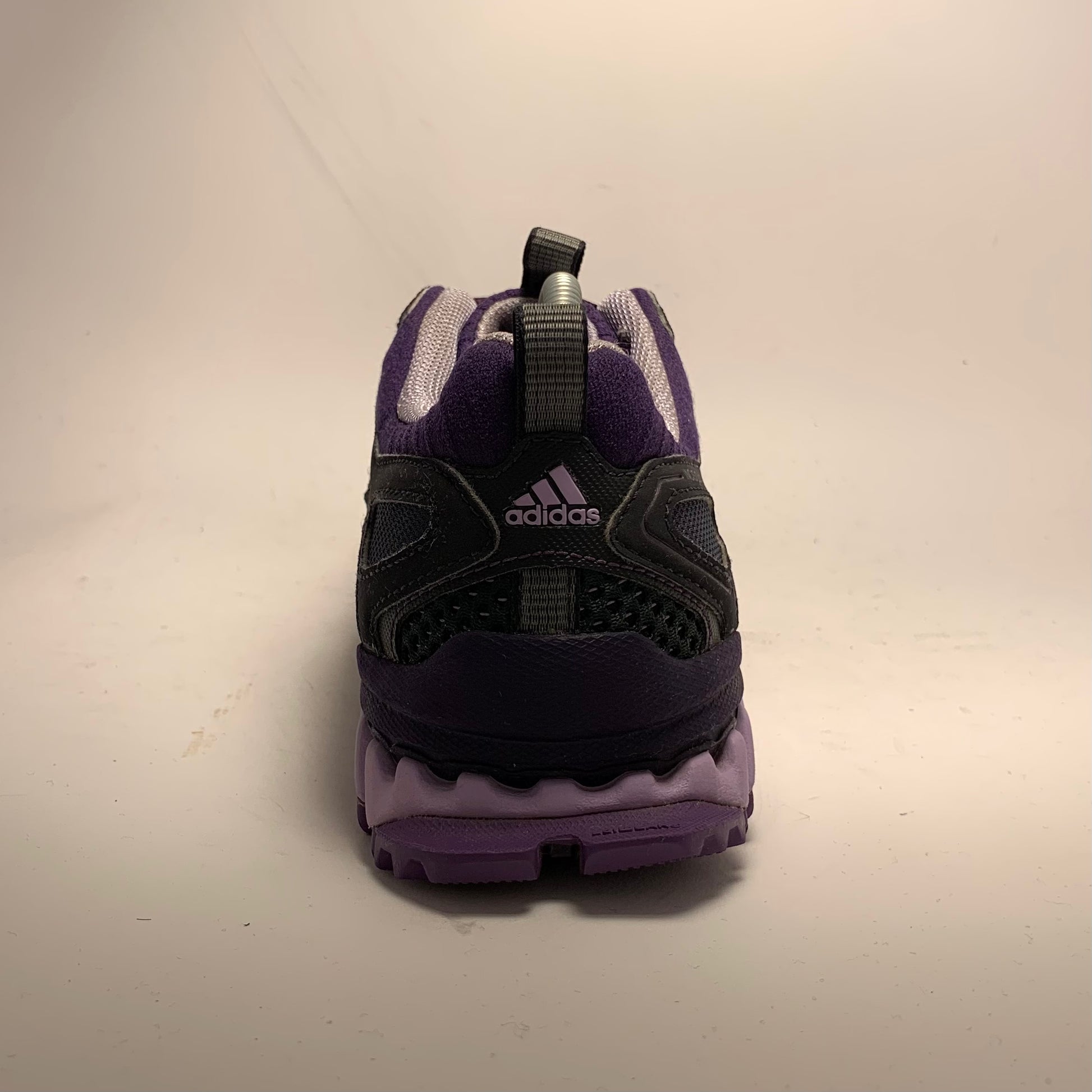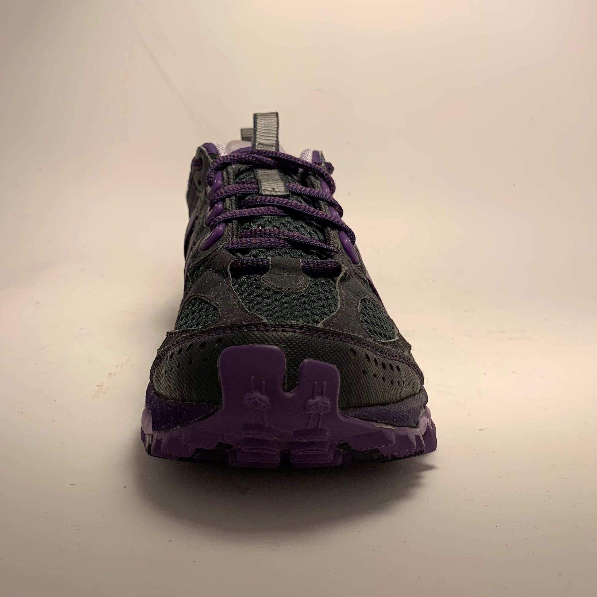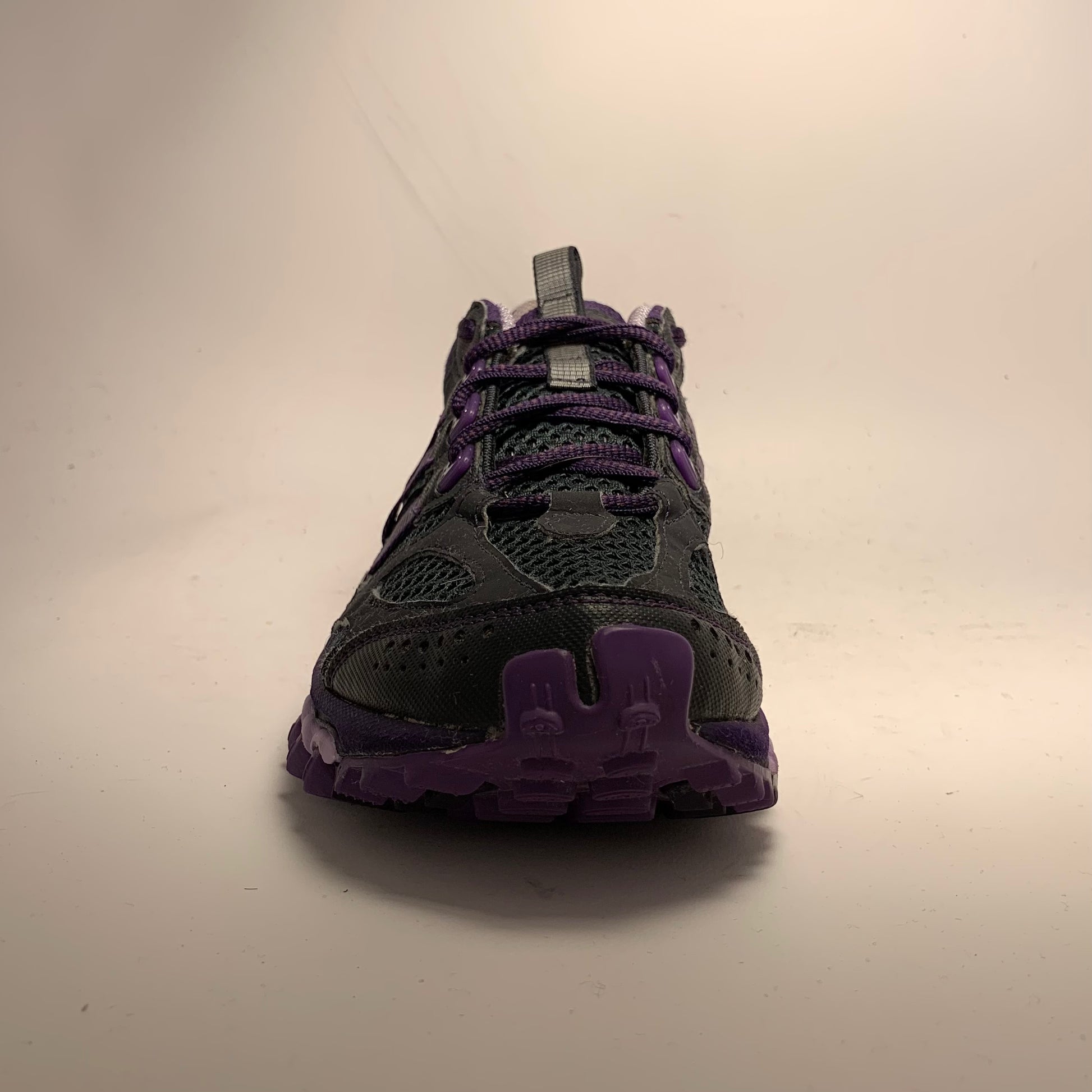 Condition is like new. Double layered mesh, black rubberised panels, purple cotton three-striped straps, neoprene embossed sock-liner matching the laces and triple structured sole, and pull-tabs on tongue & heel.