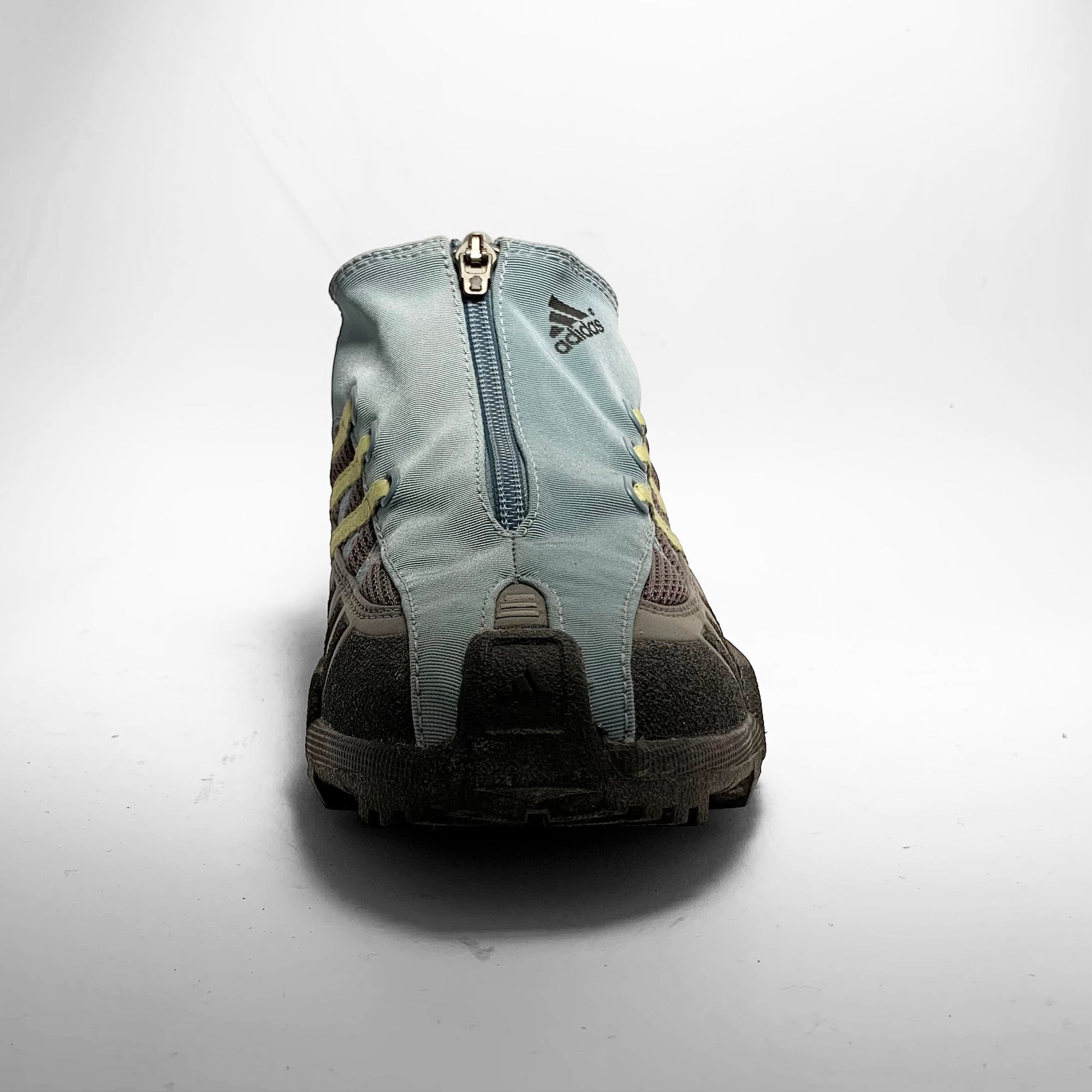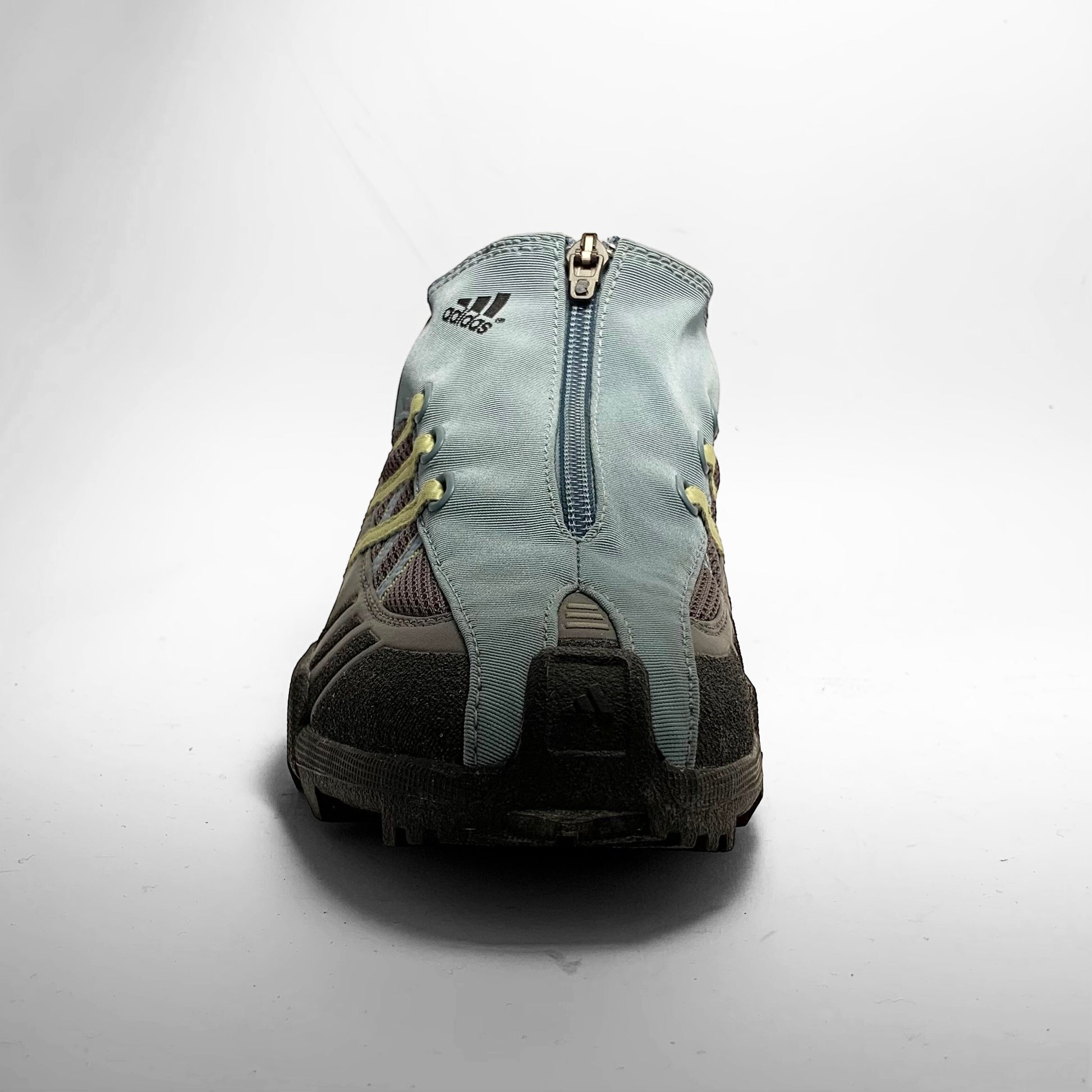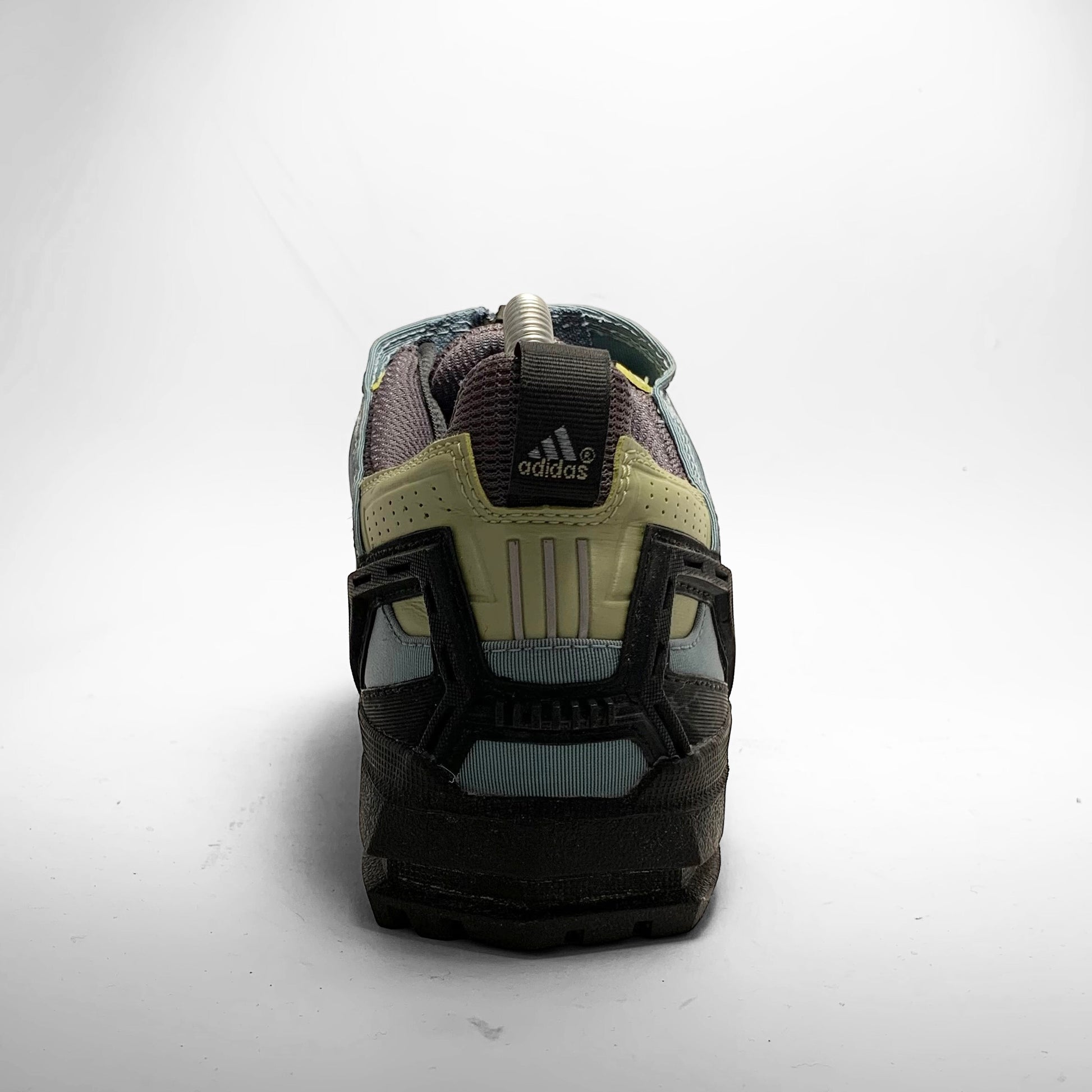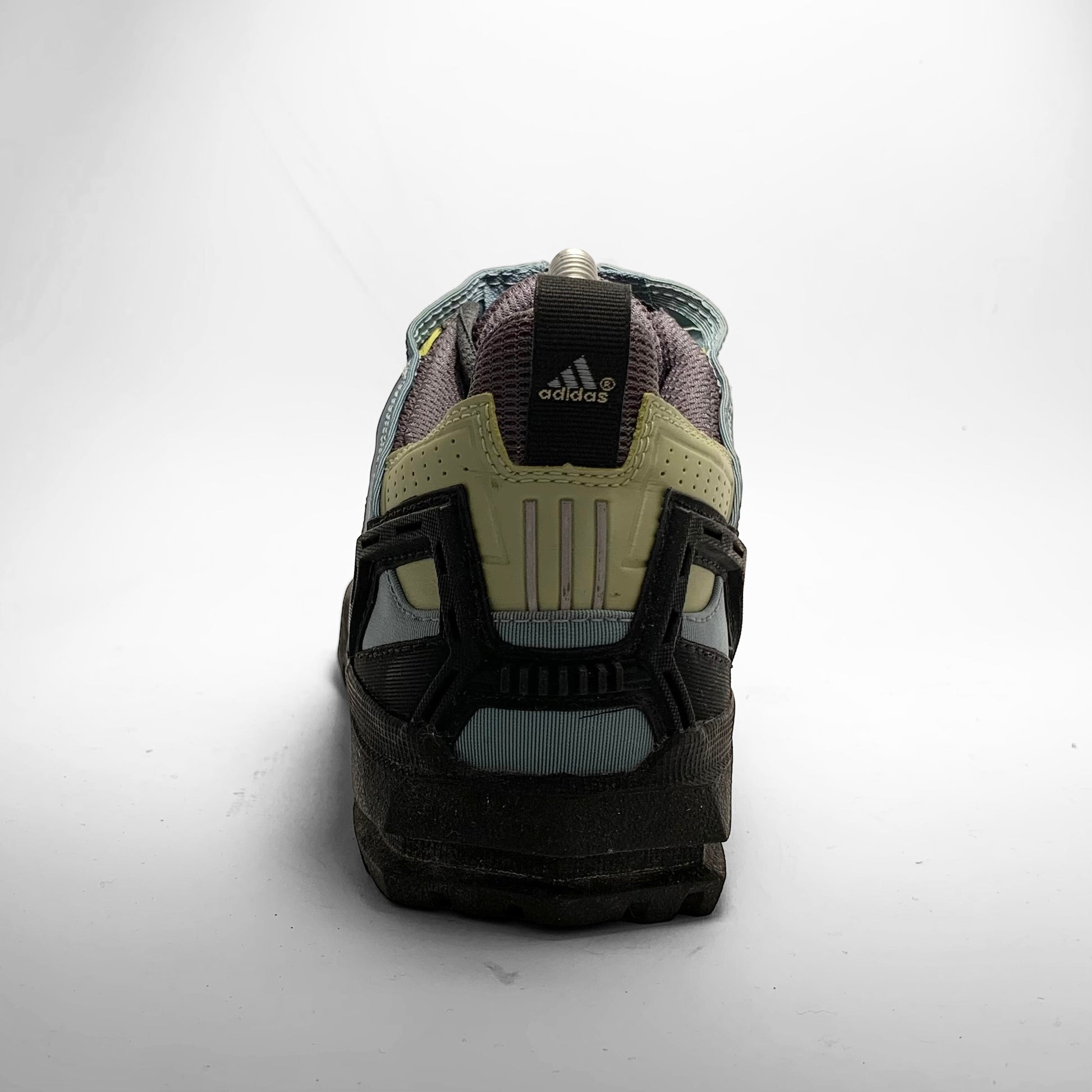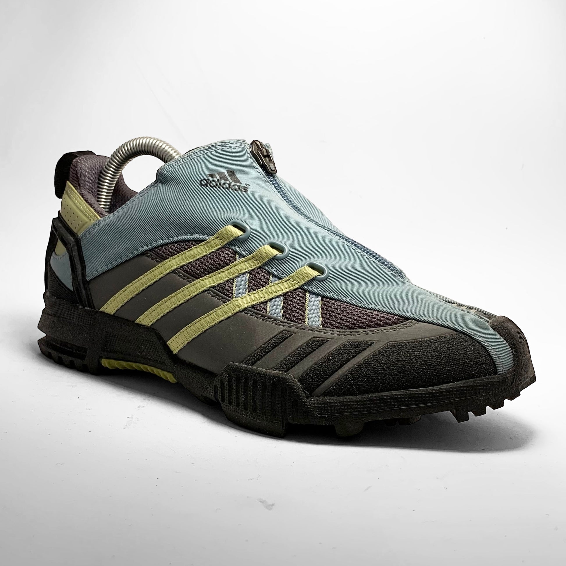 Interesting design on this model with robust panels, rubber treated parts, neoprene cover with zip, cotton wove three-striped yellow straps, mesh base, leather perforated panels and rear cage for stability.