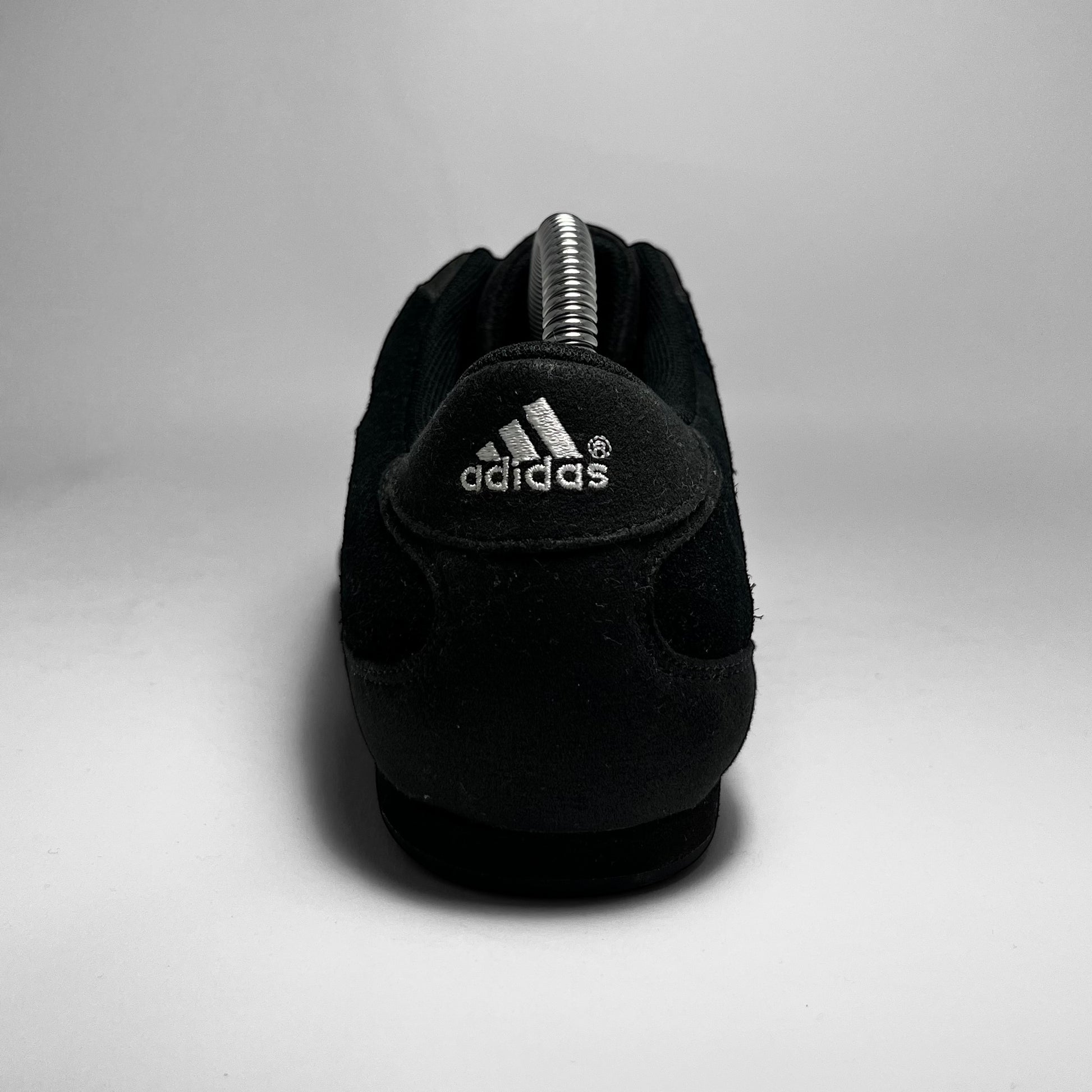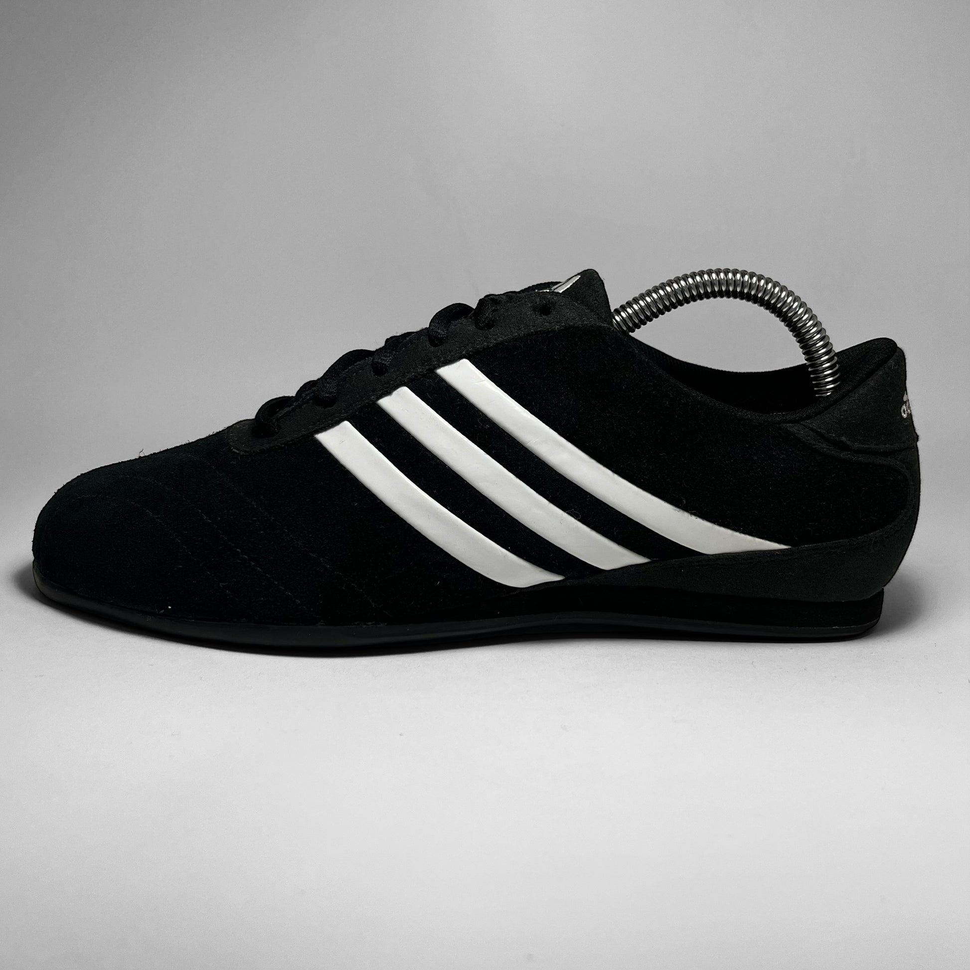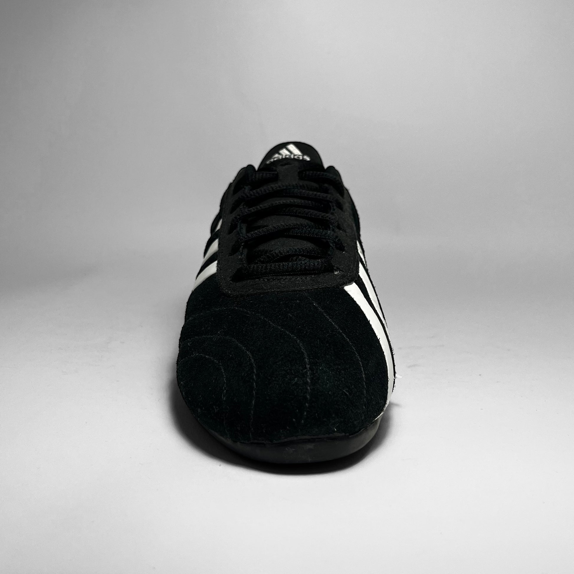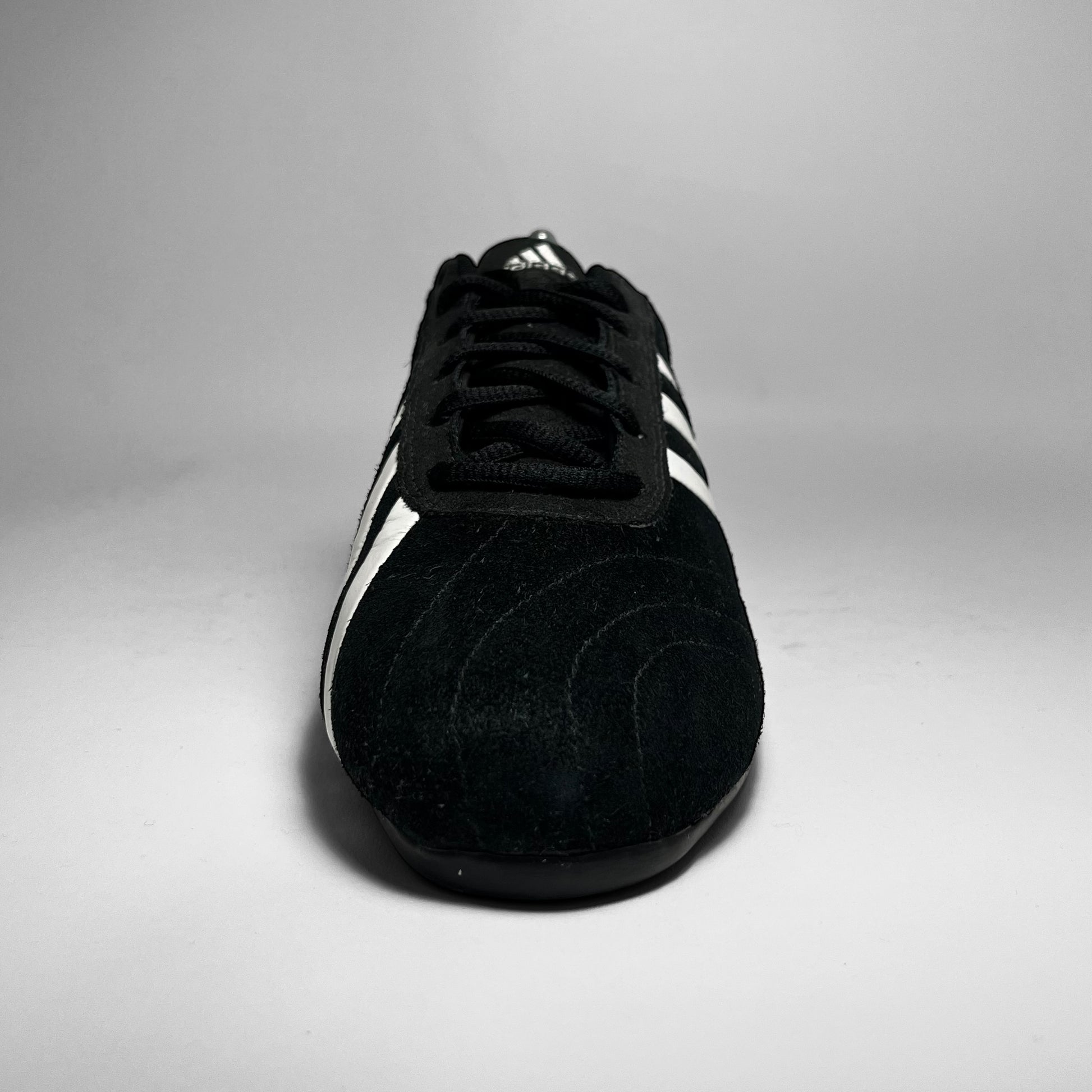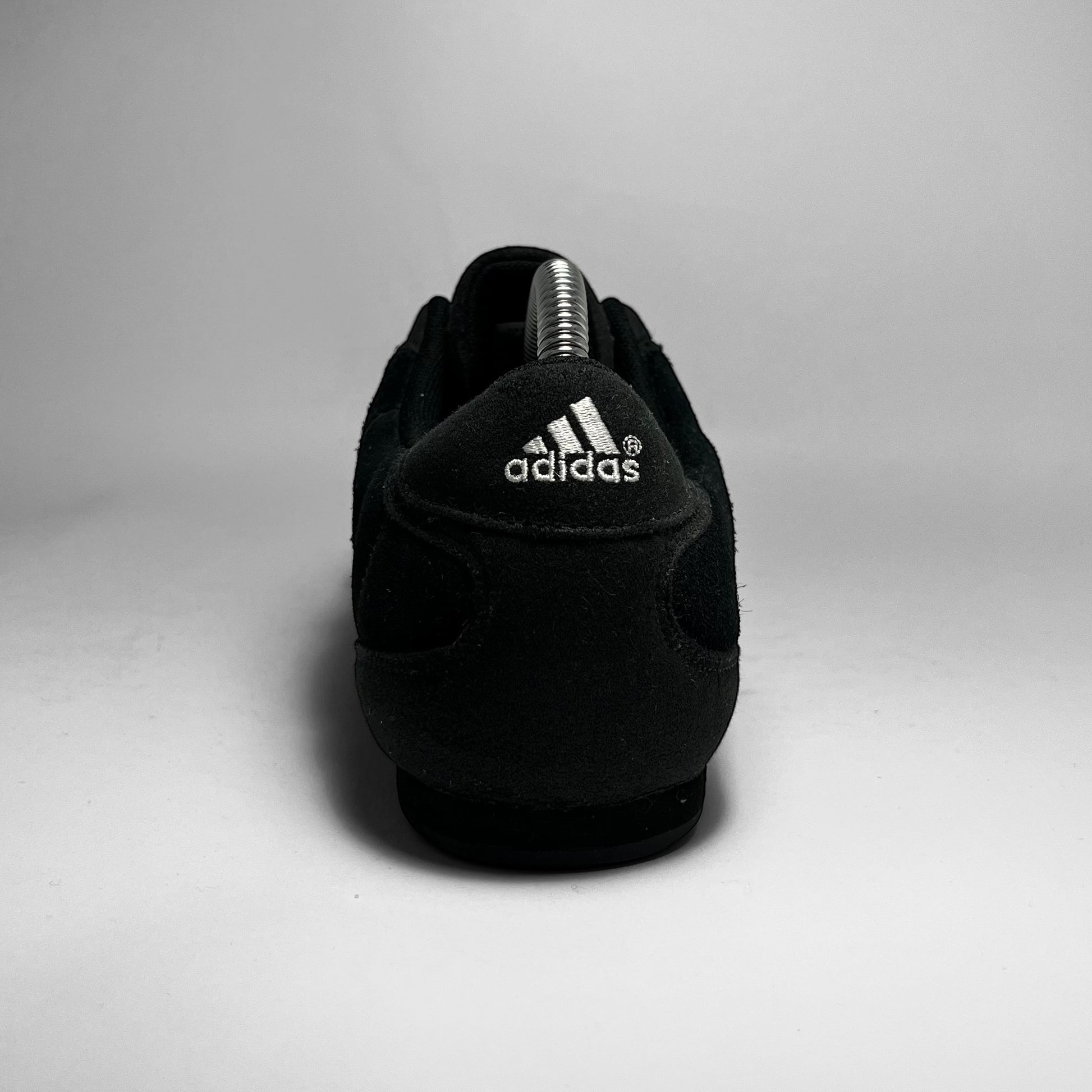 Super nice pair, instant classic. Suede uppers with stitching pattern on the uppers matching the three stripe branding which kinda wraps around the upper, two-tone black panels, embroidered branding and flower of life-like outsole pattern.