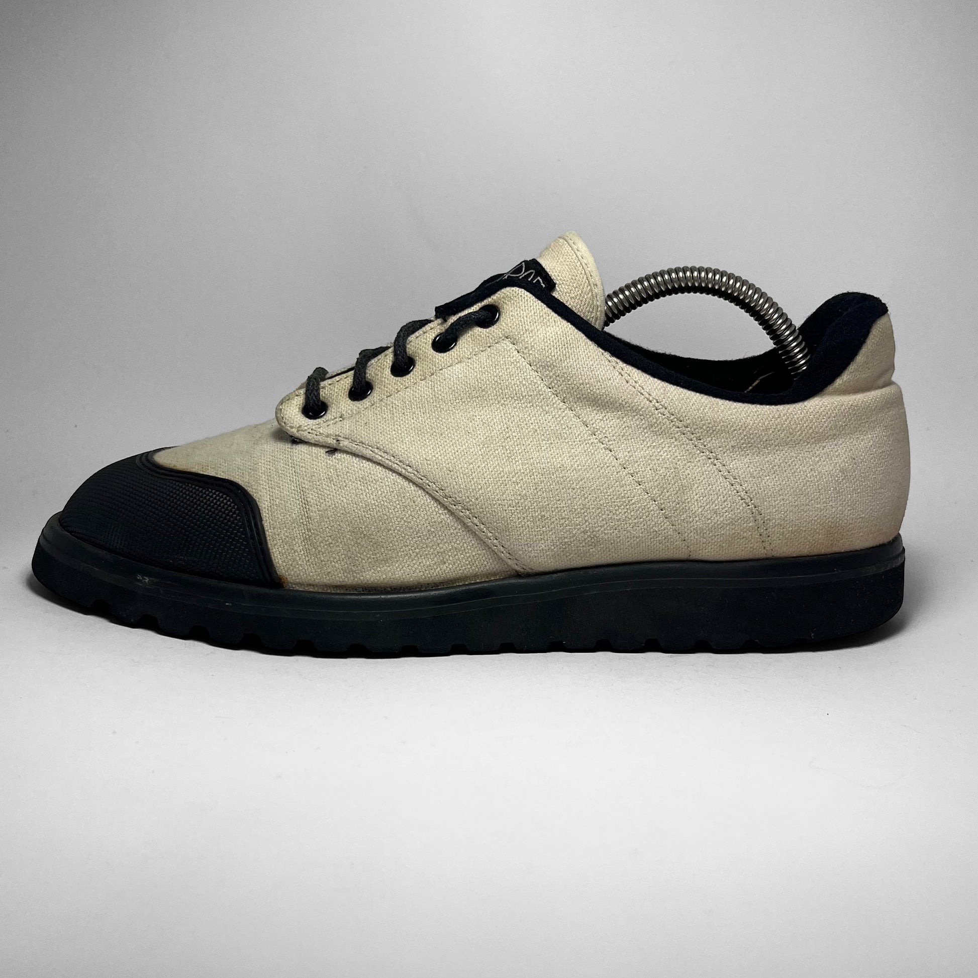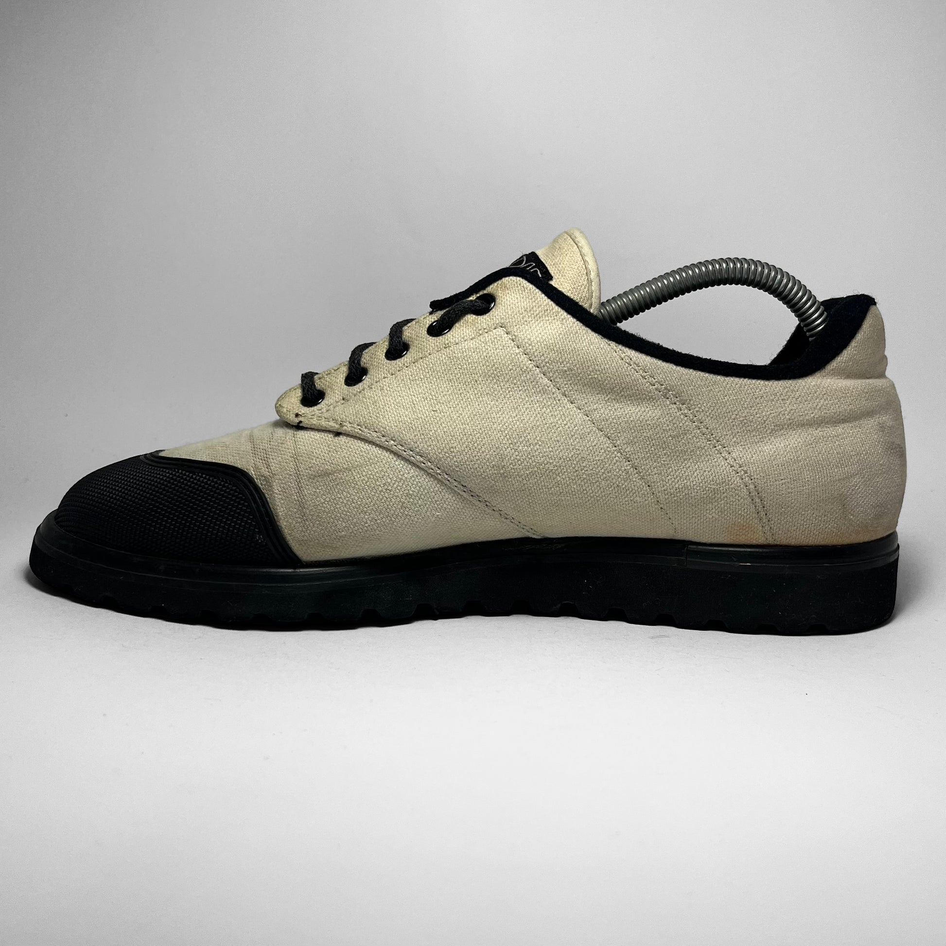 Made in Morocco in the 90s from the X-Large Tribe capsule, hemp-like upper panels with rubber nose/mudguard which is ideal for skating, branded tag on tongue. Classic silhouette.