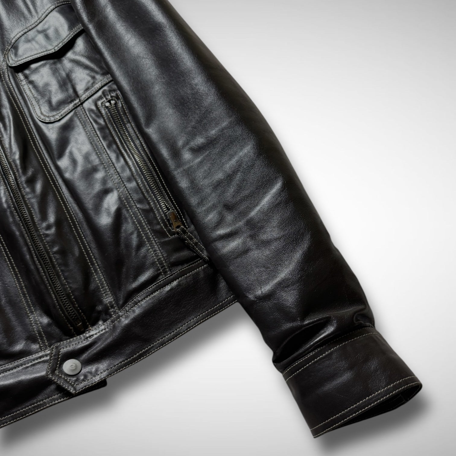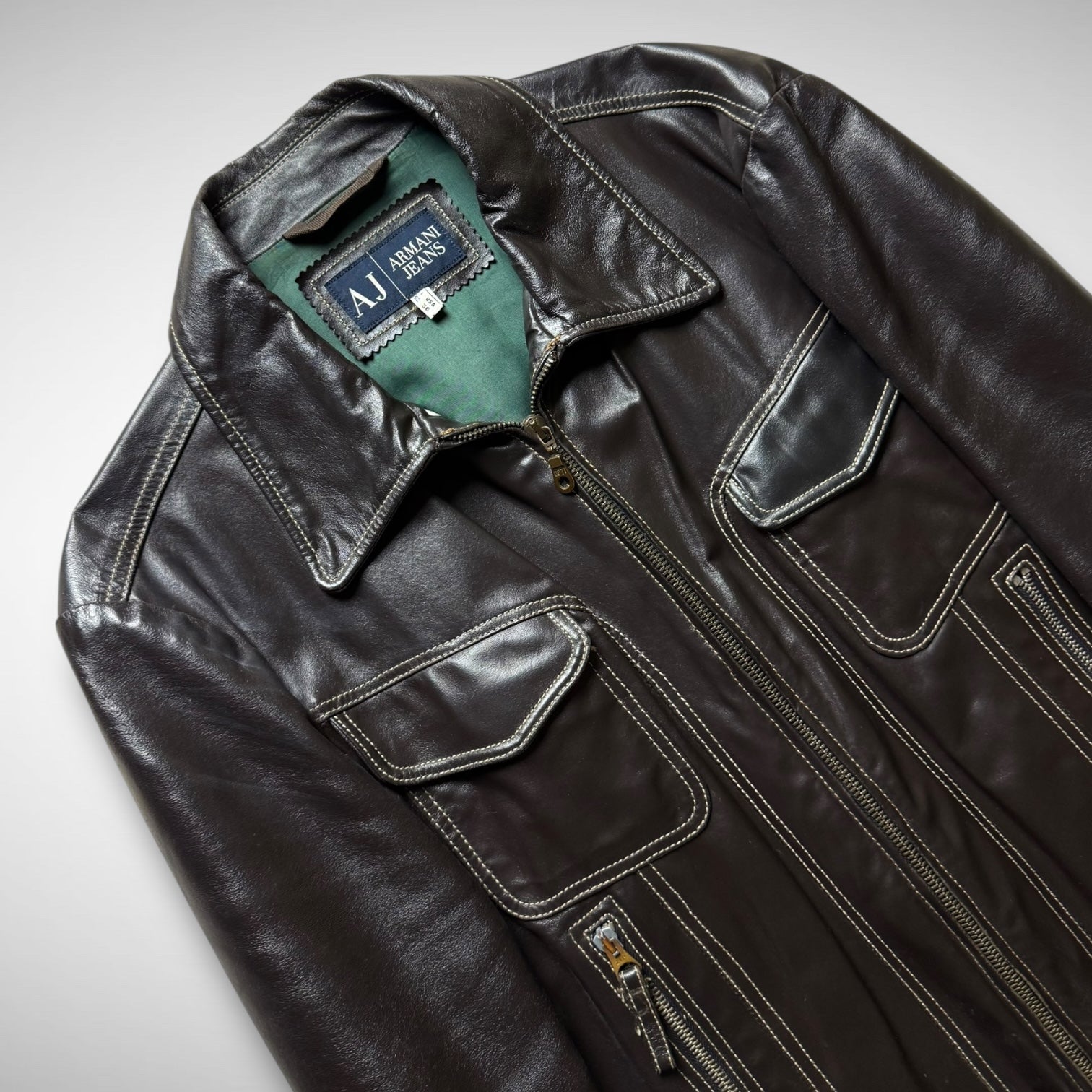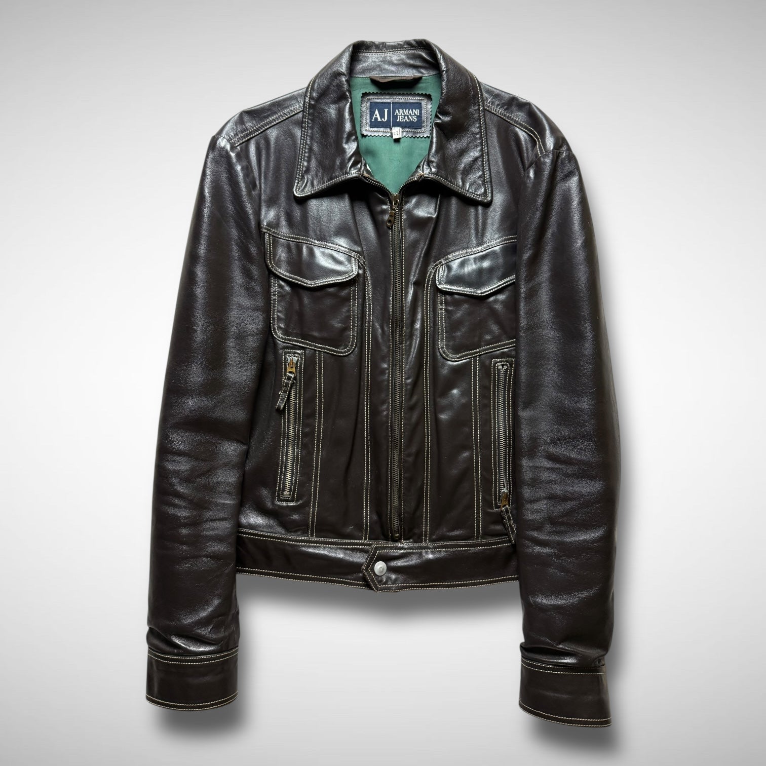 Armani Jeans Contrast Stitch Leather Jacket (2000s)