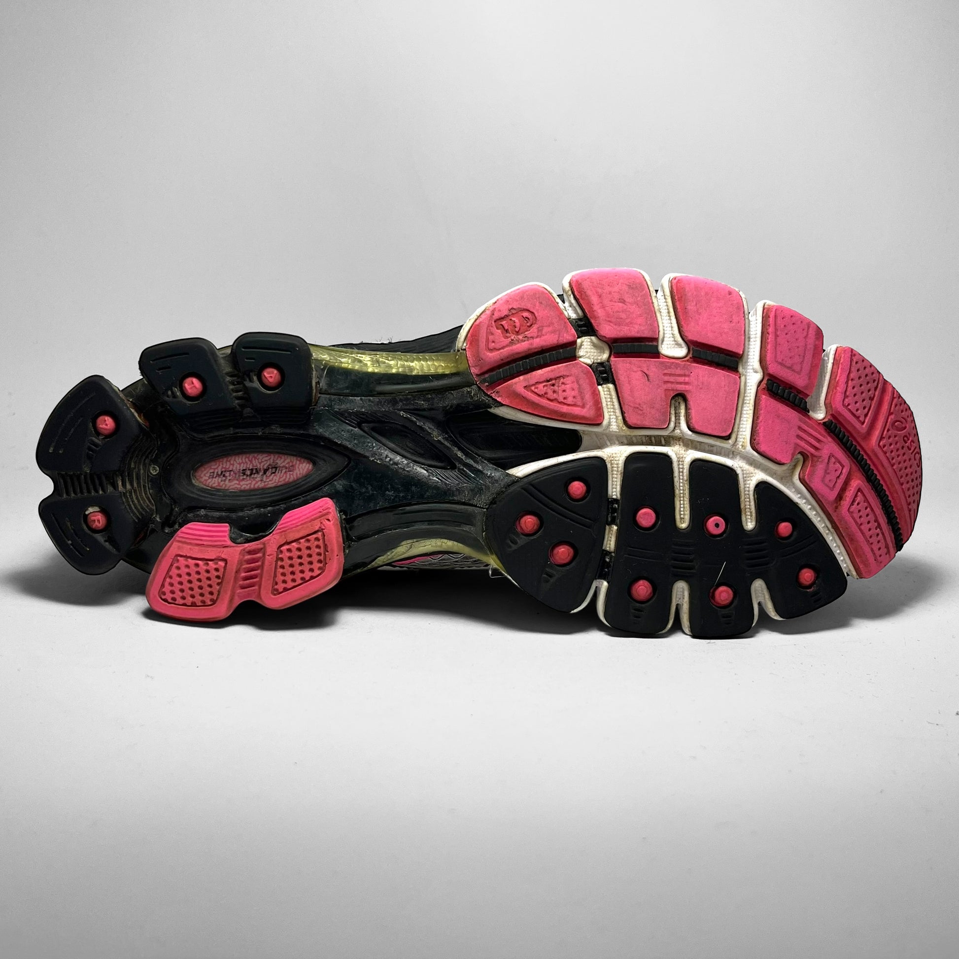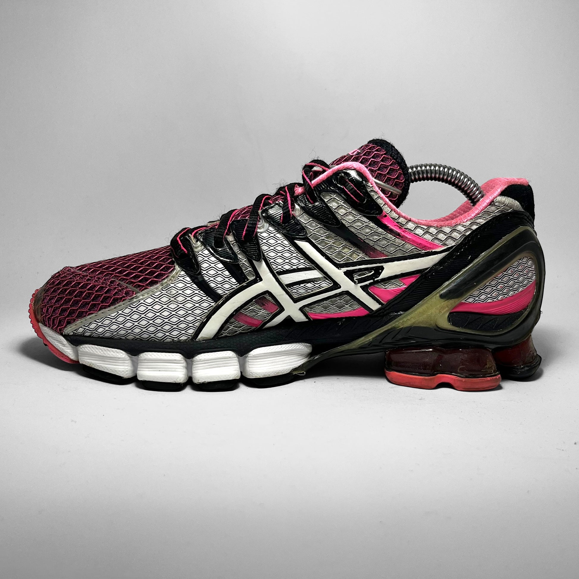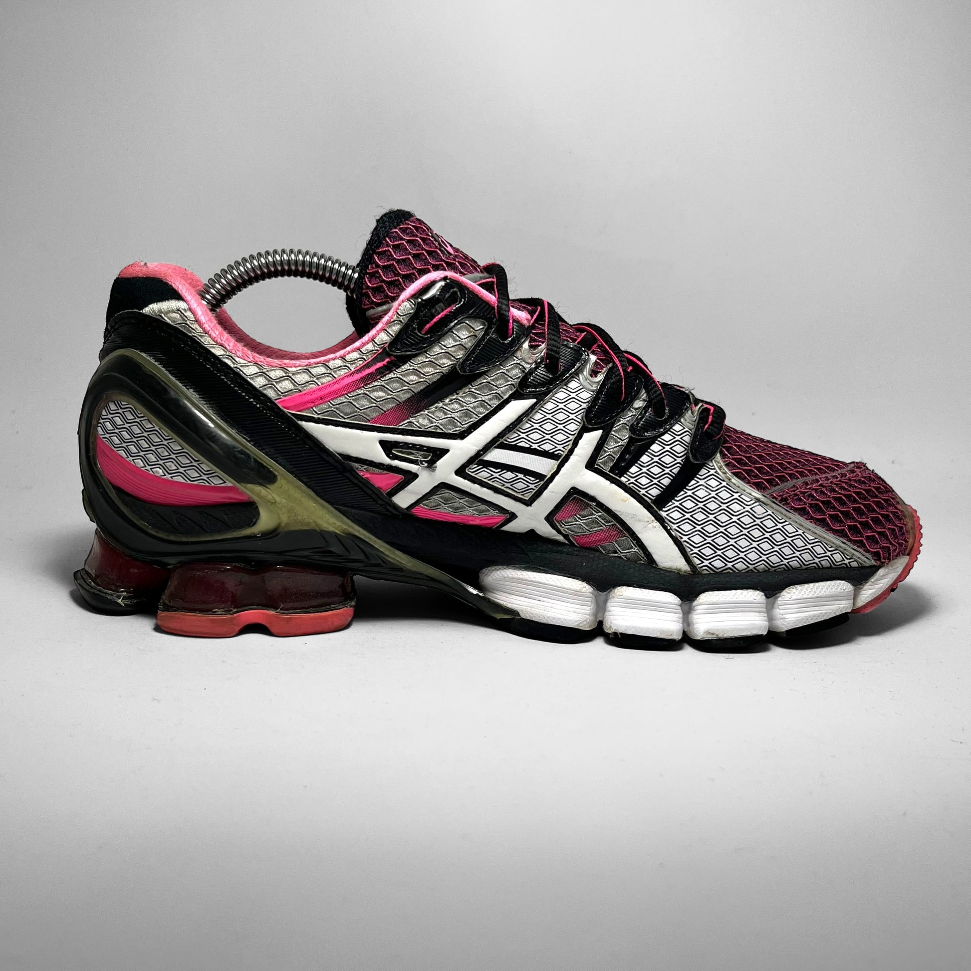 This pair features a breathable, diamond-patterned mesh upper with synthetic overlays giving support, improving structure and fit. Signature GEL technology at rear enhancing responsiveness and impact protection. A striking combination of white, black, silver and vibrant pink gives this pair a statement look, blending aggressive tech elements with bold colours.