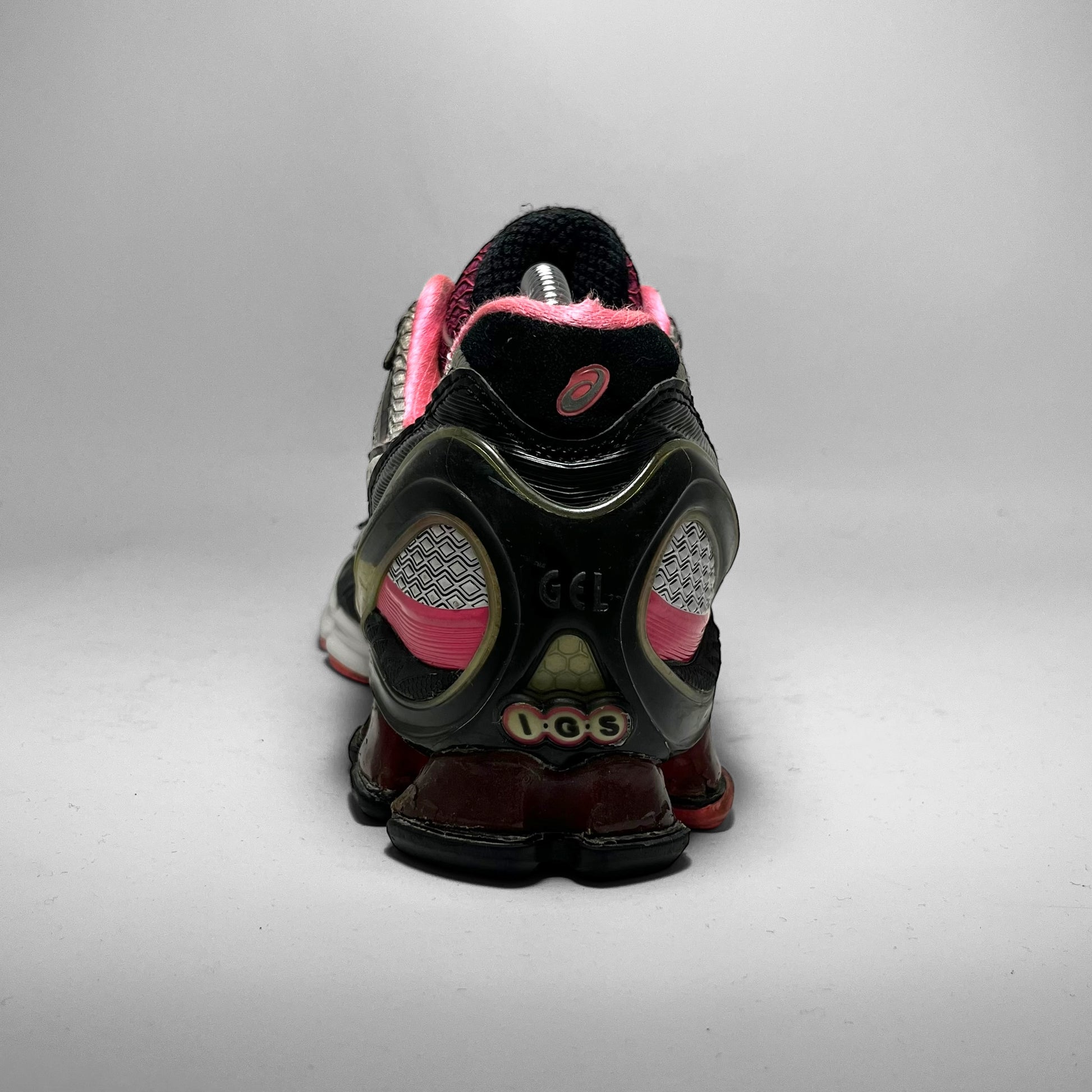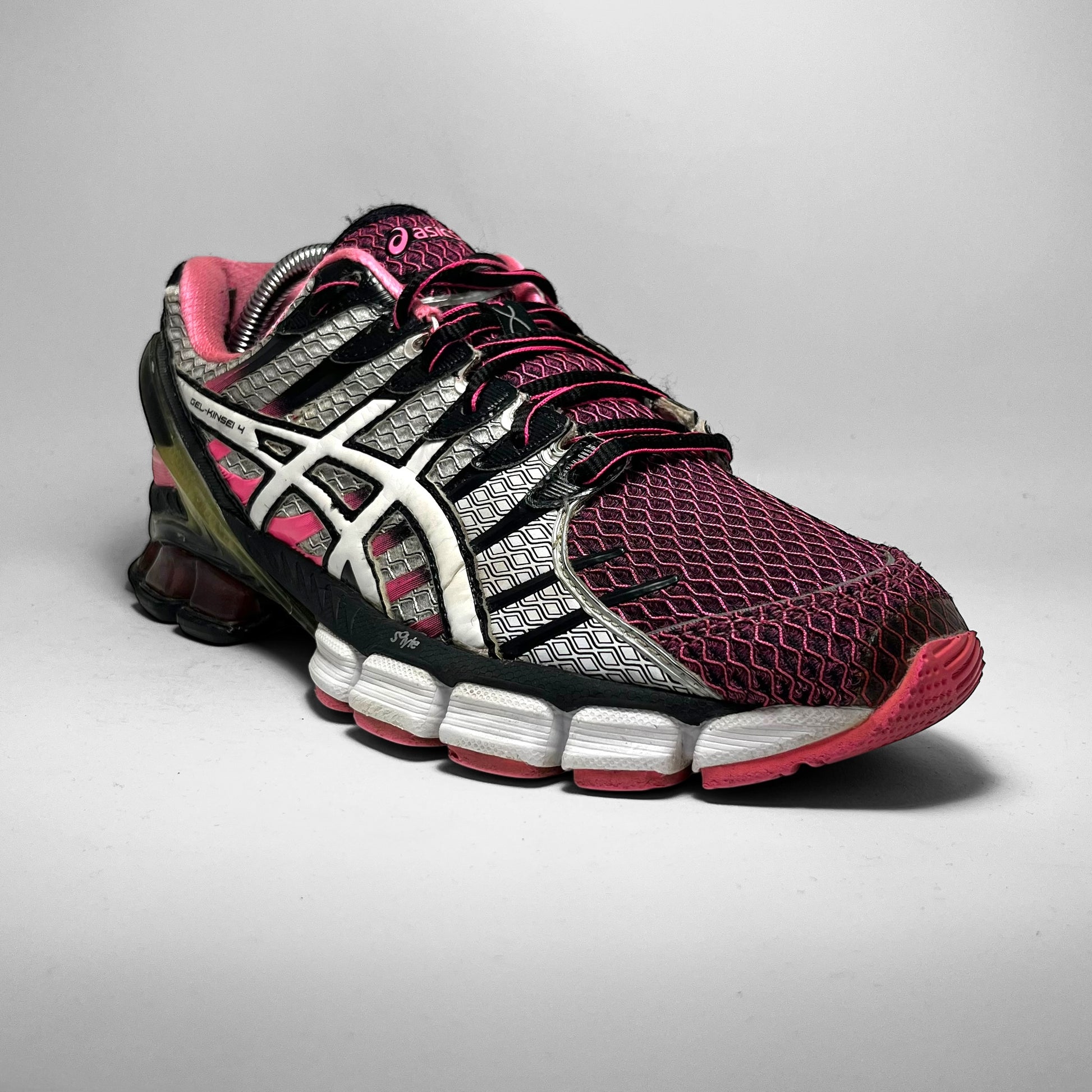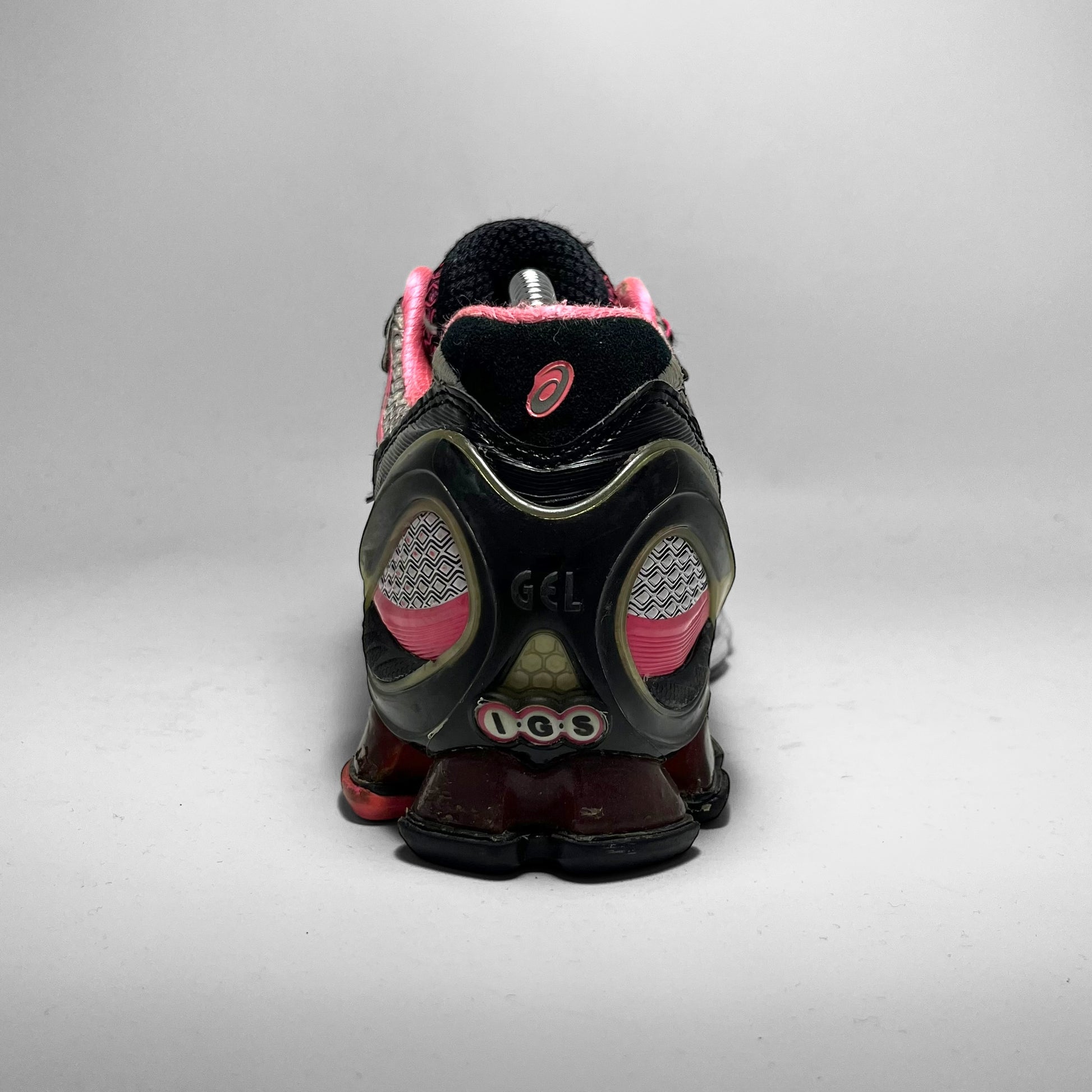This pair features a breathable, diamond-patterned mesh upper with synthetic overlays giving support, improving structure and fit. Signature GEL technology at rear enhancing responsiveness and impact protection. A striking combination of white, black, silver and vibrant pink gives this pair a statement look, blending aggressive tech elements with bold colours.