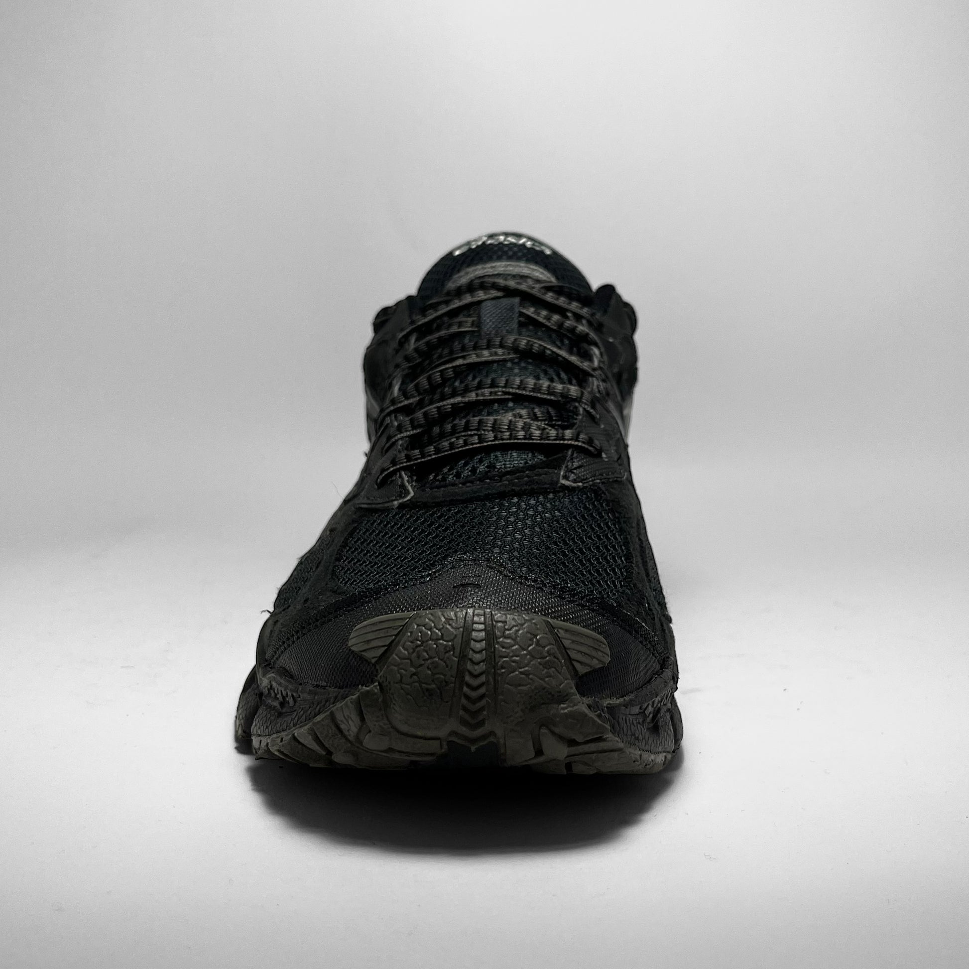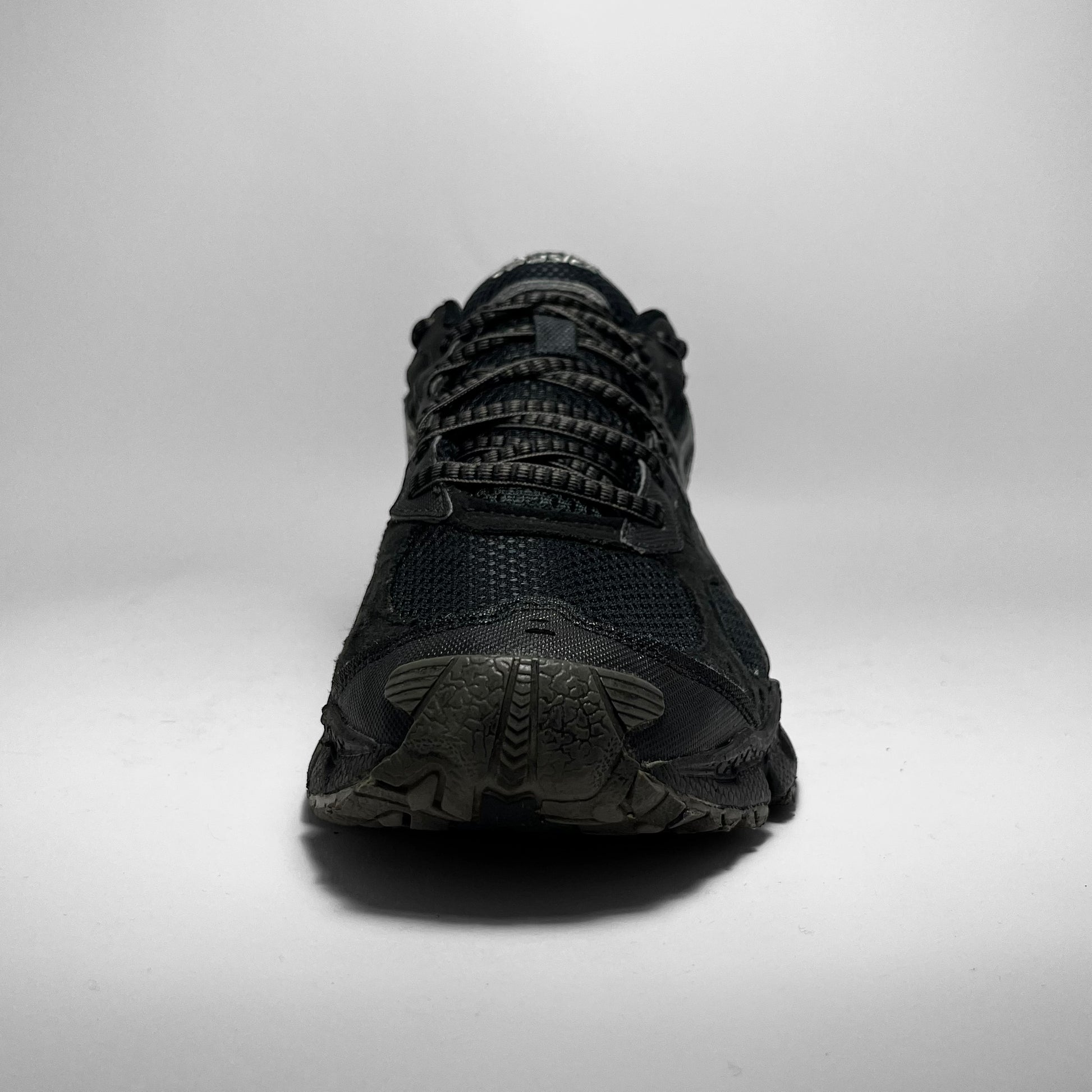 Black on black mesh upper with leather panels and silver details such a branded lining, script, partly reflective heel panel and embroidered script on tongue.