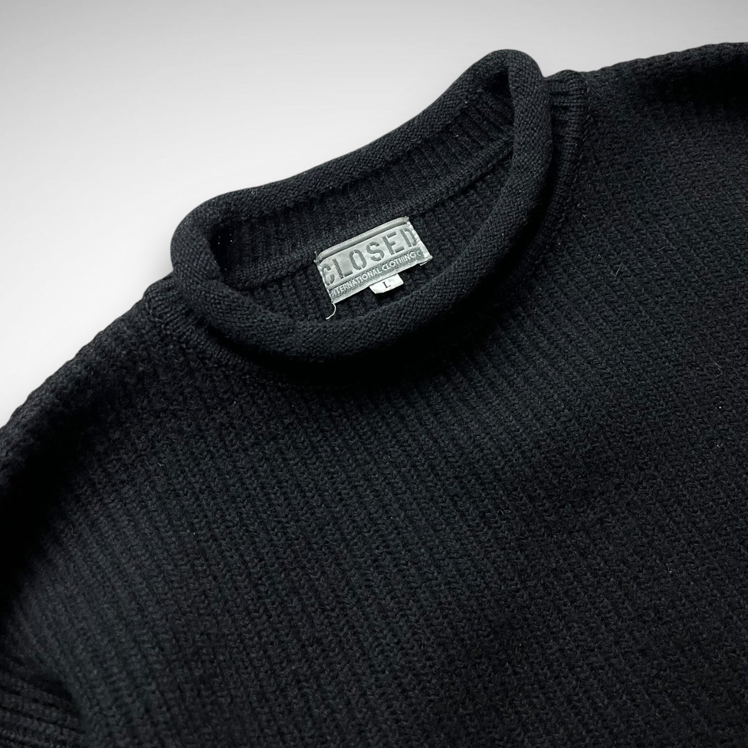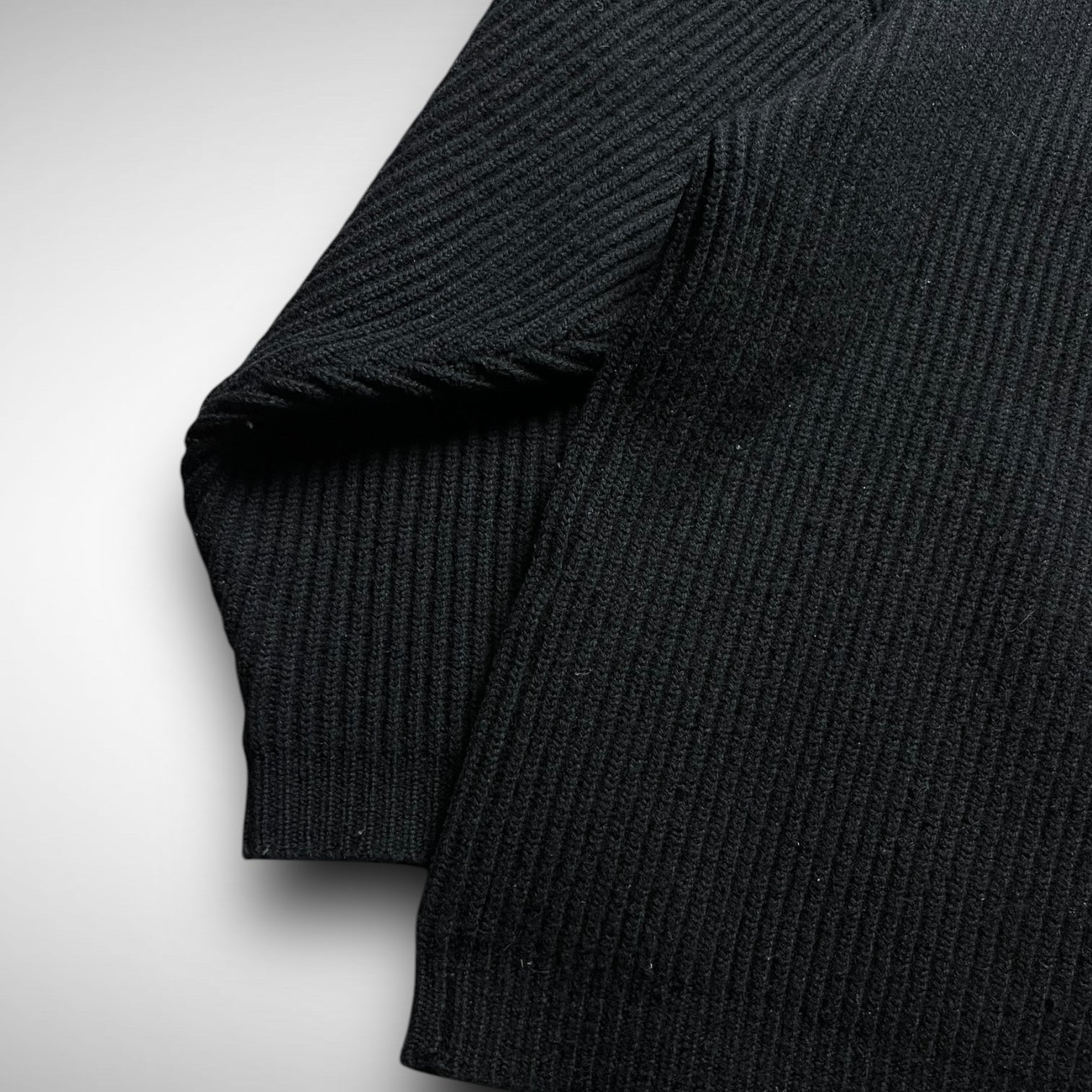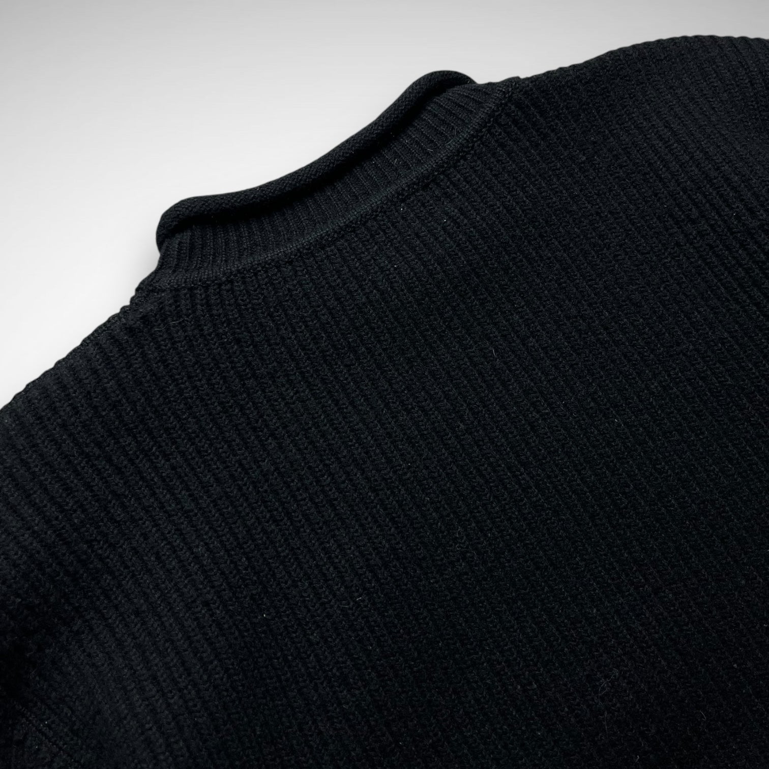 Black knit with ribbed finish, rollneck collar, articulated cuffs, hem and collar. Perfect boxy fit.