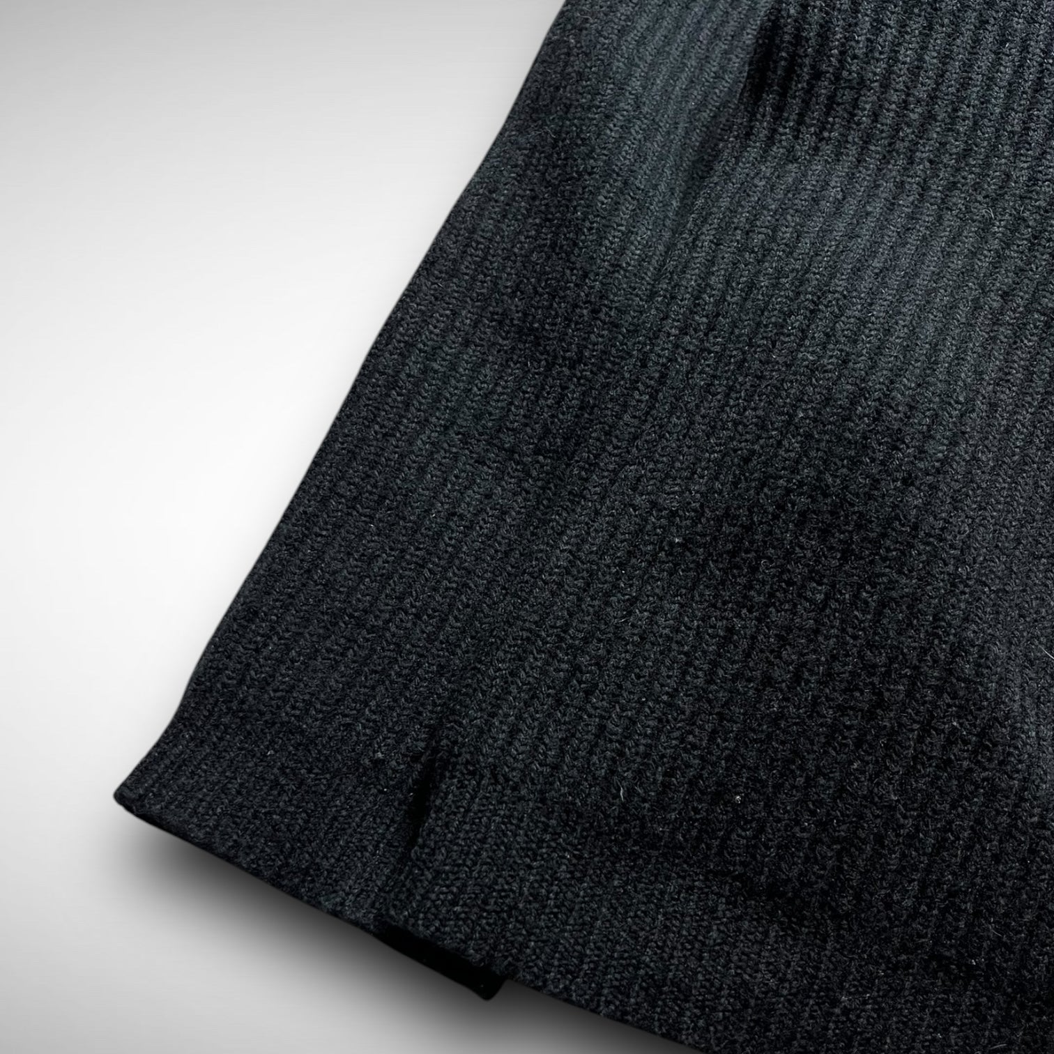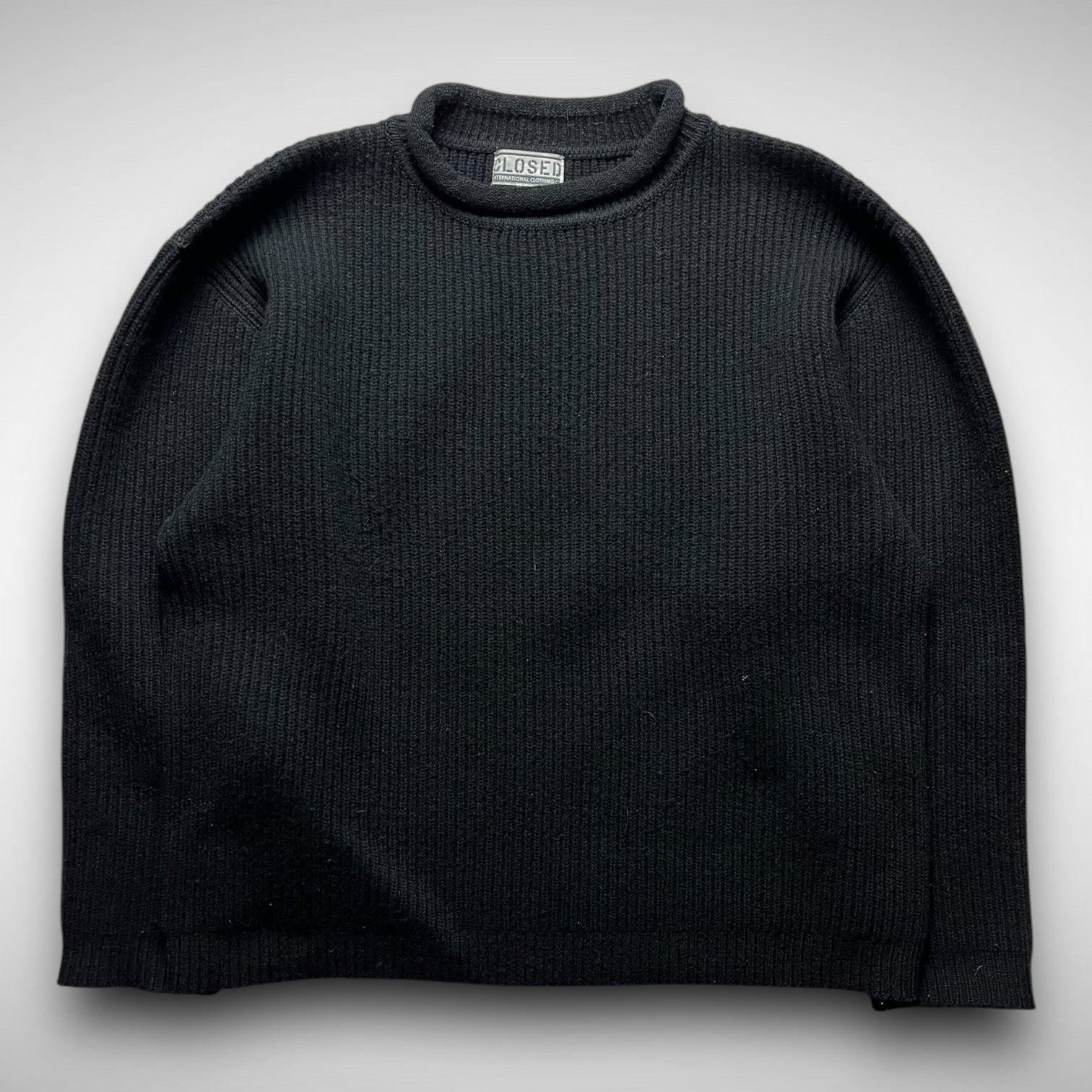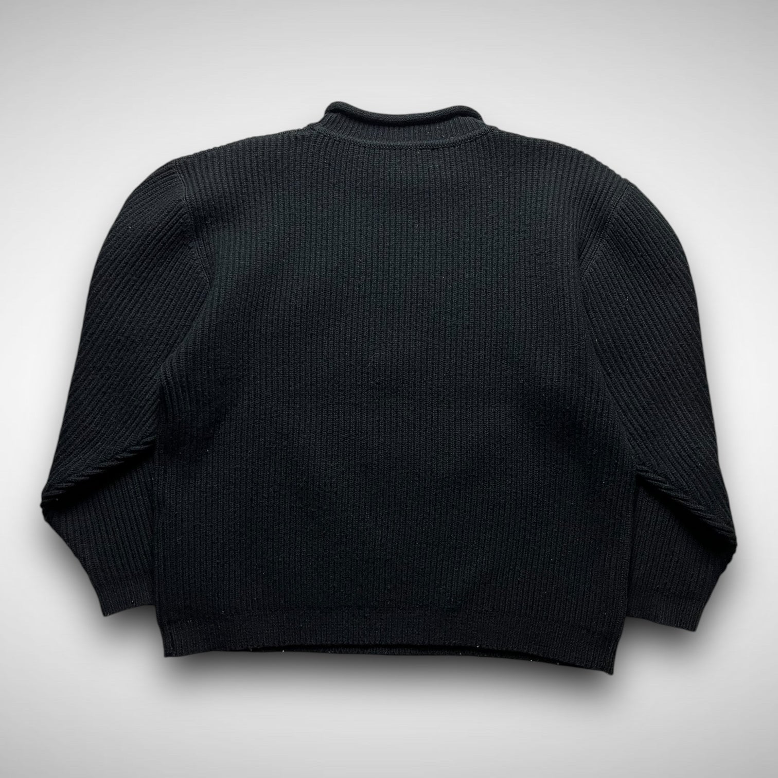 Black knit with ribbed finish, rollneck collar, articulated cuffs, hem and collar. Perfect boxy fit.