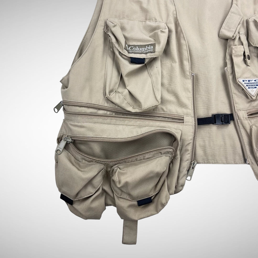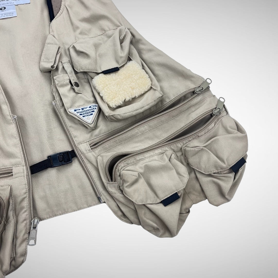 From the Performance Fishing Gear (PFG) line, this vest is packed with 18-pockets in total, a multitude with various closures on the front including zip, flap and velcro compartments and a big zip-compartment on the back, inside has a few stow-away pockets, soft collar for comfortability even when wet, zip closure or with a clip for a wider and more comfy fit.