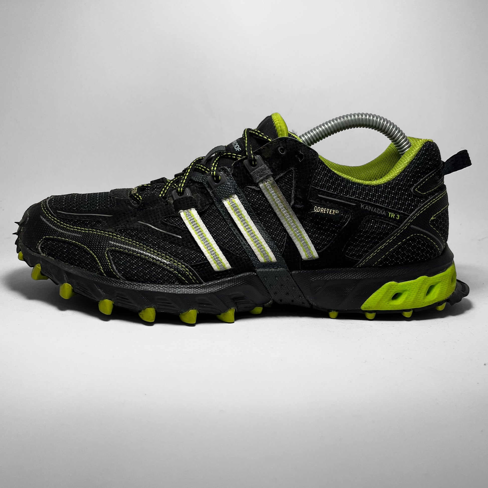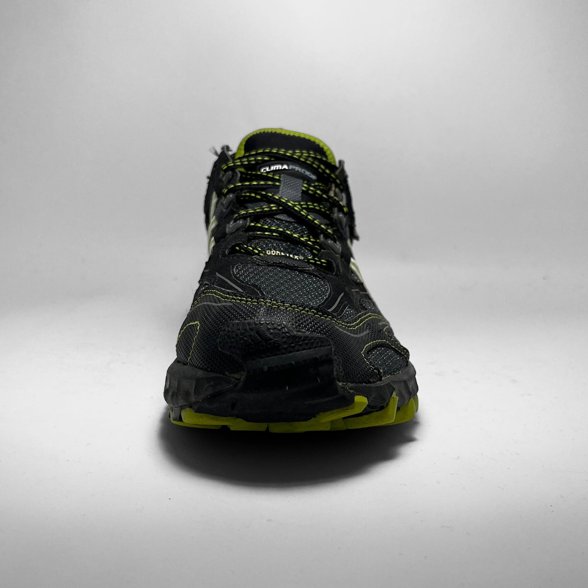 Layered mesh base packed with GTX, bright green stitching, outsole, rear mid-sole and branding on detailed leather and rubber panels throughout, comfy neoprene sock-liner and detailed rubber panels.