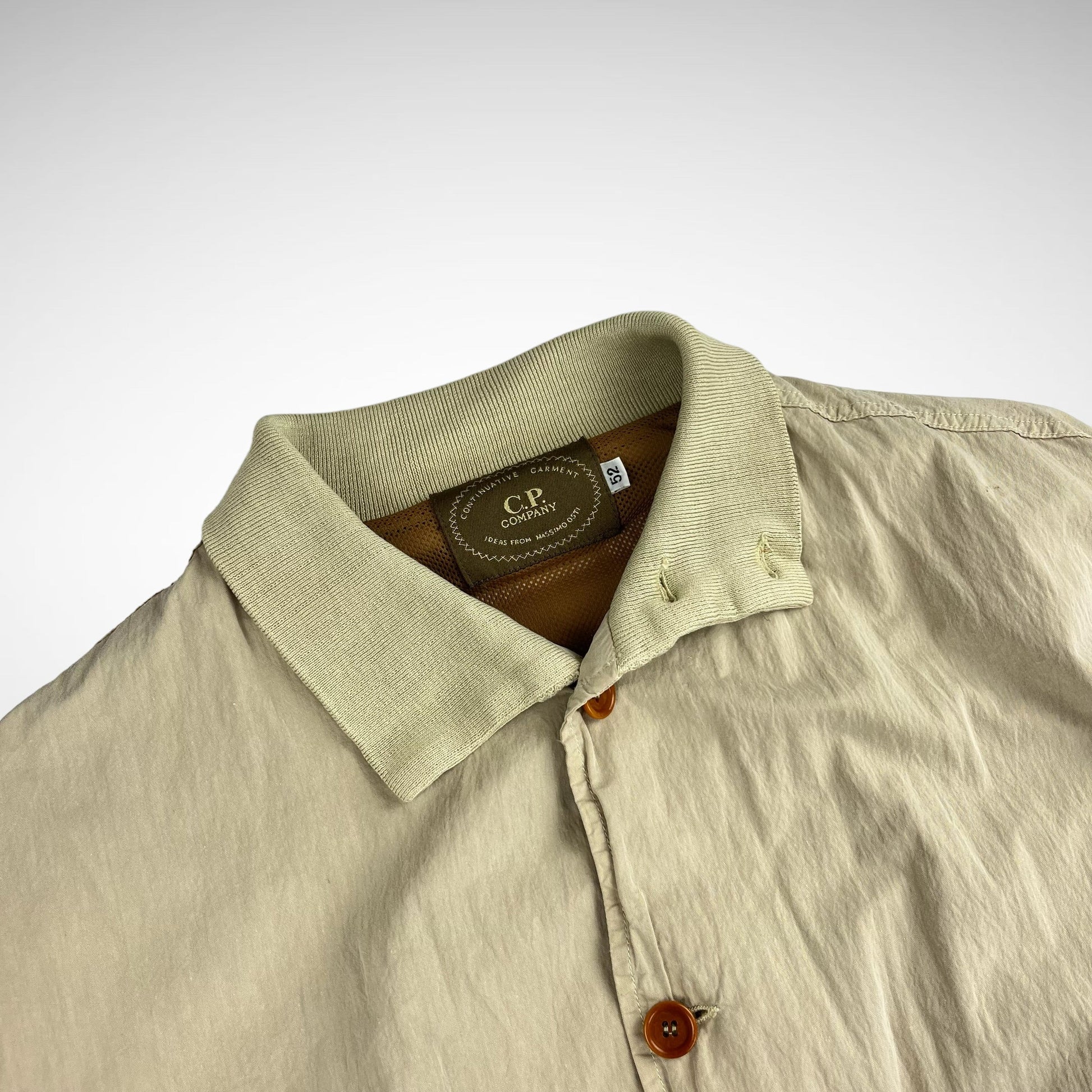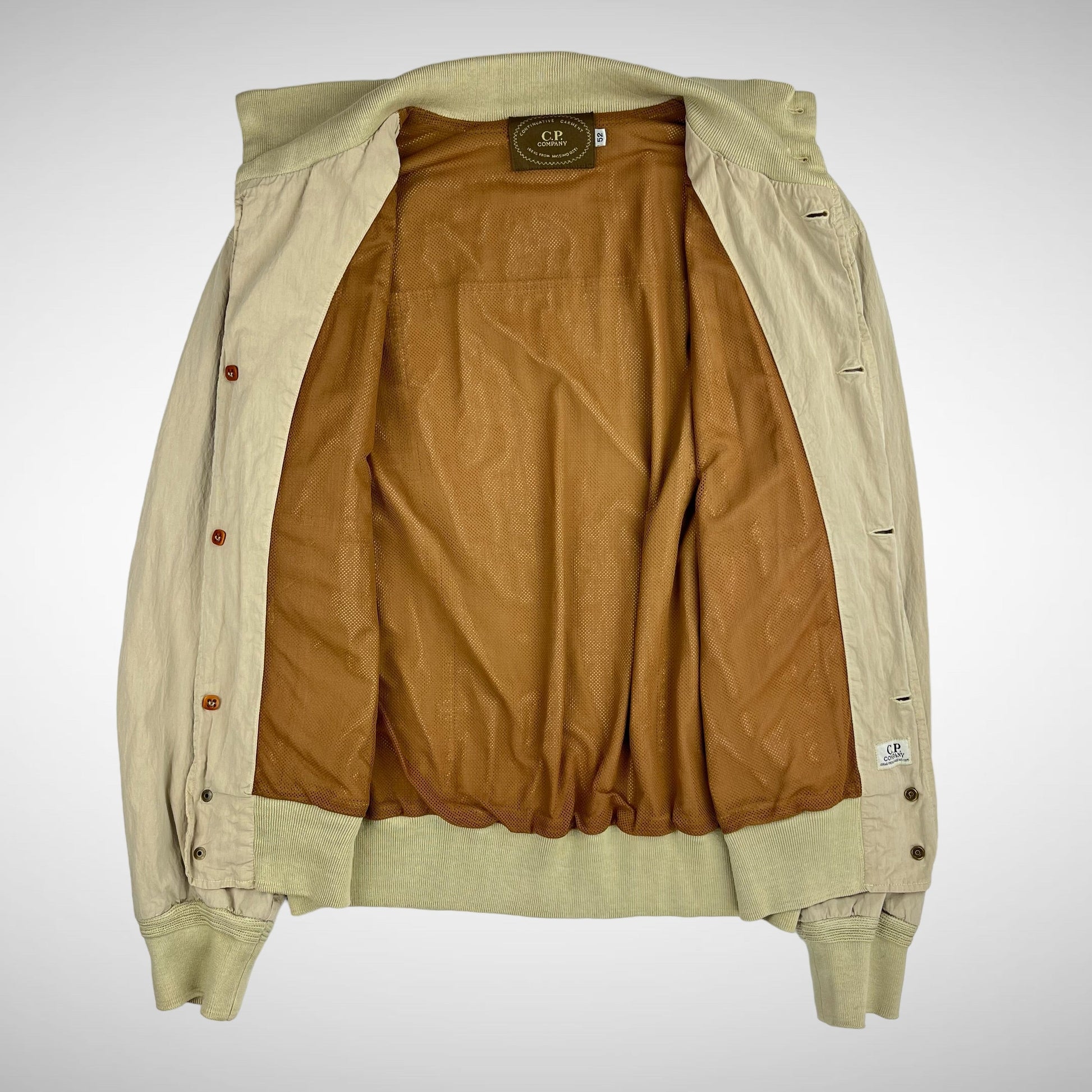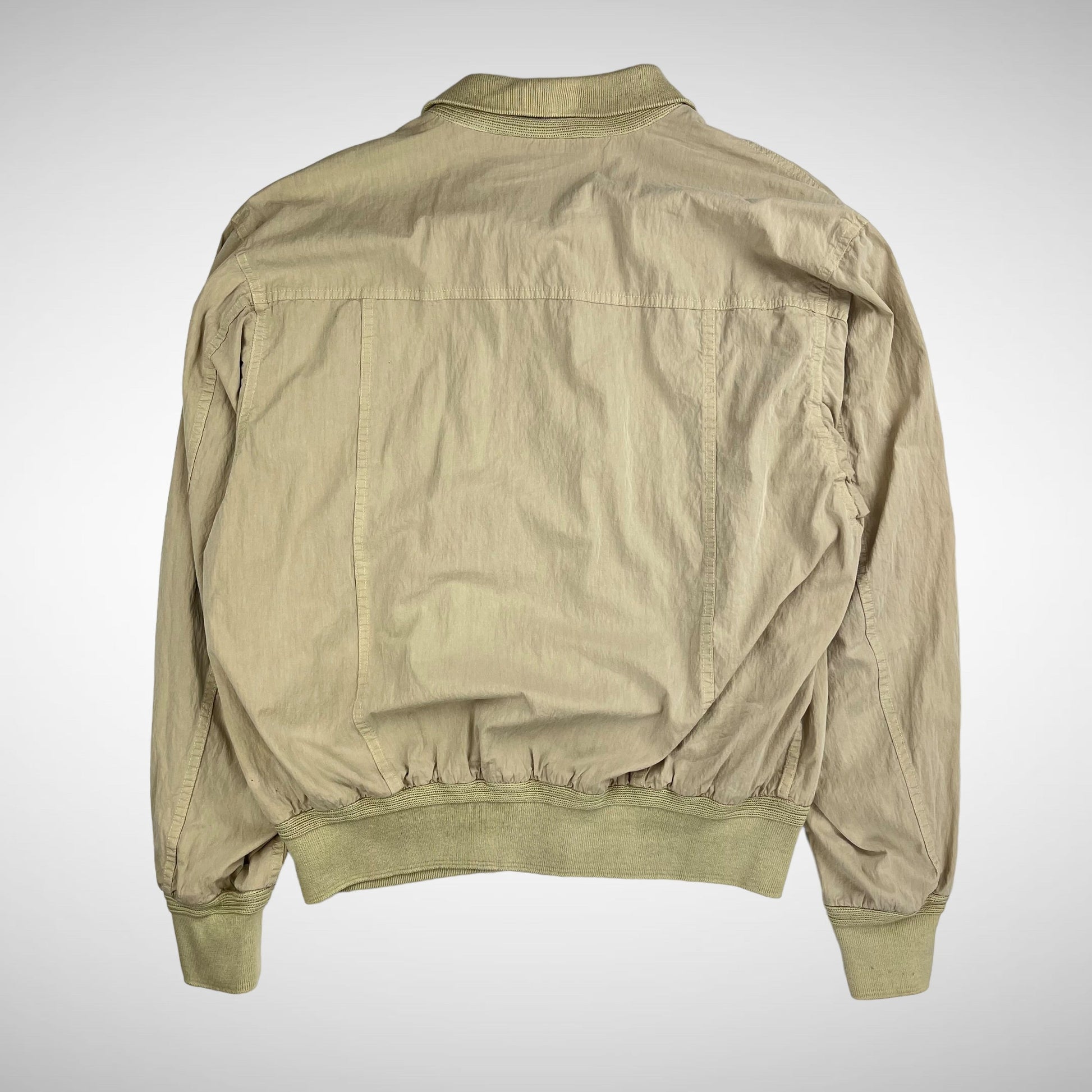 The only jacket that has ever returned following numerous years throughout the late 80s up til the 2000. This jacket is from the Continuative Garments series and features a lightweight sand coloured nylon outer with a copper mesh lining, button-up closure and additional branded press-stud buttons at hem, and detailed knit collar as well as cuffs.