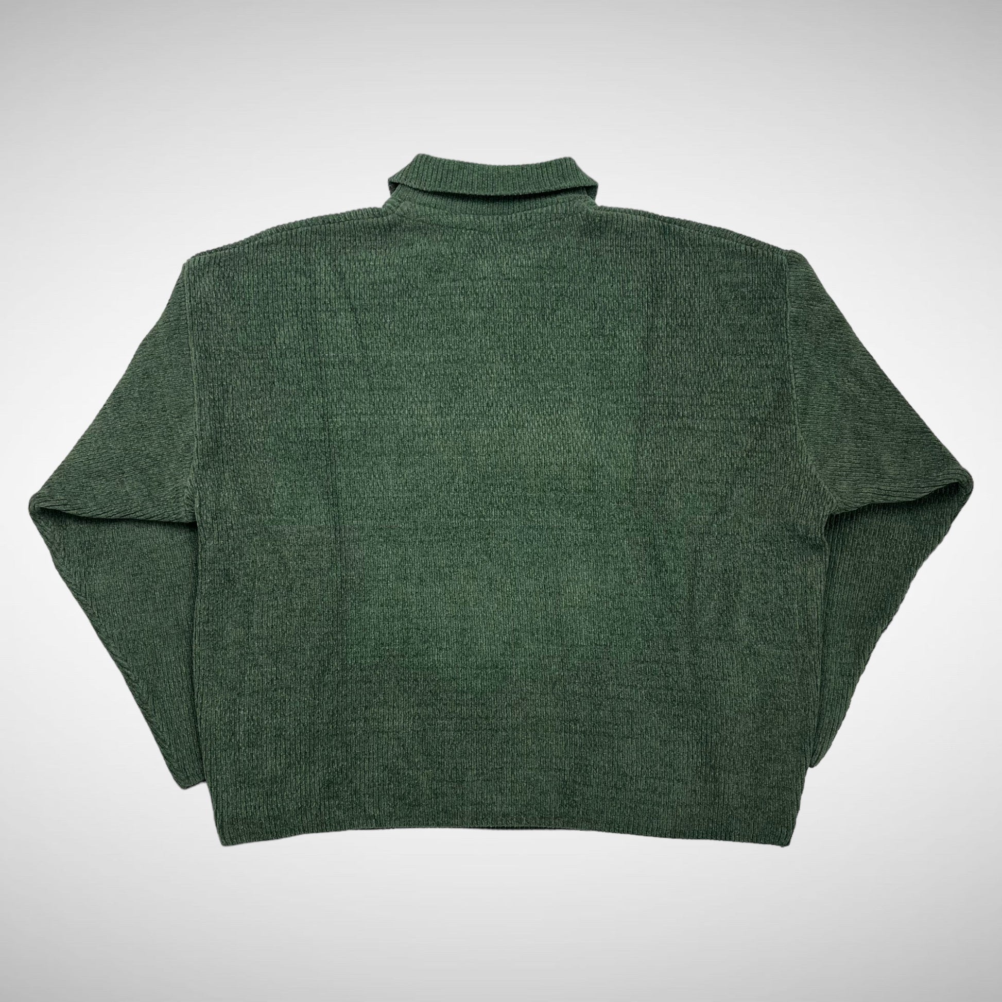 Made in Austria at Falke factory in the 90s, beautiful green colour with stunning knit pattern, metal pull-zip and flat collar.