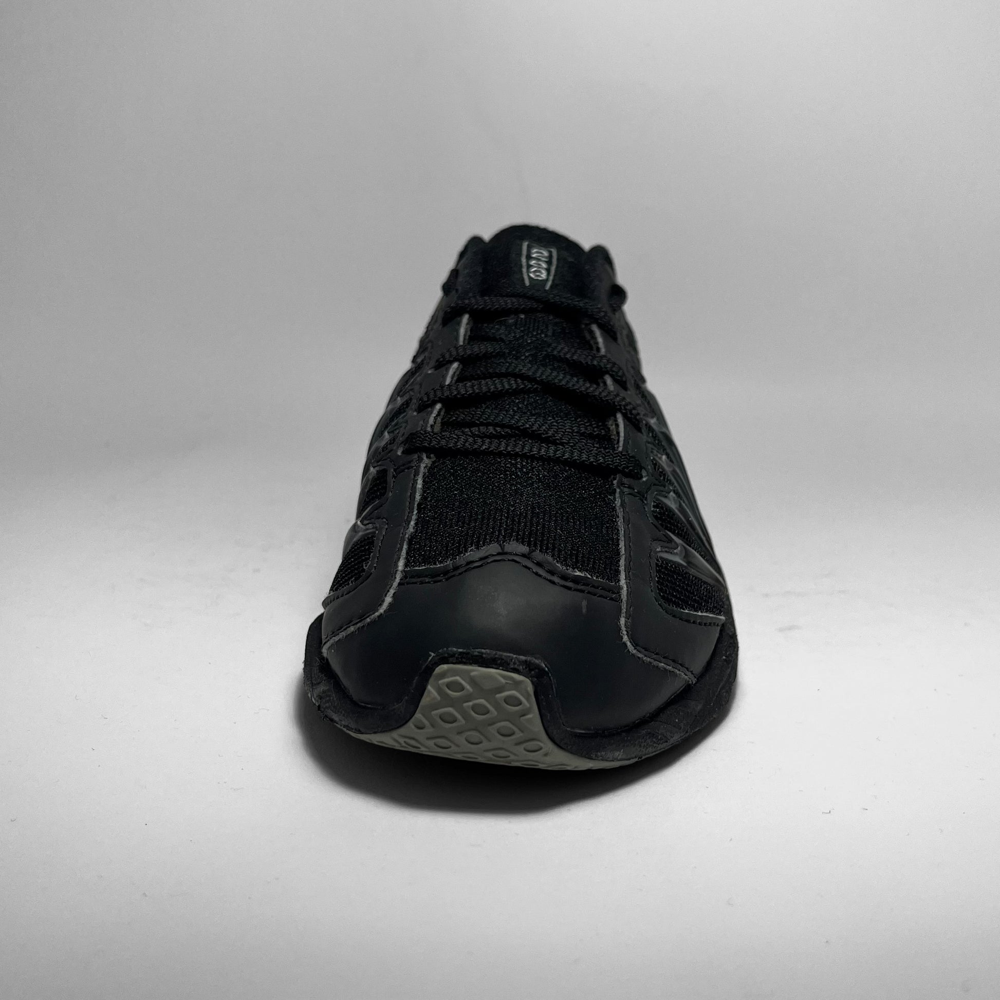 Mesh base with rubber veins along the sides, matte leather panels throughout with silver detailed panels underlay and branding, and embroidered script.