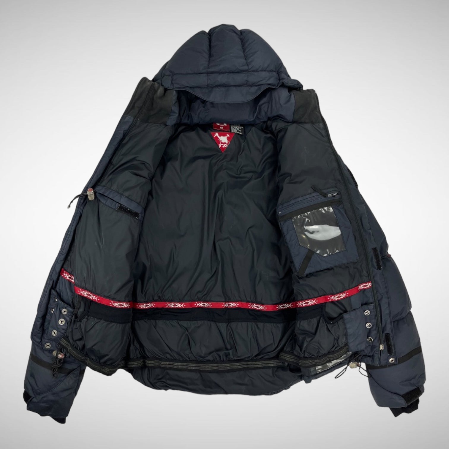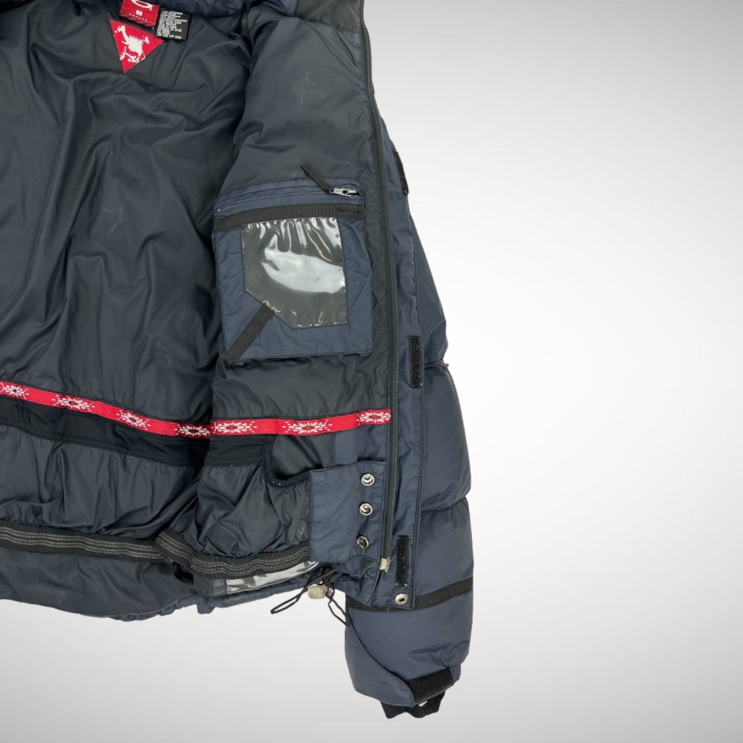 Great condition early 2000s jacket, lovely detailing. Outside arm pocket on both sleeves plus adjustable cuffs and detachable hood. 90% Goose Down filling.