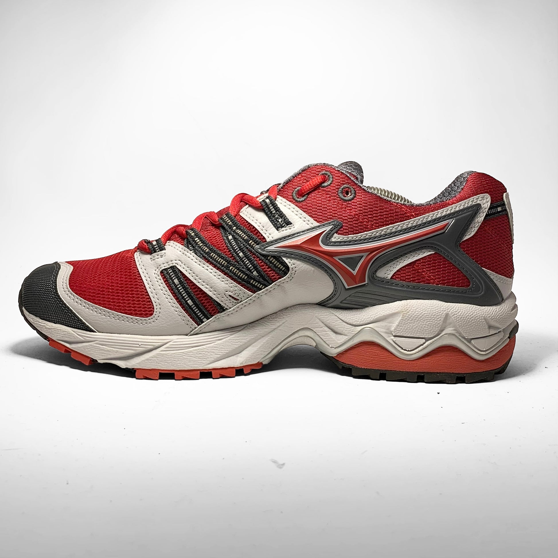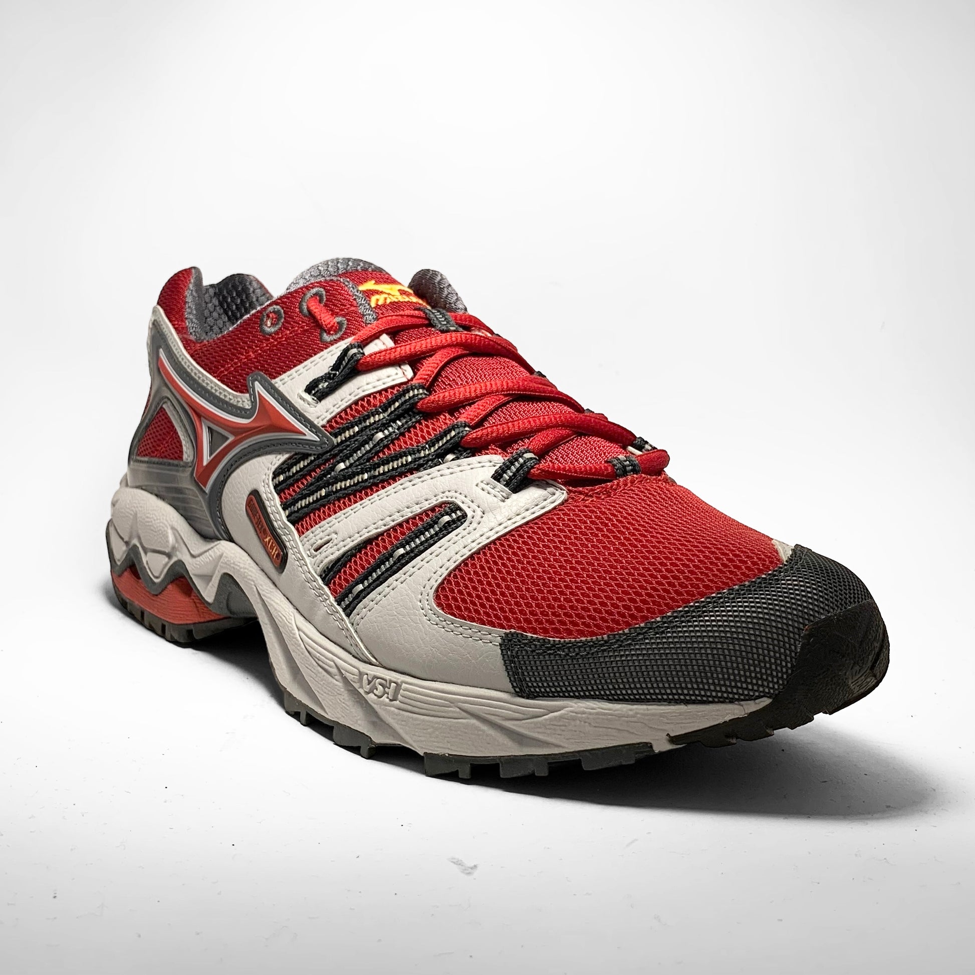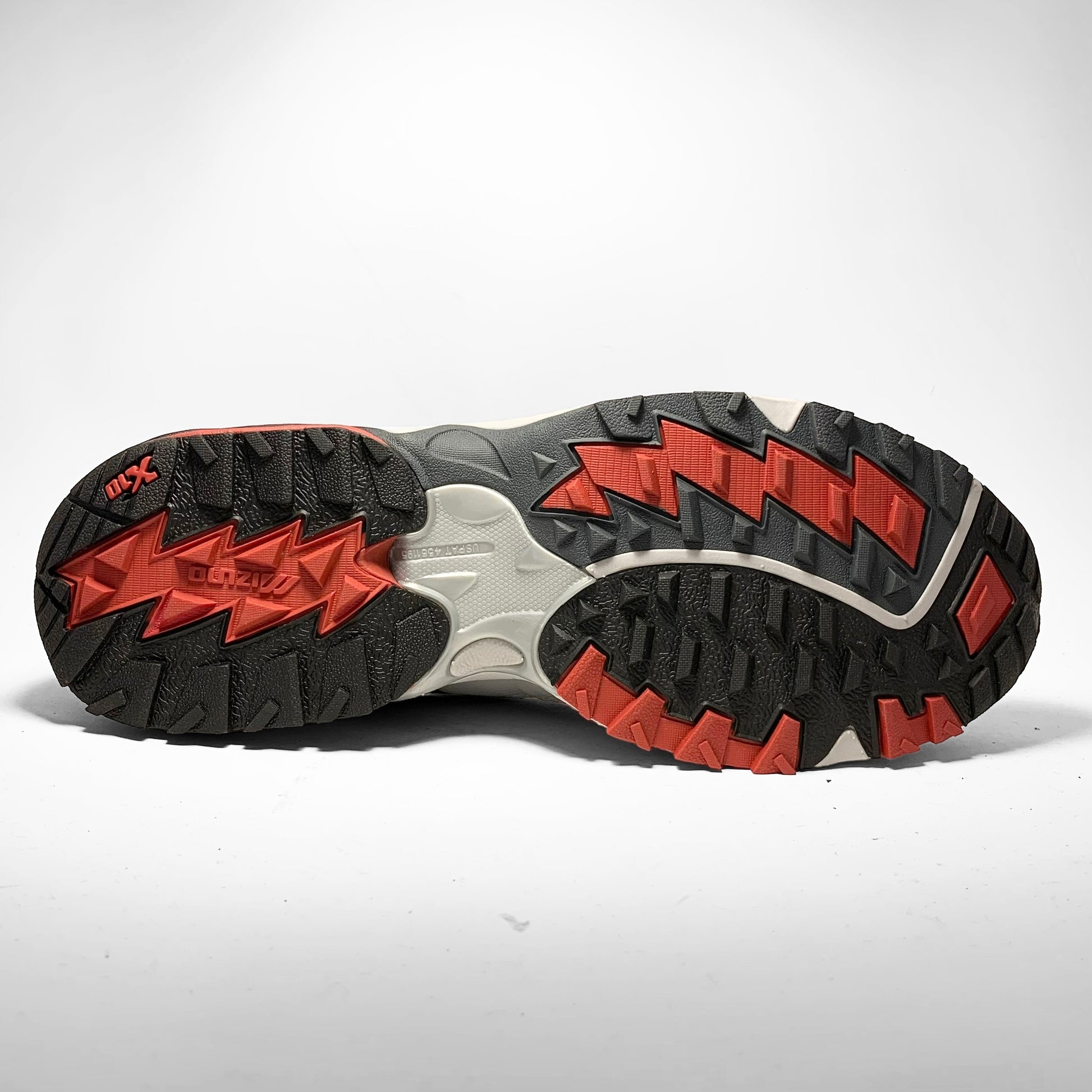 The red mesh and metallic logo make this pair pop and perfectly combines the grey leather panels, comfortable fleece lining, midsole, mudguard and cotton straps on the sides. Packed with Gore-Tex/XCR.
