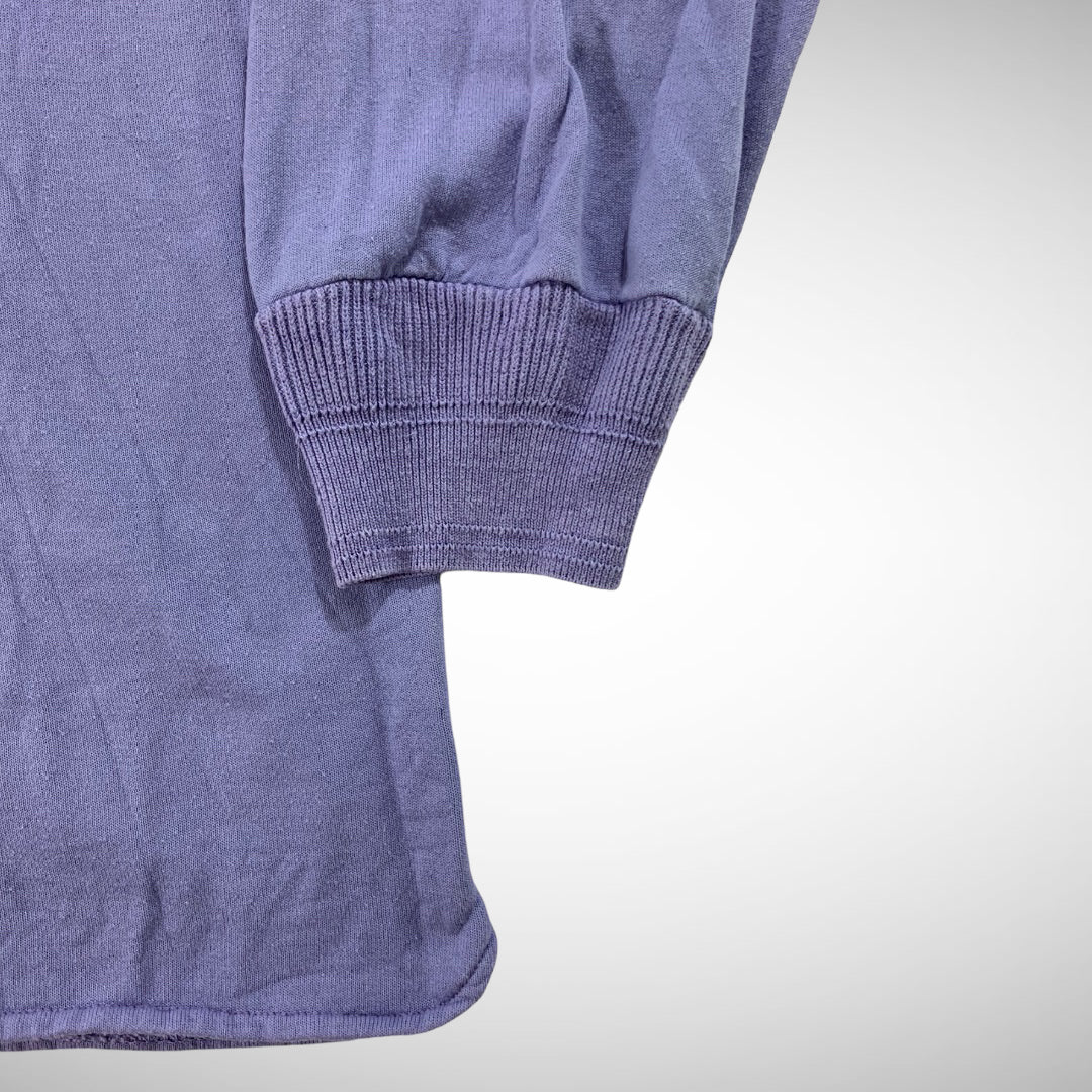 Condition is great. Peached cotton in lilac with 1/4 button-up closure and elasticated cuffs.
