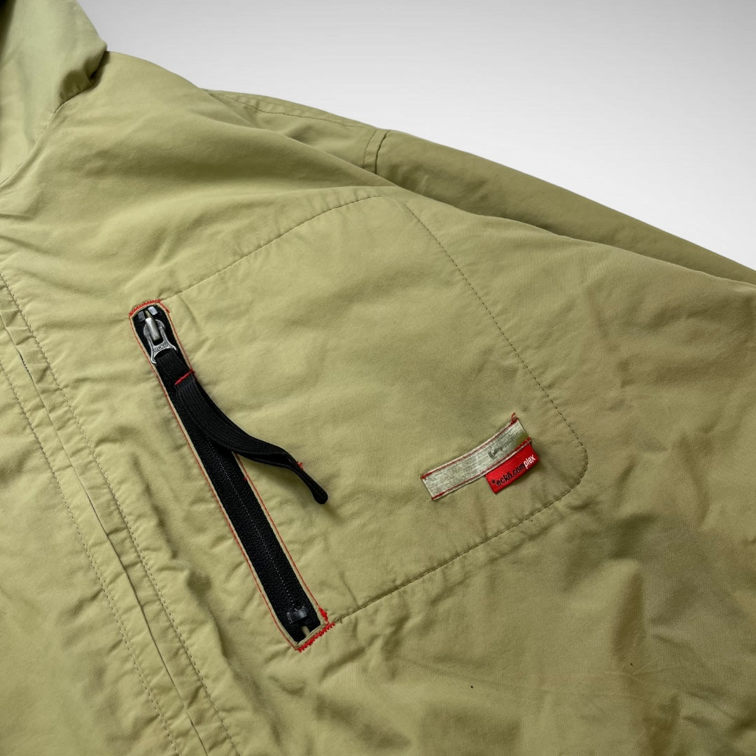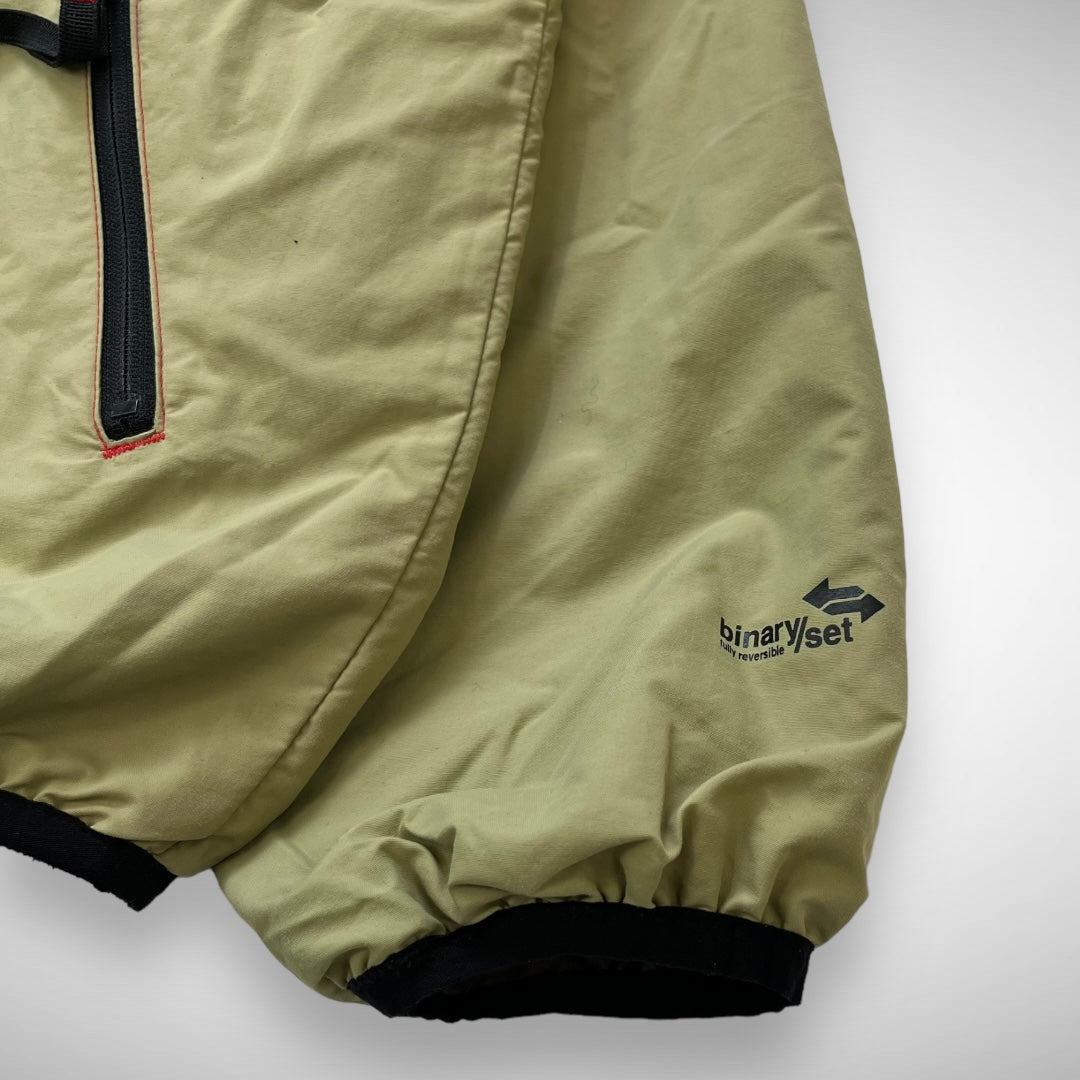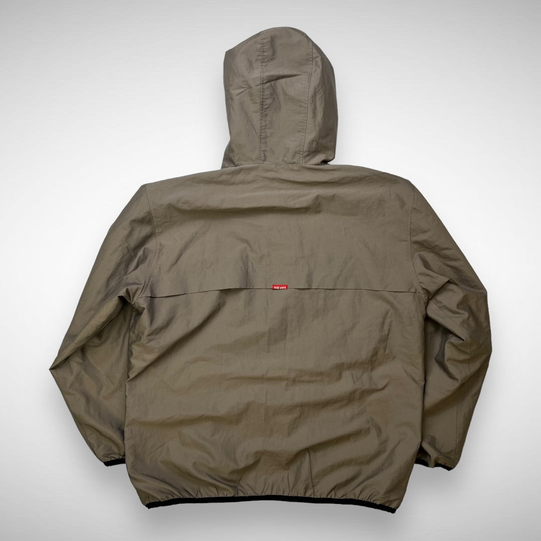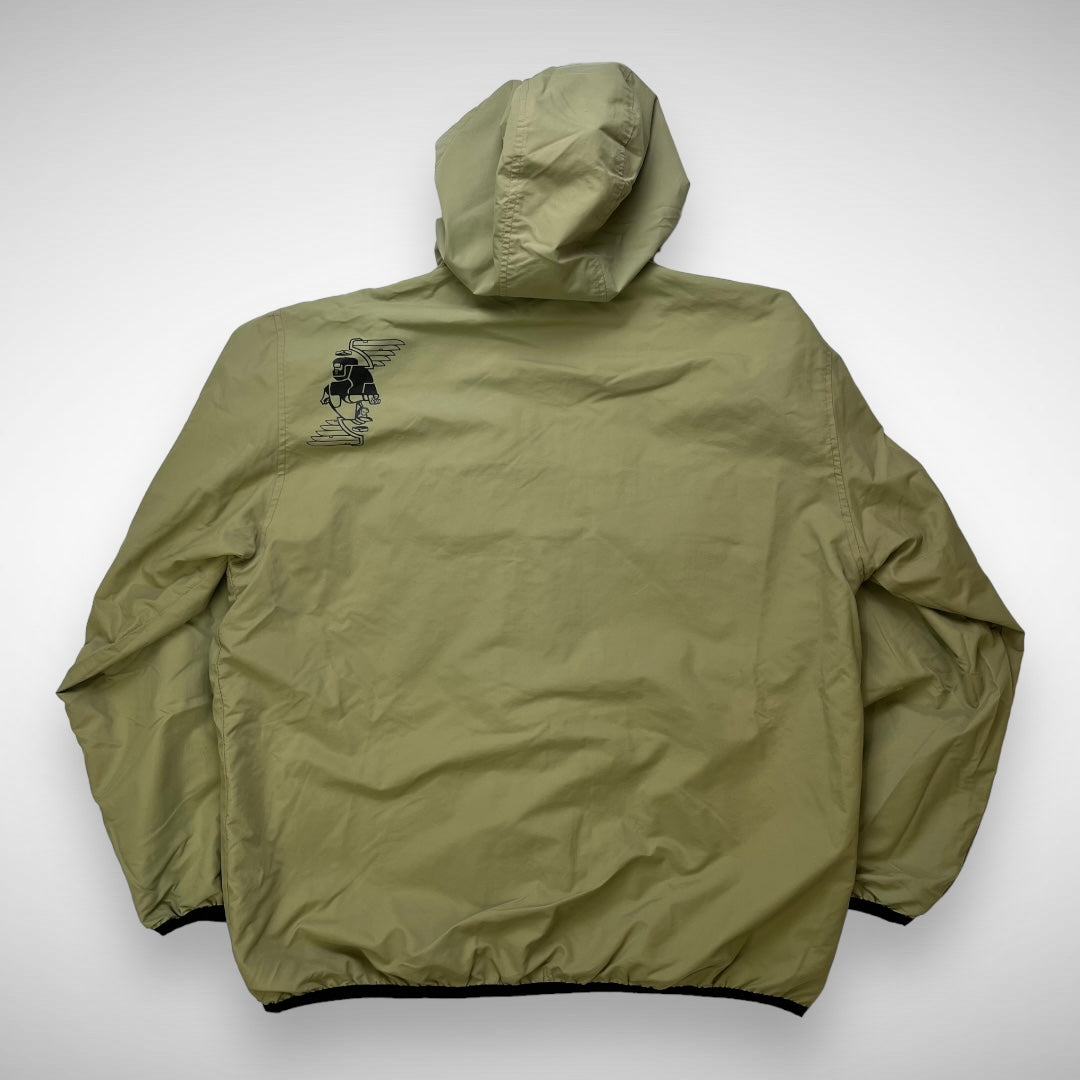Superb jacket from the golden era of Ecko’s Complex Series featuring a reversible function in light green and brown with several details in red and white such as main zip closure, pull cords to adjust hood, flaps to uncover chest pockets with unique rubber closing-system, and triple zip pocketing on green side.