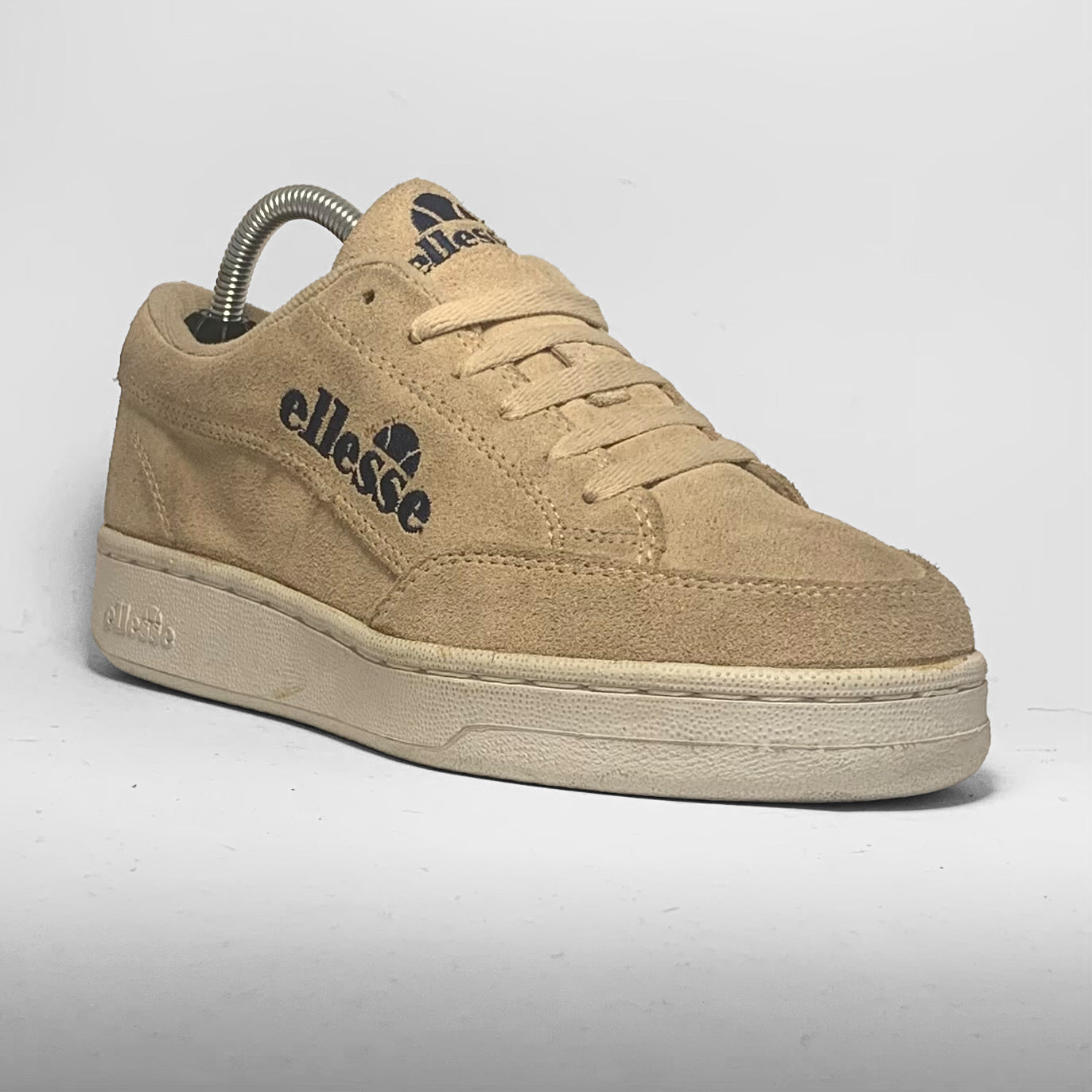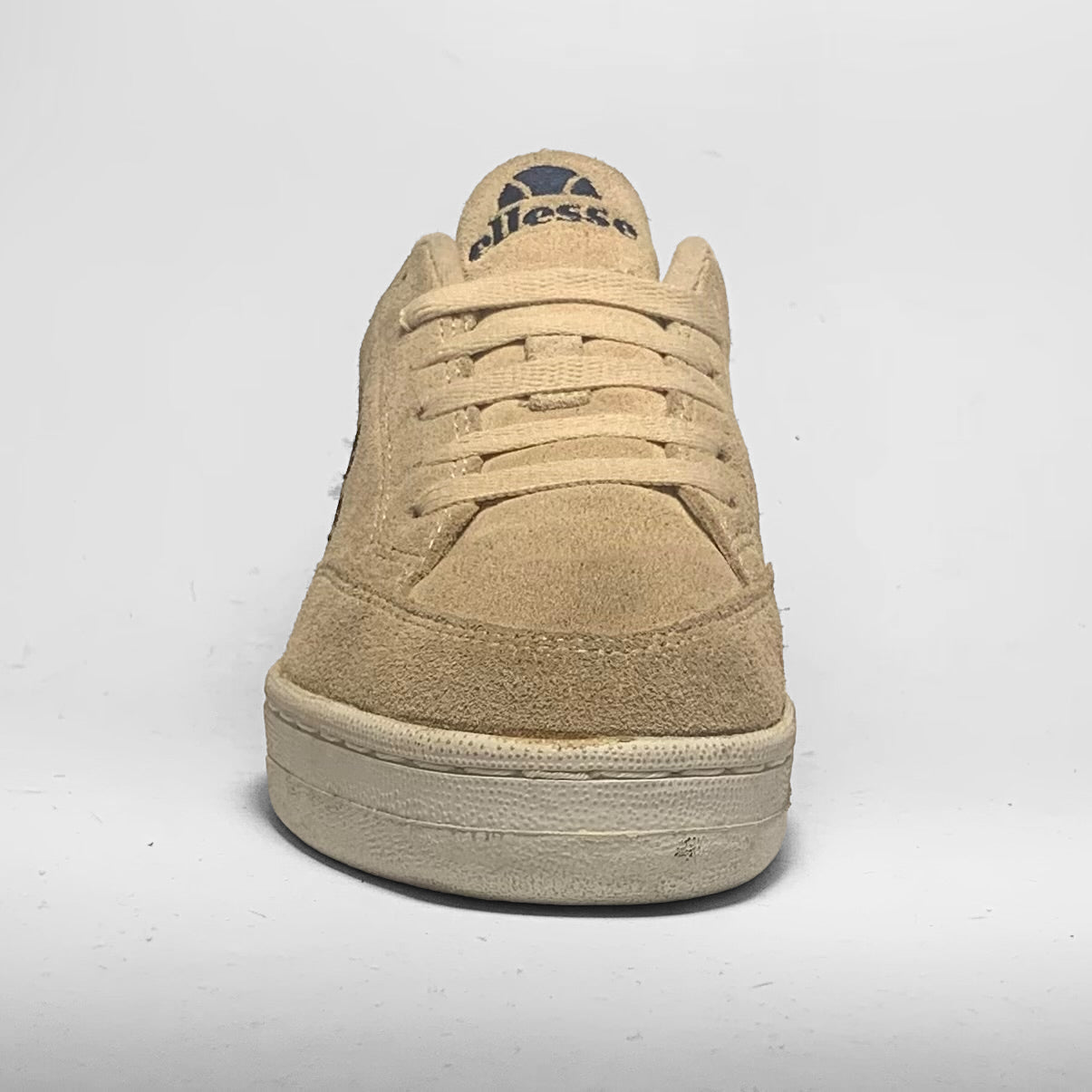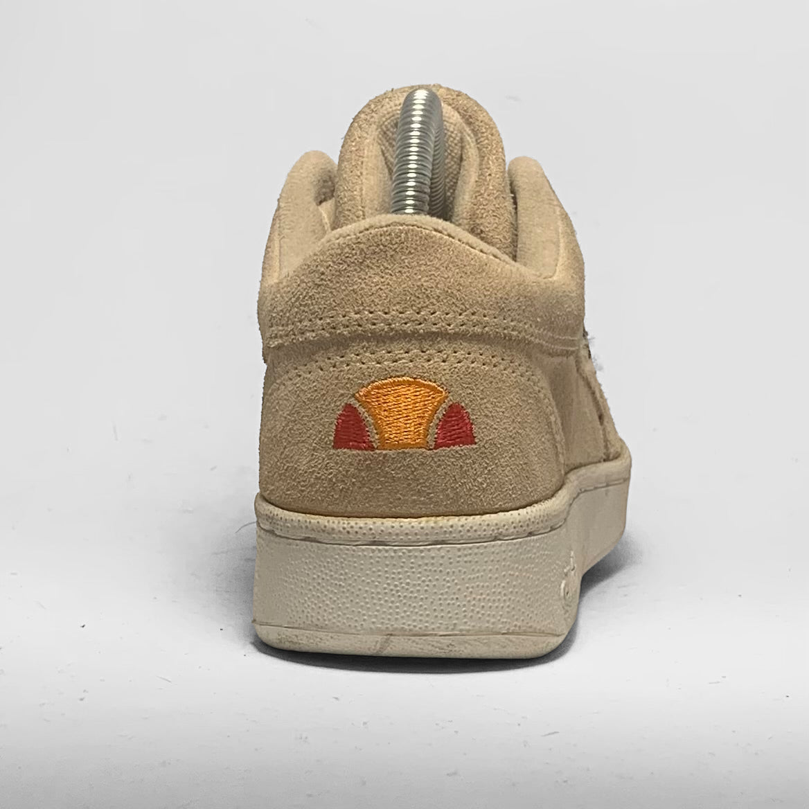 Suede upper in ecru cw with embroidered branding on side, tongue and heel.