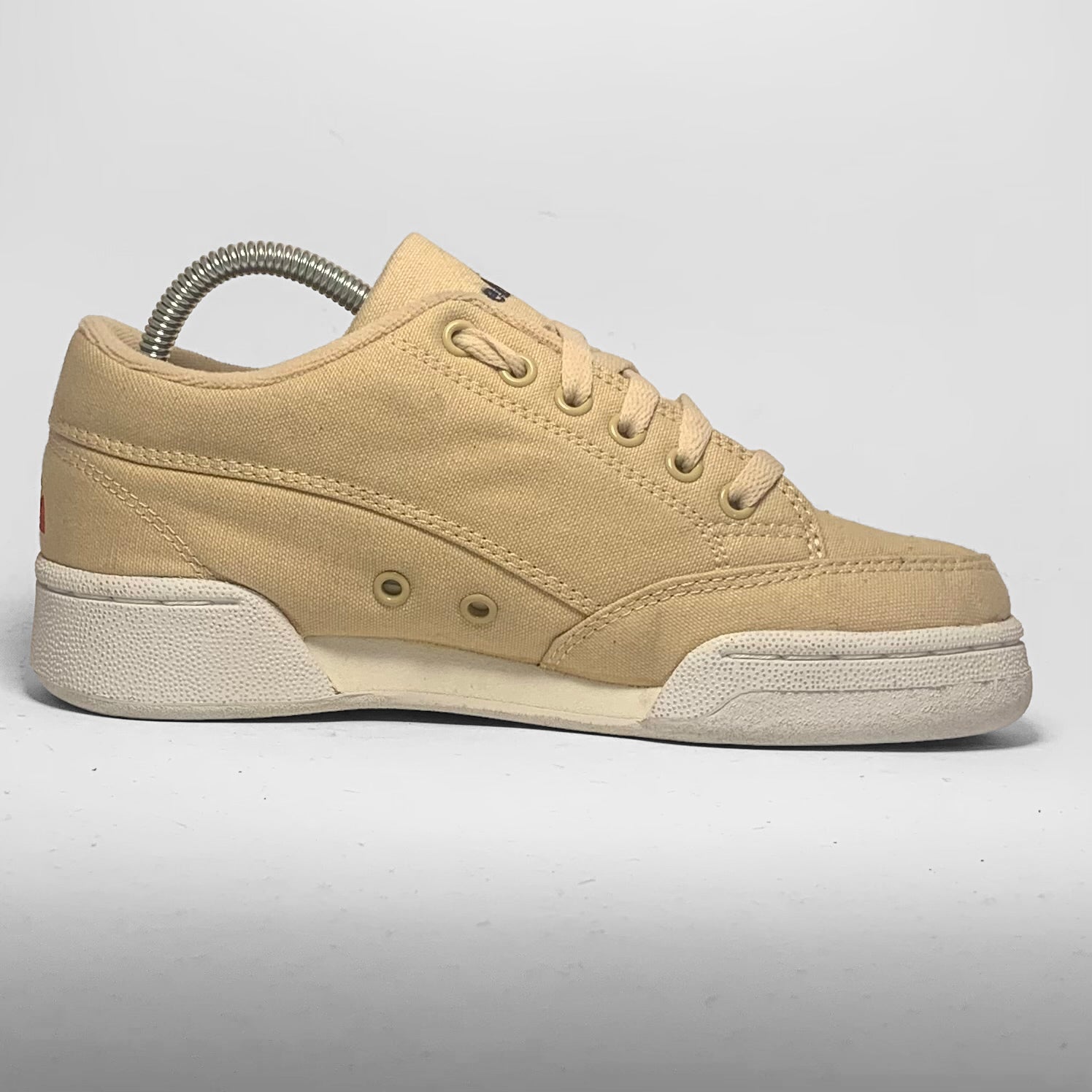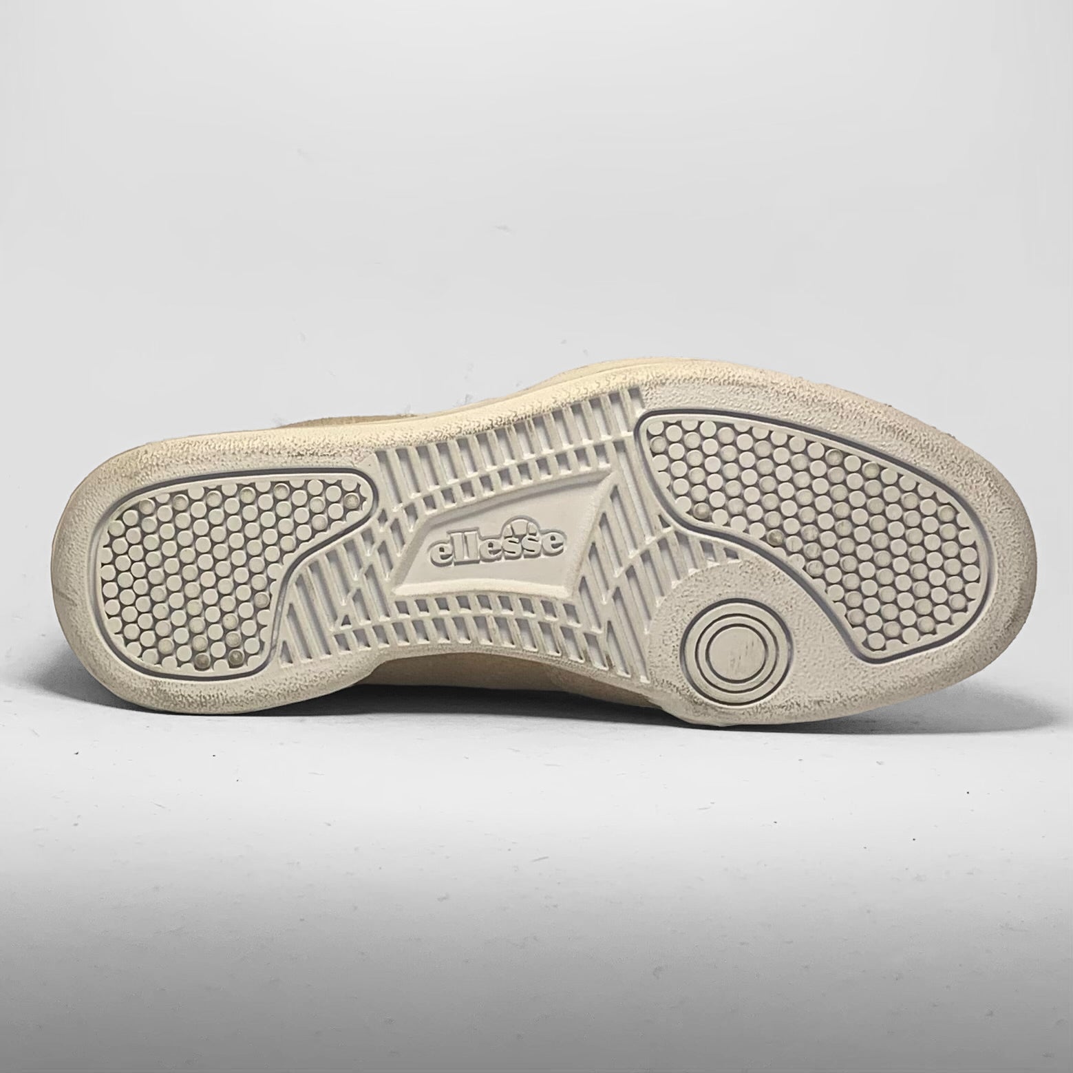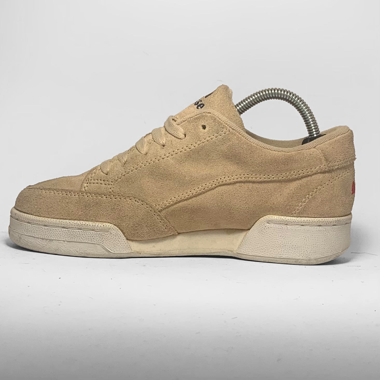 Suede upper in ecru cw with embroidered branding on side, tongue and heel.