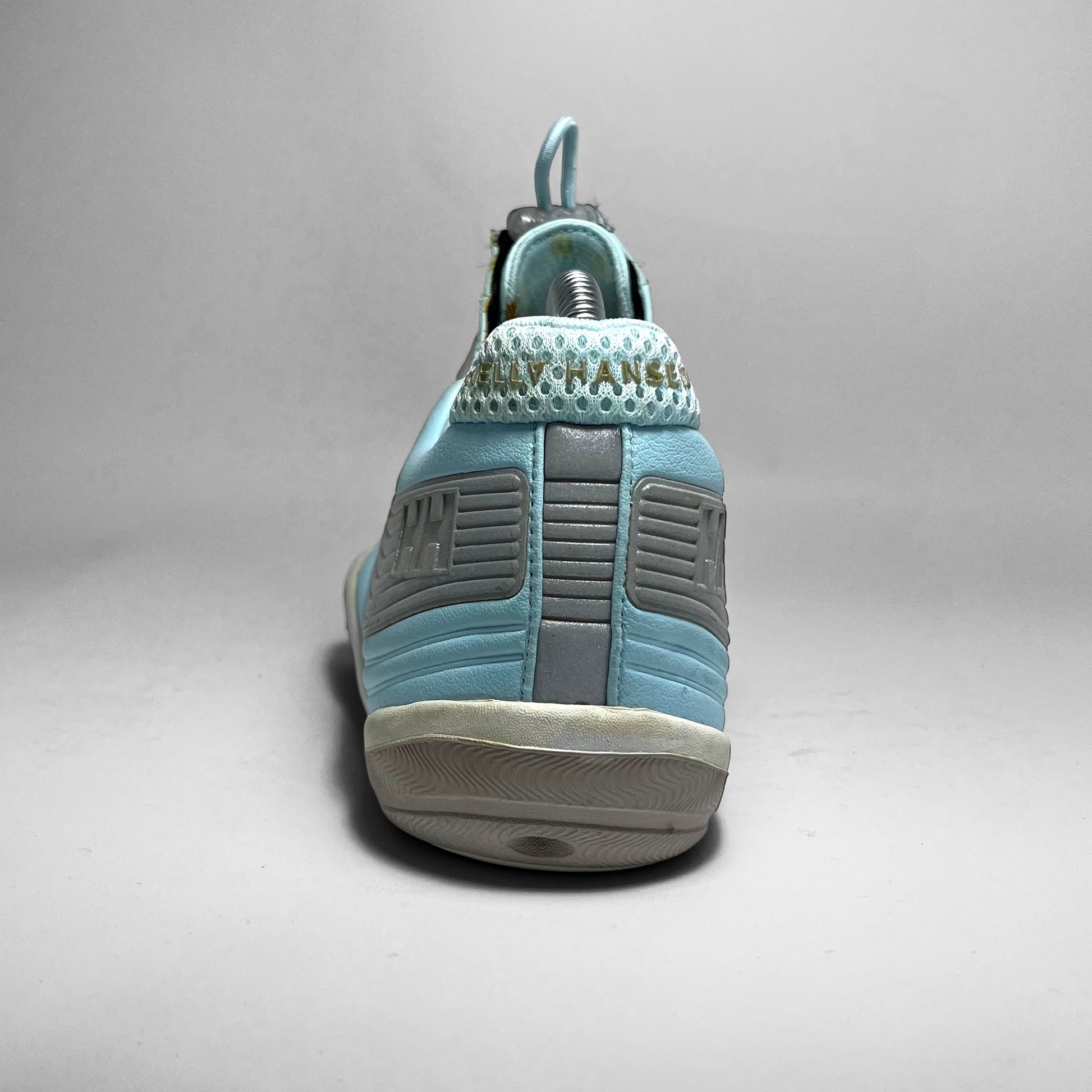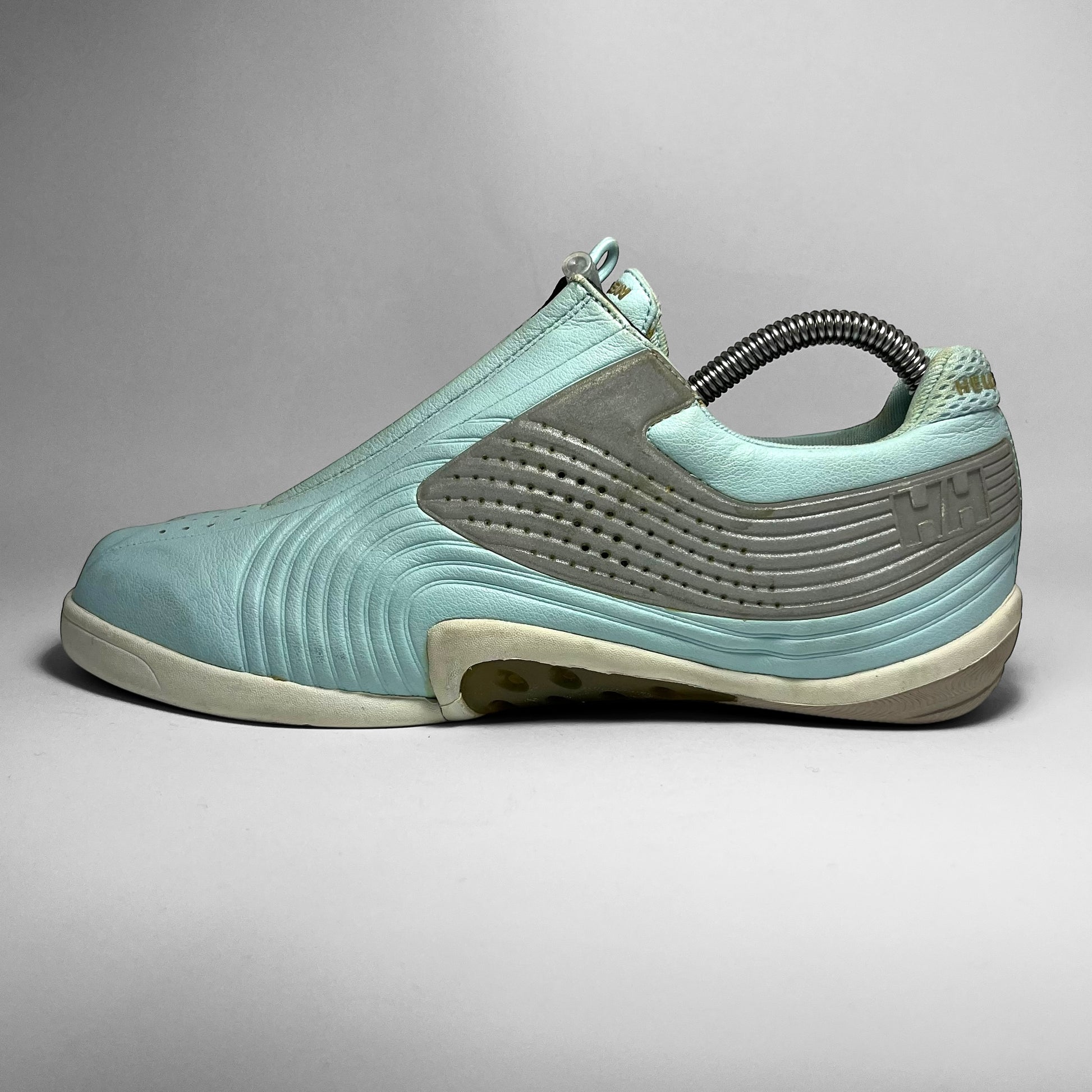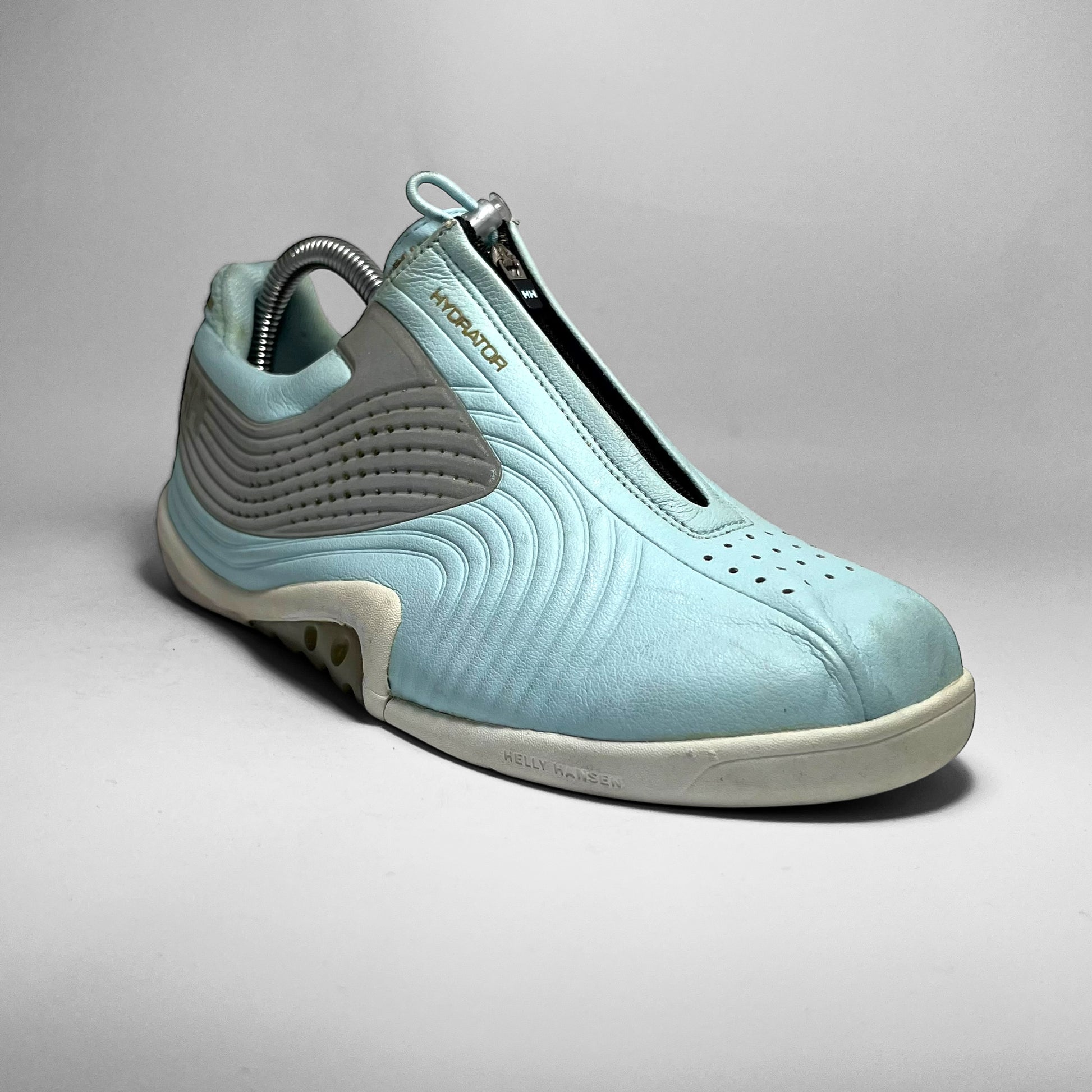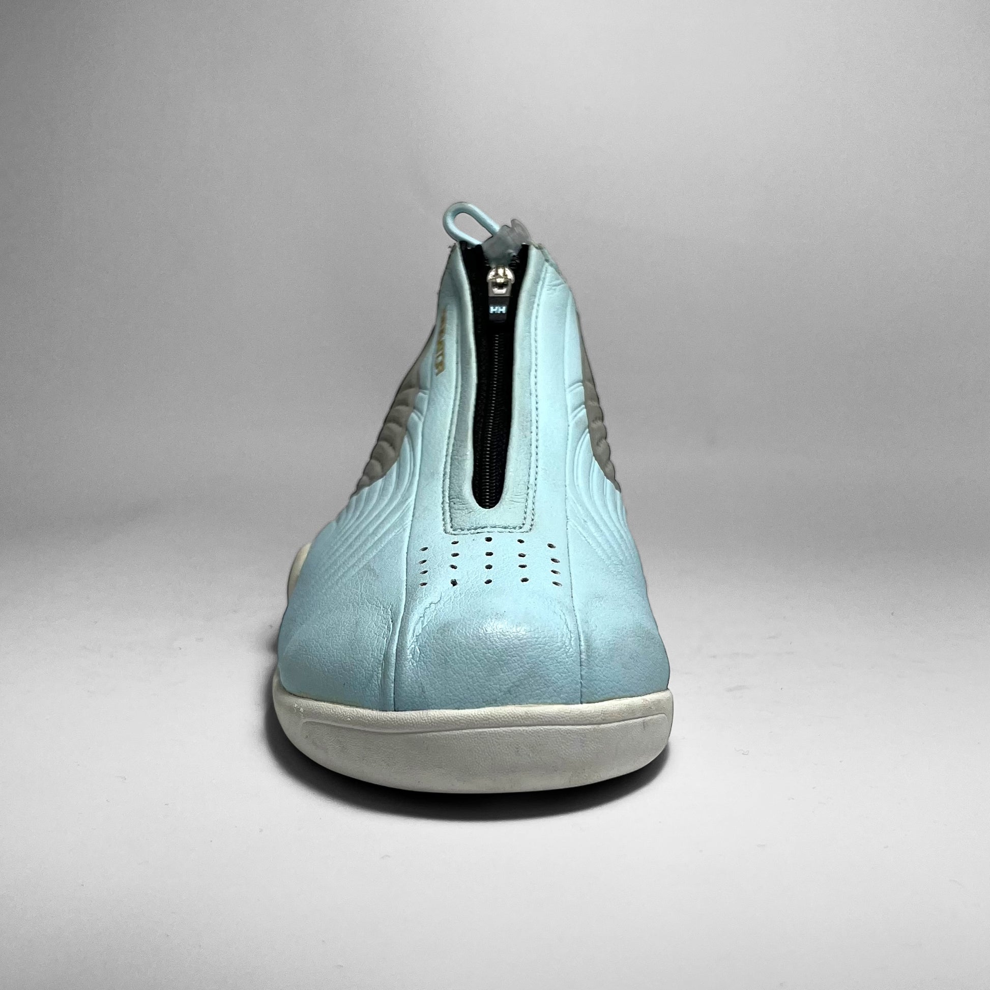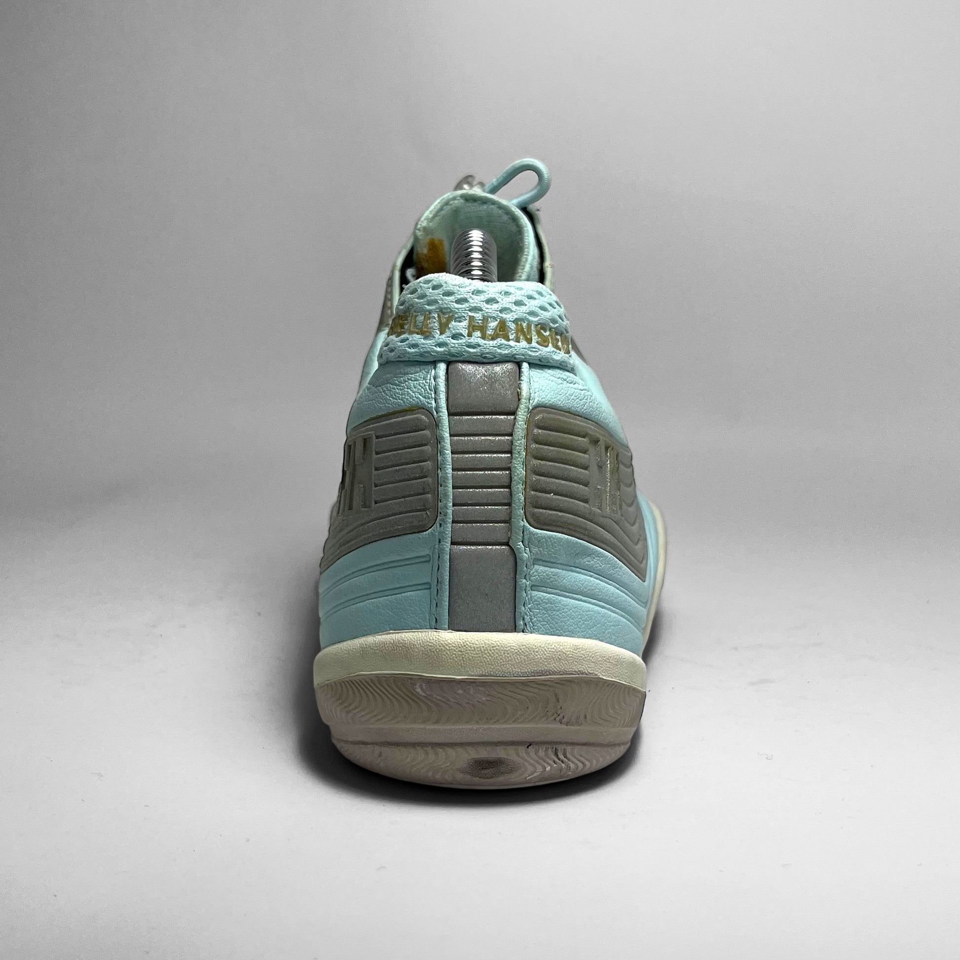 Turquoise leather upper with 3M-reflective side panel and perforation details, streamlined embossing as well as branded HH, branded zip closure and elastic toggle to adjust fit, mesh heel-collar with embroidery.