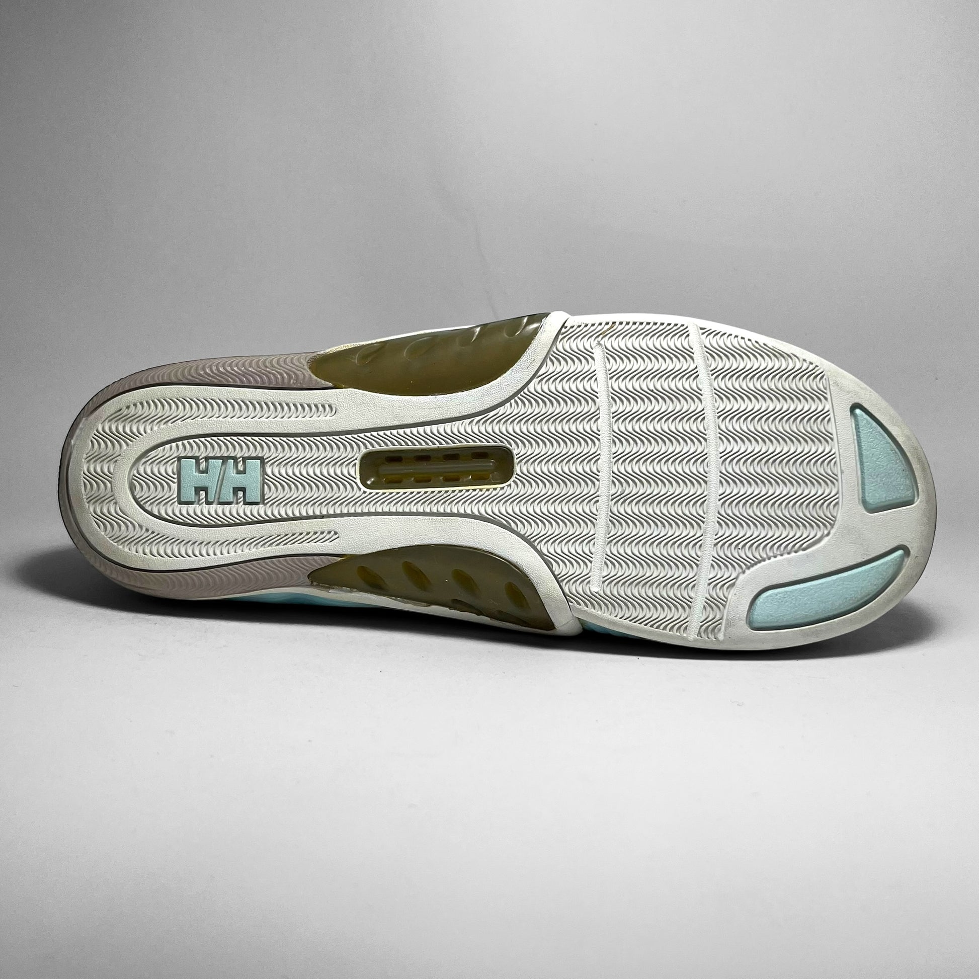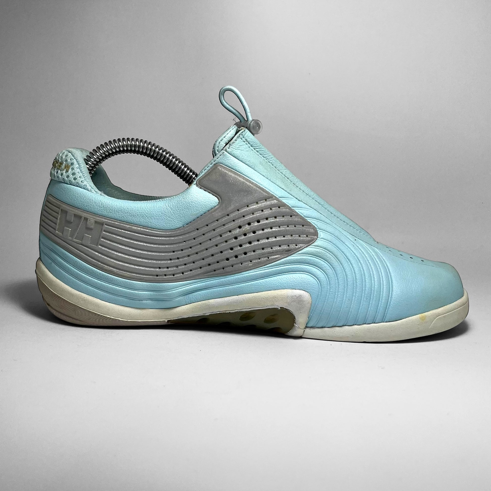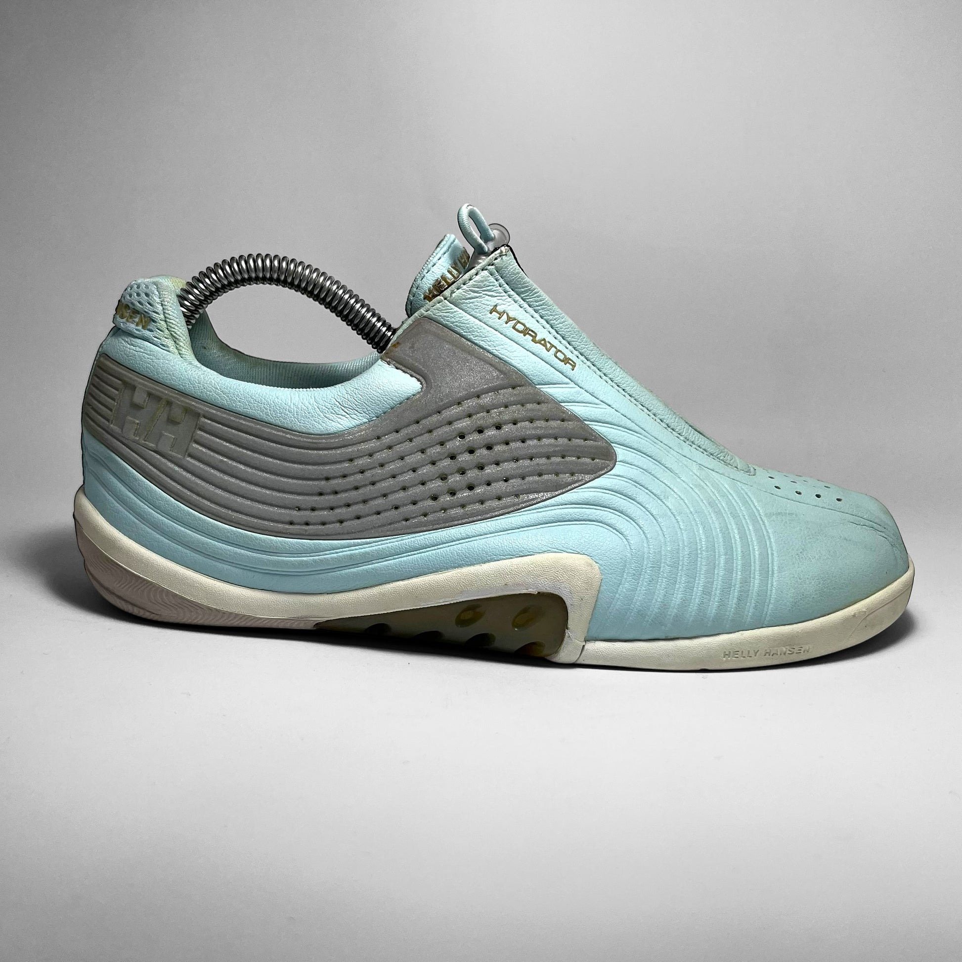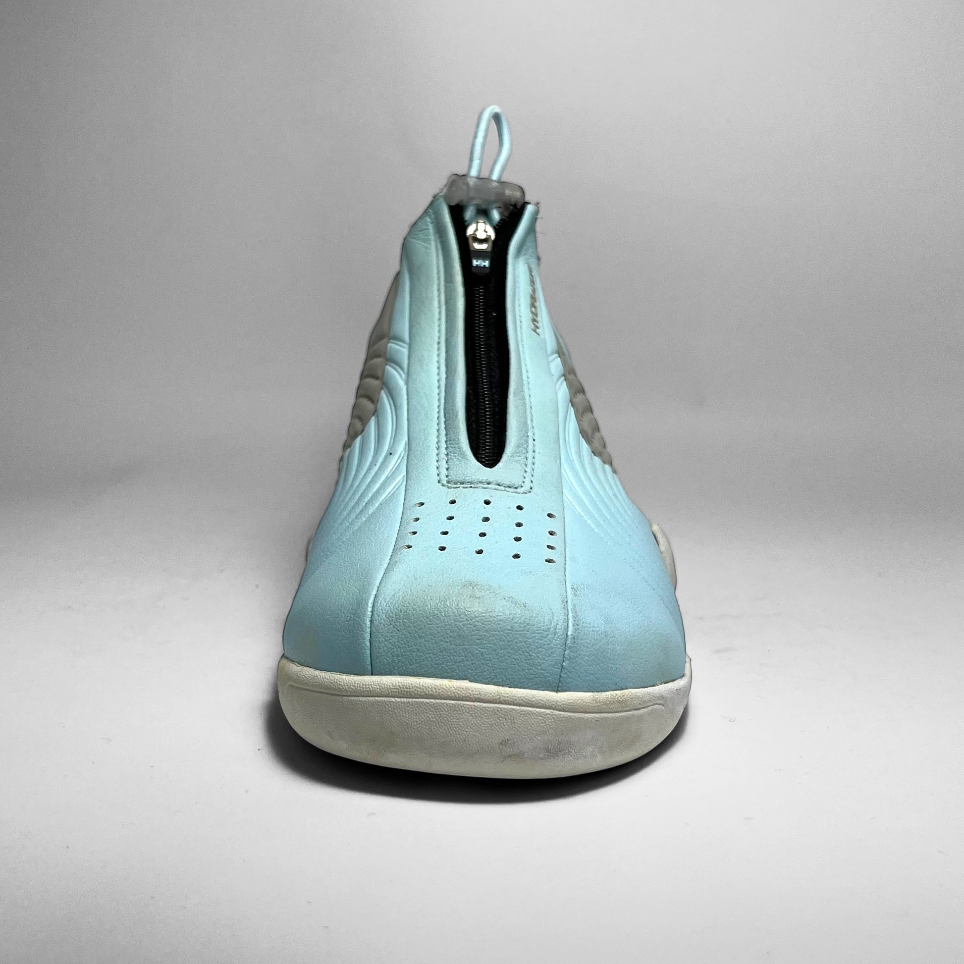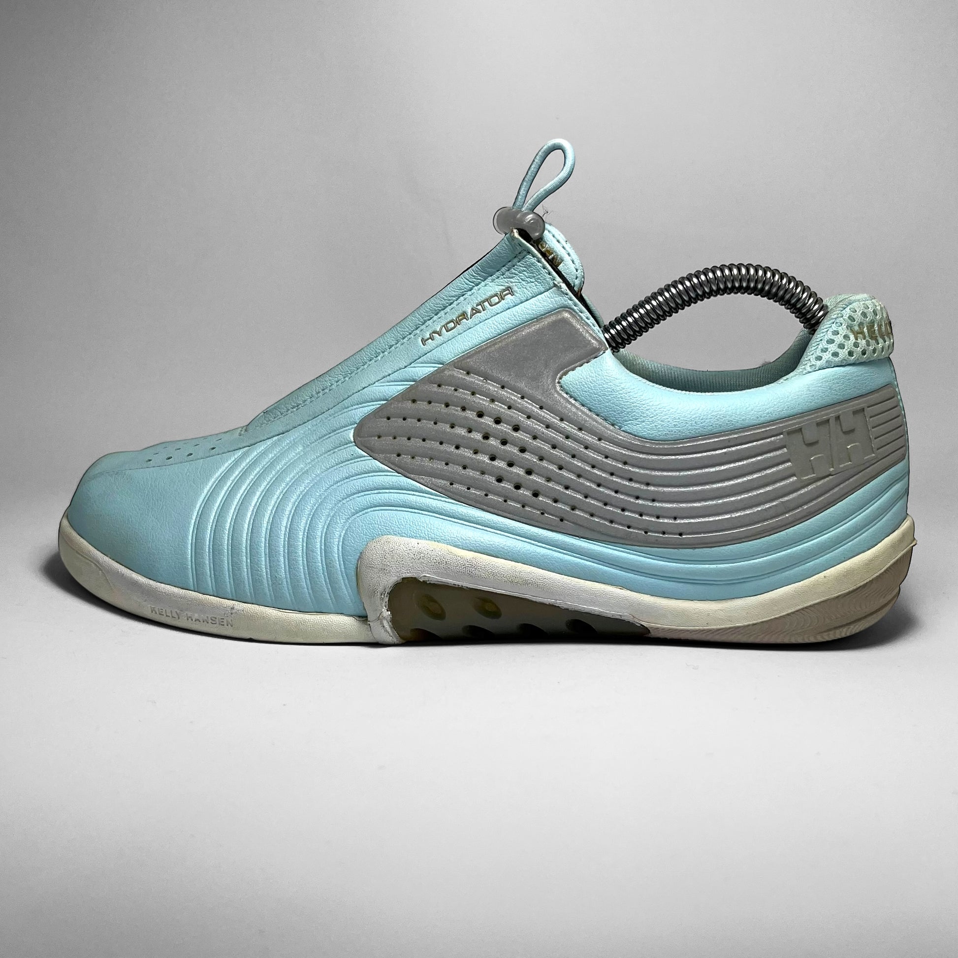 Turquoise leather upper with 3M-reflective side panel and perforation details, streamlined embossing as well as branded HH, branded zip closure and elastic toggle to adjust fit, mesh heel-collar with embroidery.