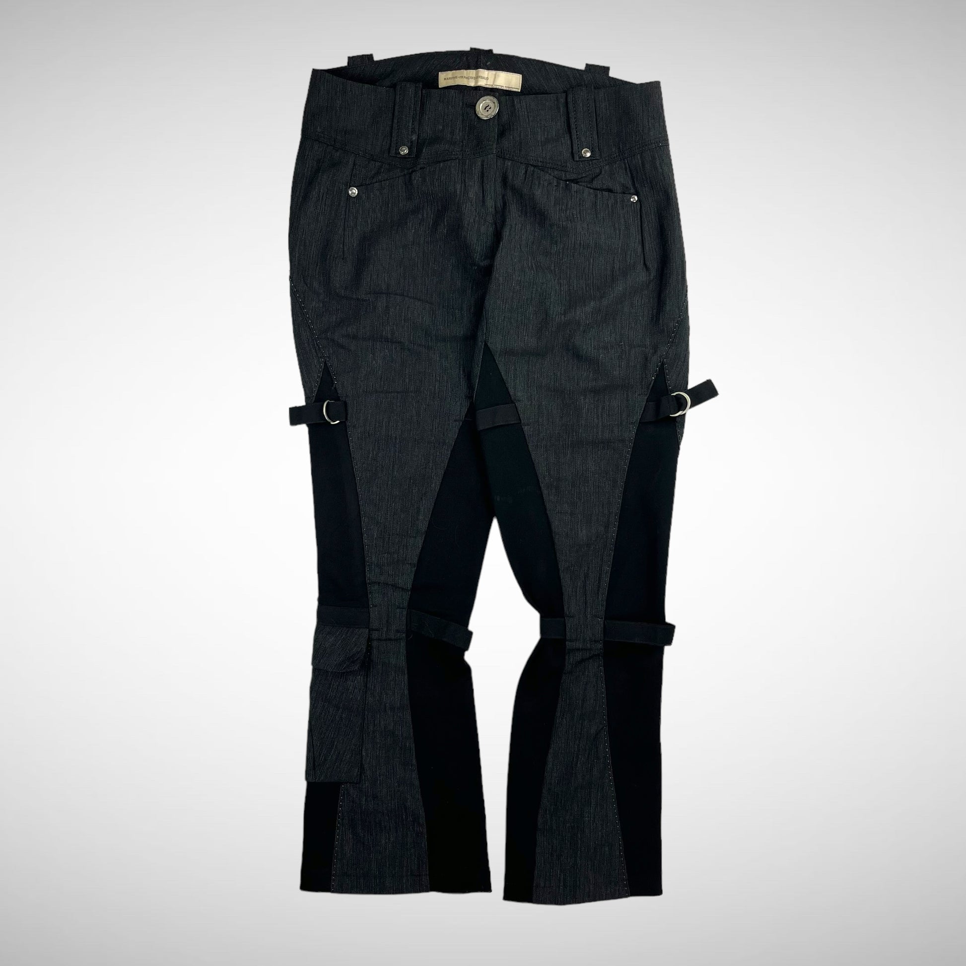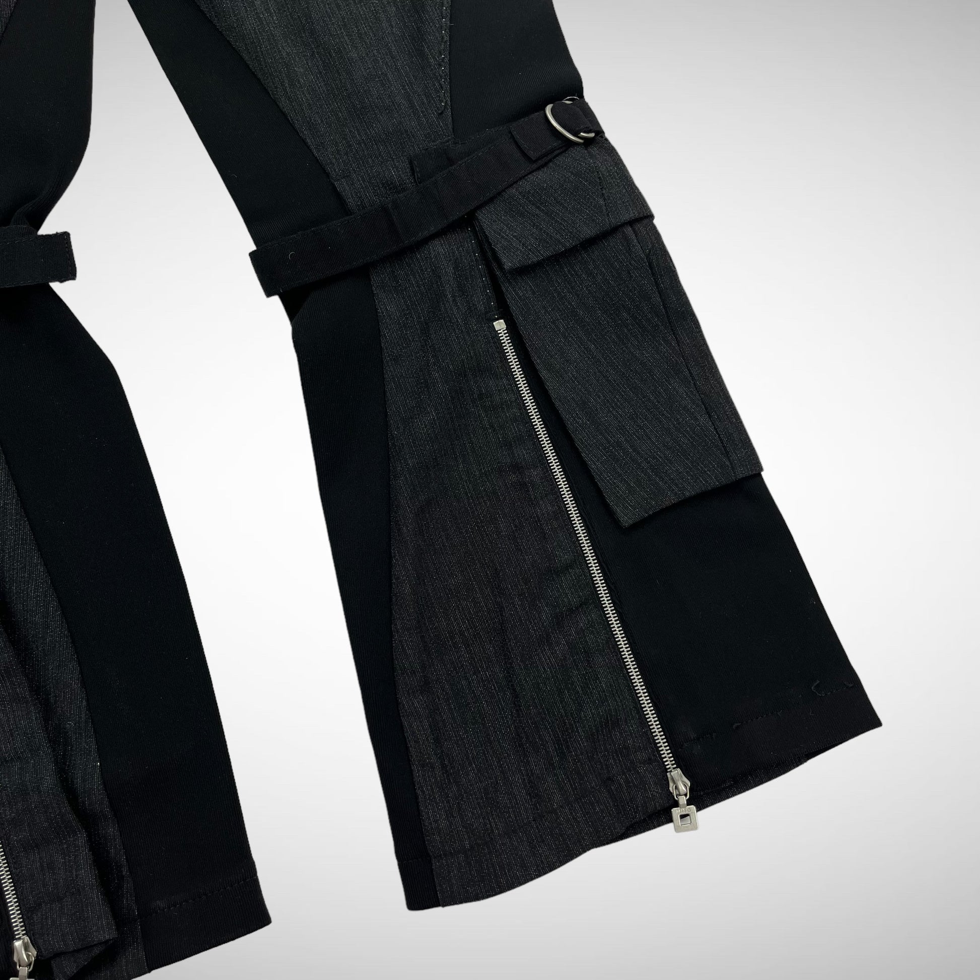 Mixed fibres and panels blending the casual and technical styles perfectly together with straps and zips at heel to adjust fit and style, lower leg cargo pocket, articulated top and flared legs.
