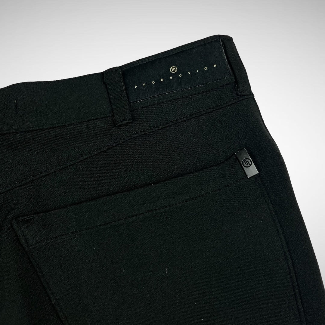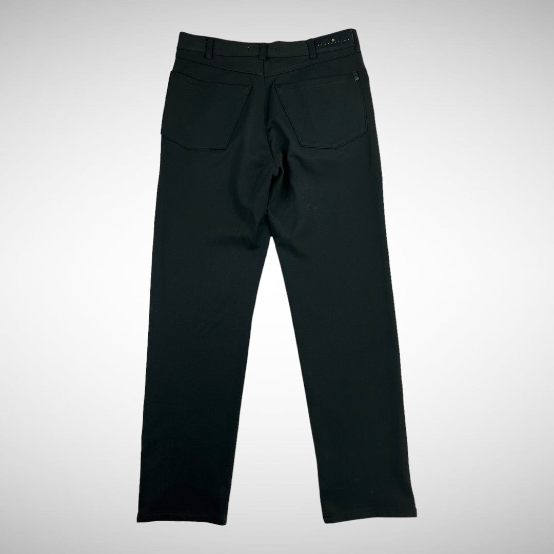 5-pocket stretch cotton trousers in black with metal branded emblem on back pocket accompanied with branded patch on waist.