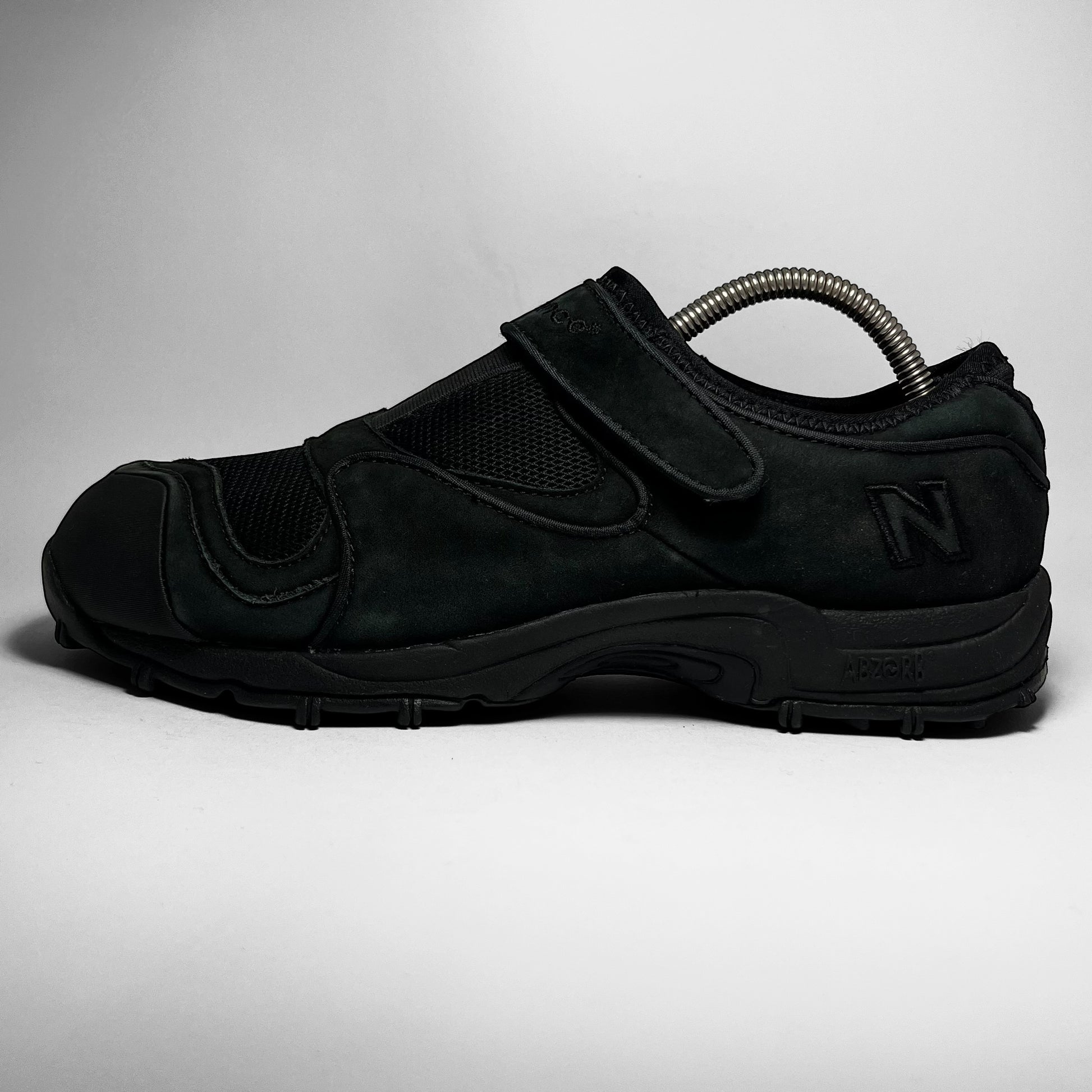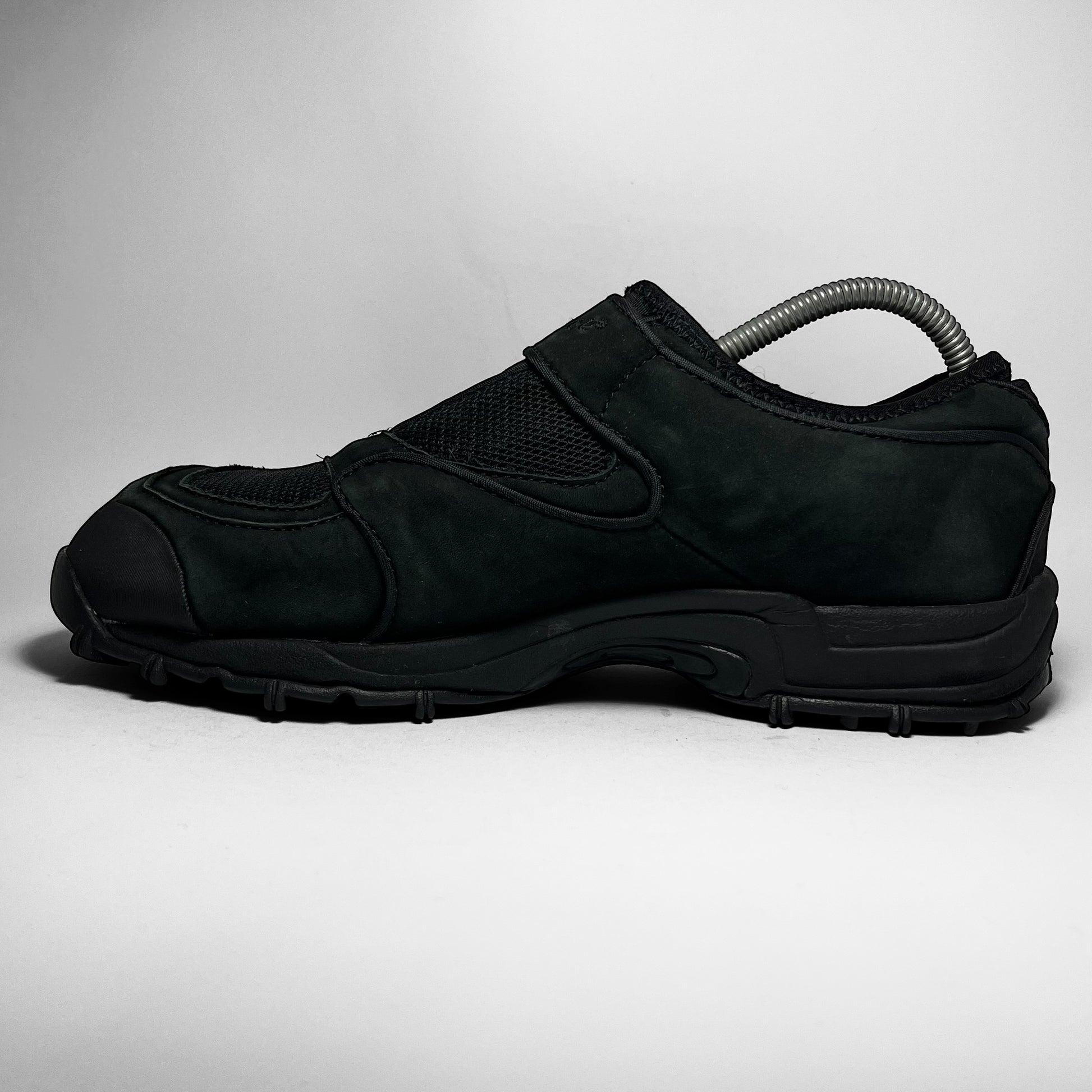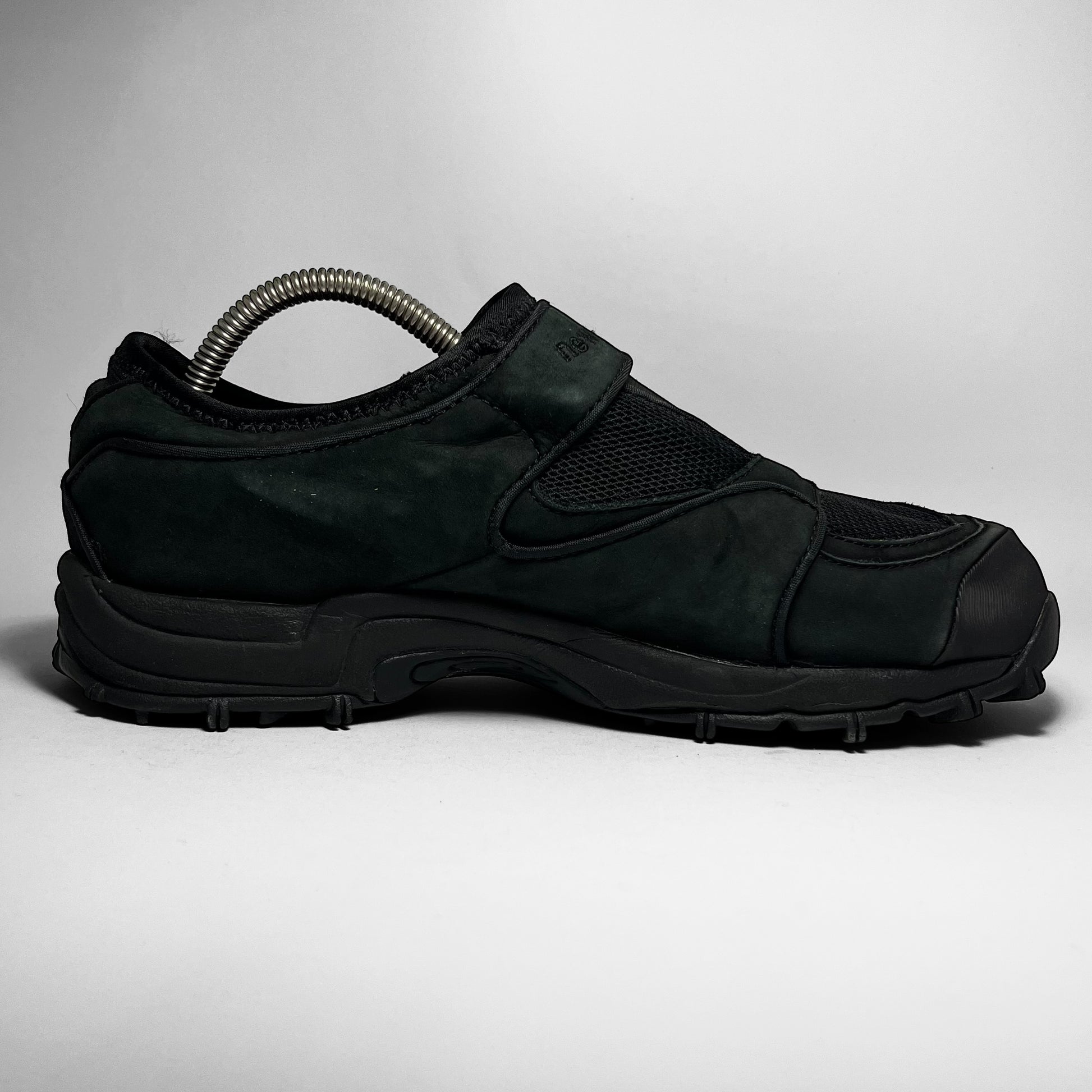 One of the better slip-on models out there with neoprene collar/sock-entry and stretch ‘tongue’, layered suede panels and velcro strap, embroidered branding, piping details and mesh top part.