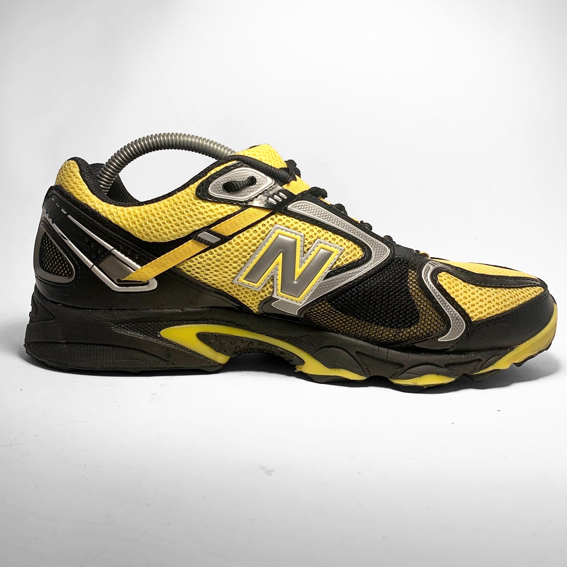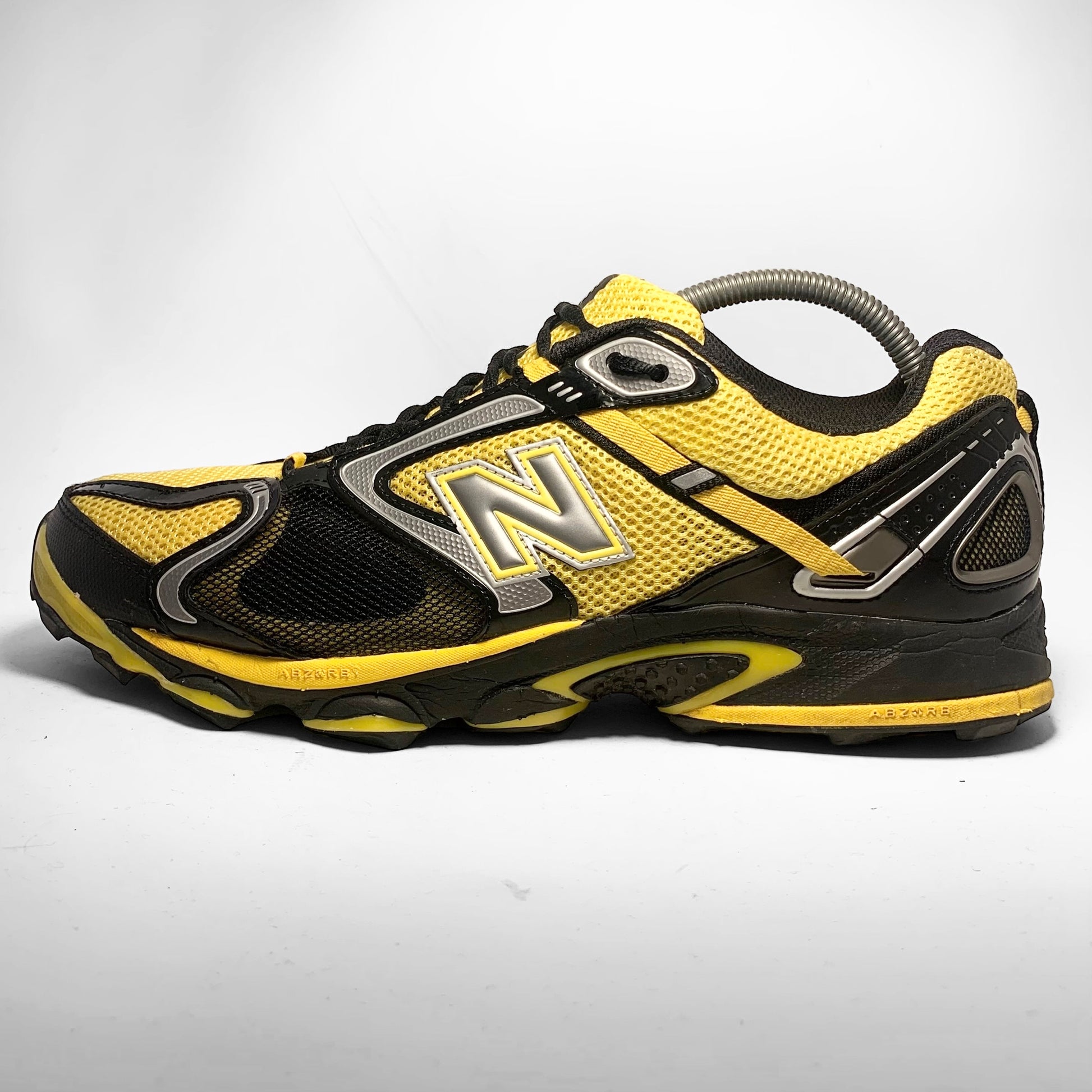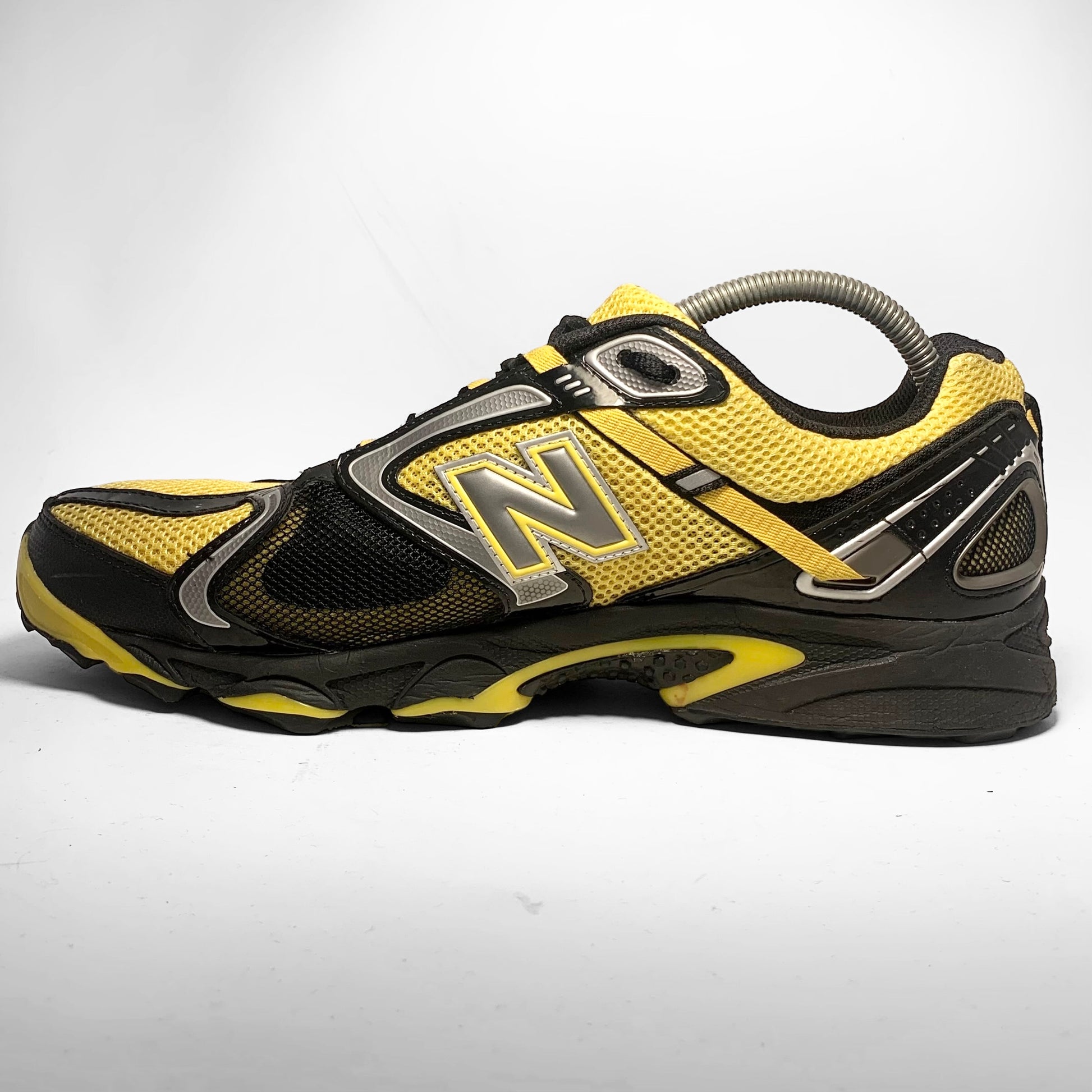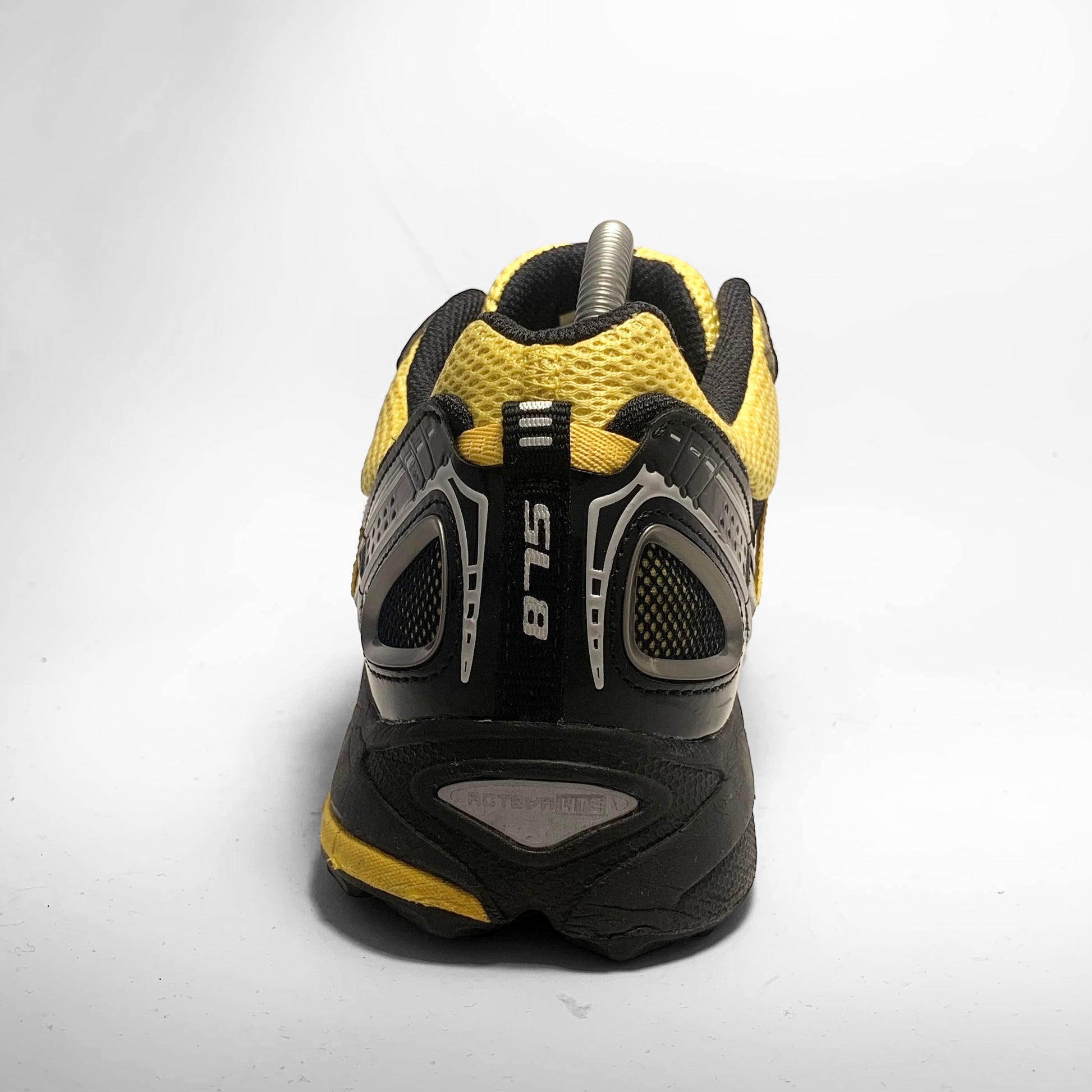 Double layered mesh base, overlayed with partly black mesh, patent leather panels and embossed detailed silver panels, yellow strap along the sides to keep the foot firm and All-Terrain outsole.