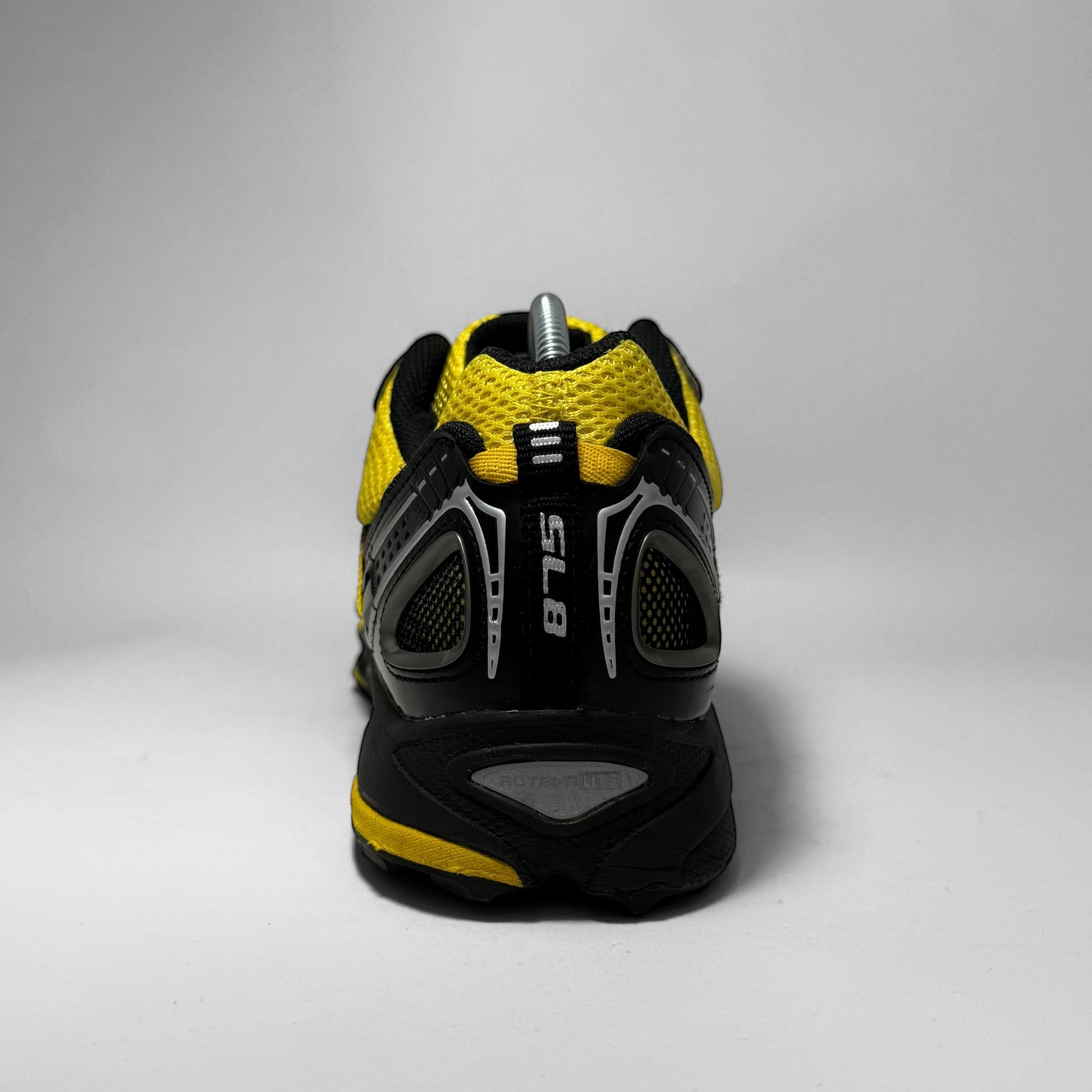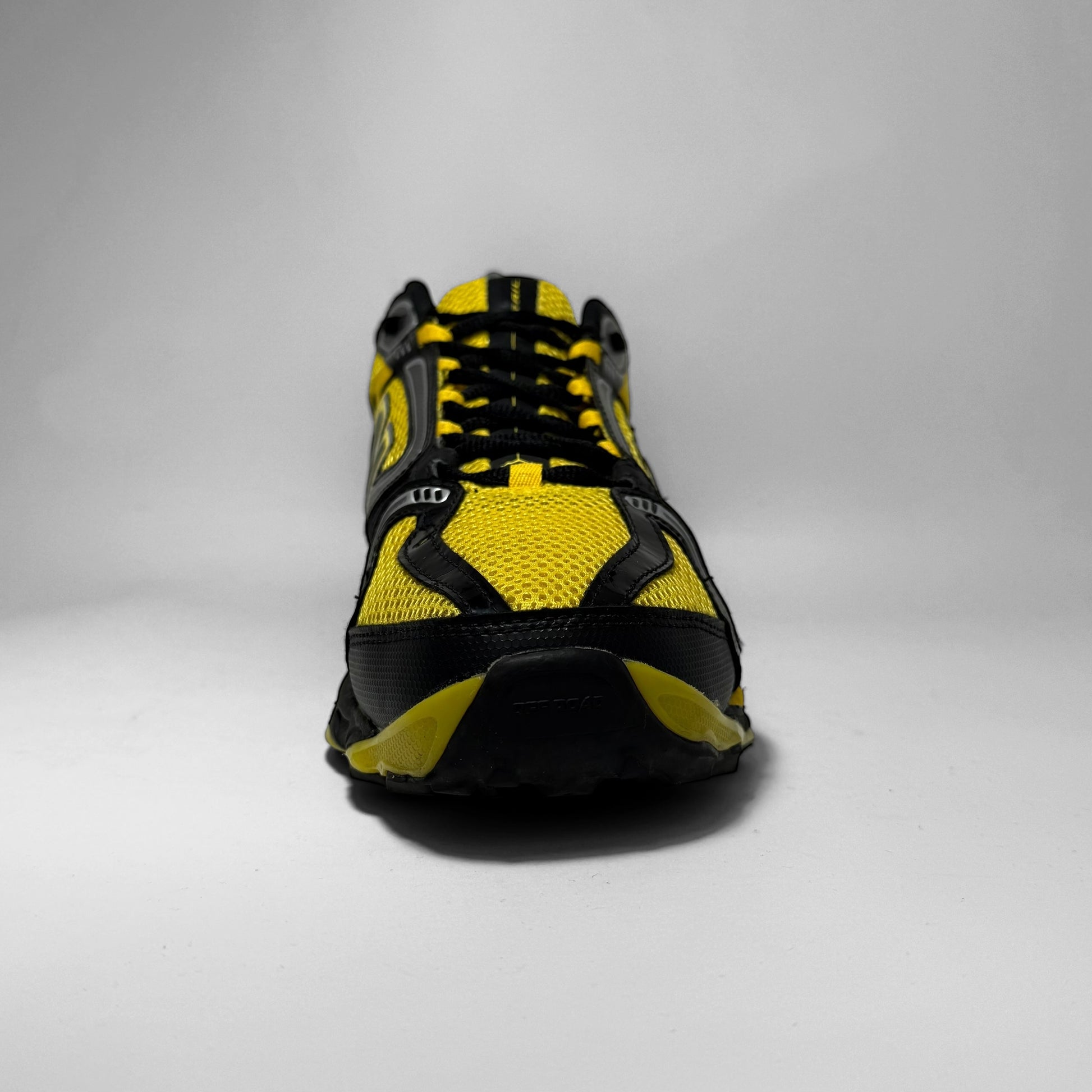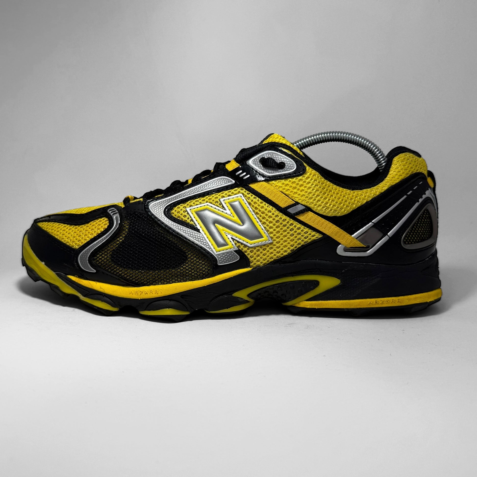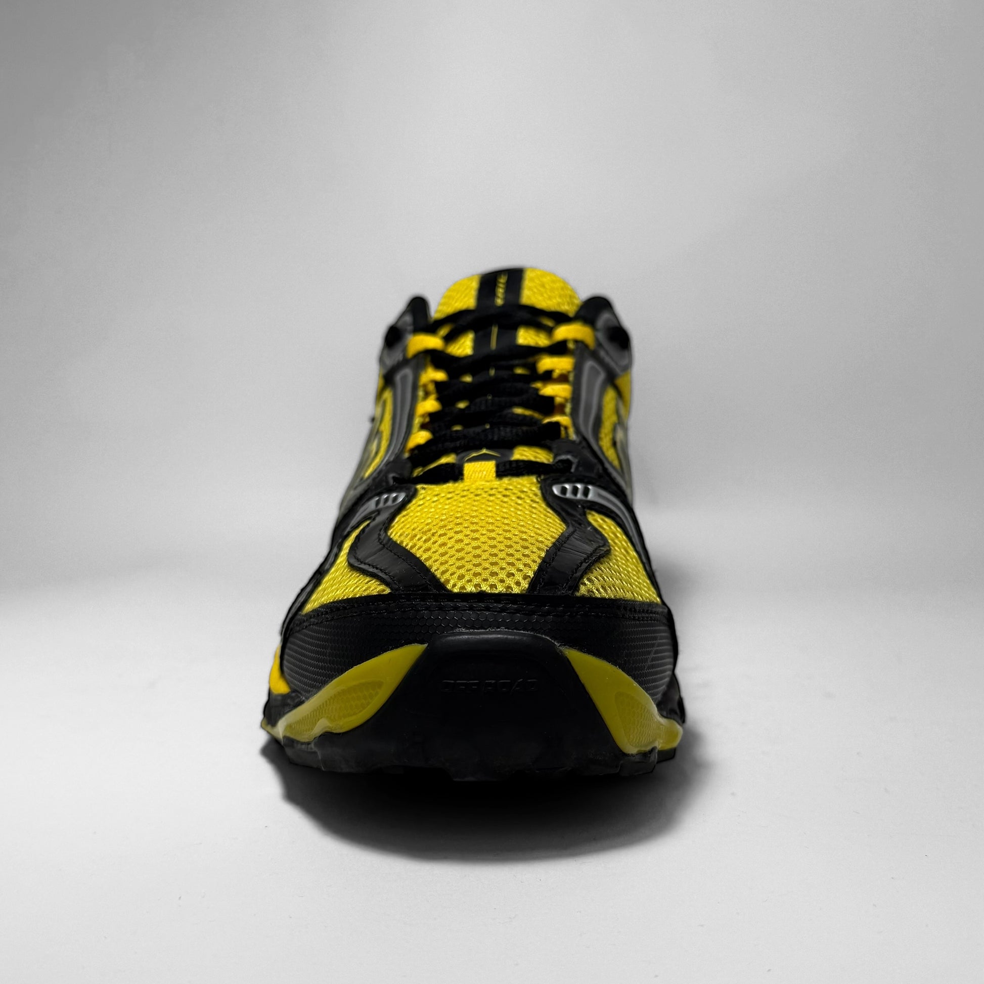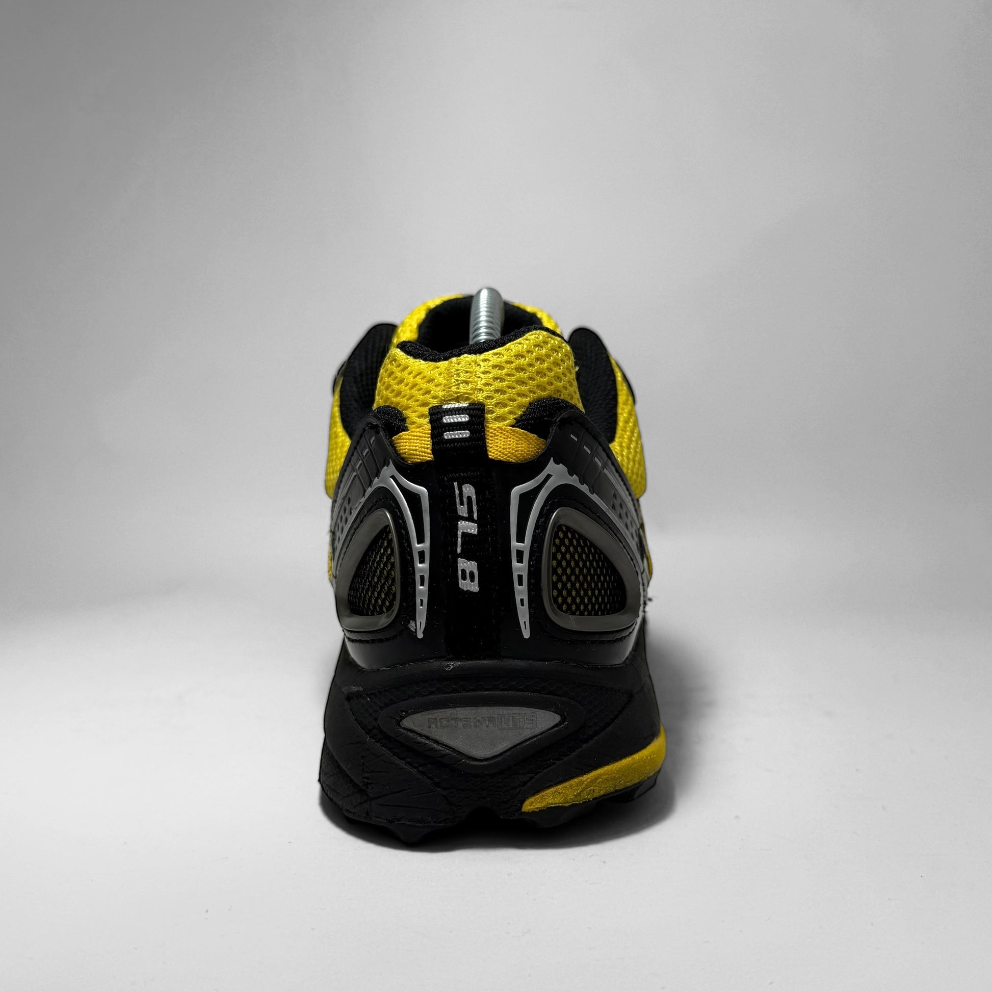 Features a bold yellow and black mesh upper with metallic silver overlays and reflective details. Equipped with ABZORB cushioning and a rugged N-Durance rubber outsole with deep multidirectional lugs for optimal grip on rough terrain. Finished with dynamic branding and “875” on the heel tab.