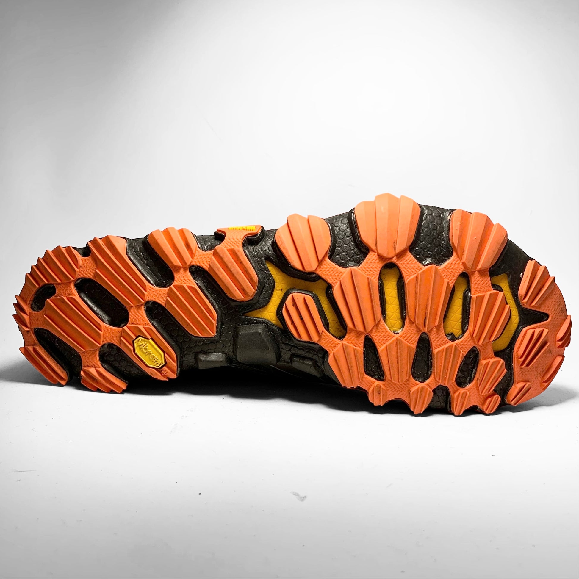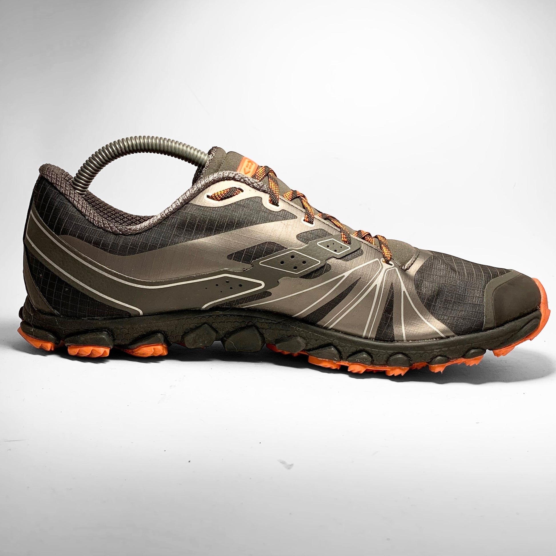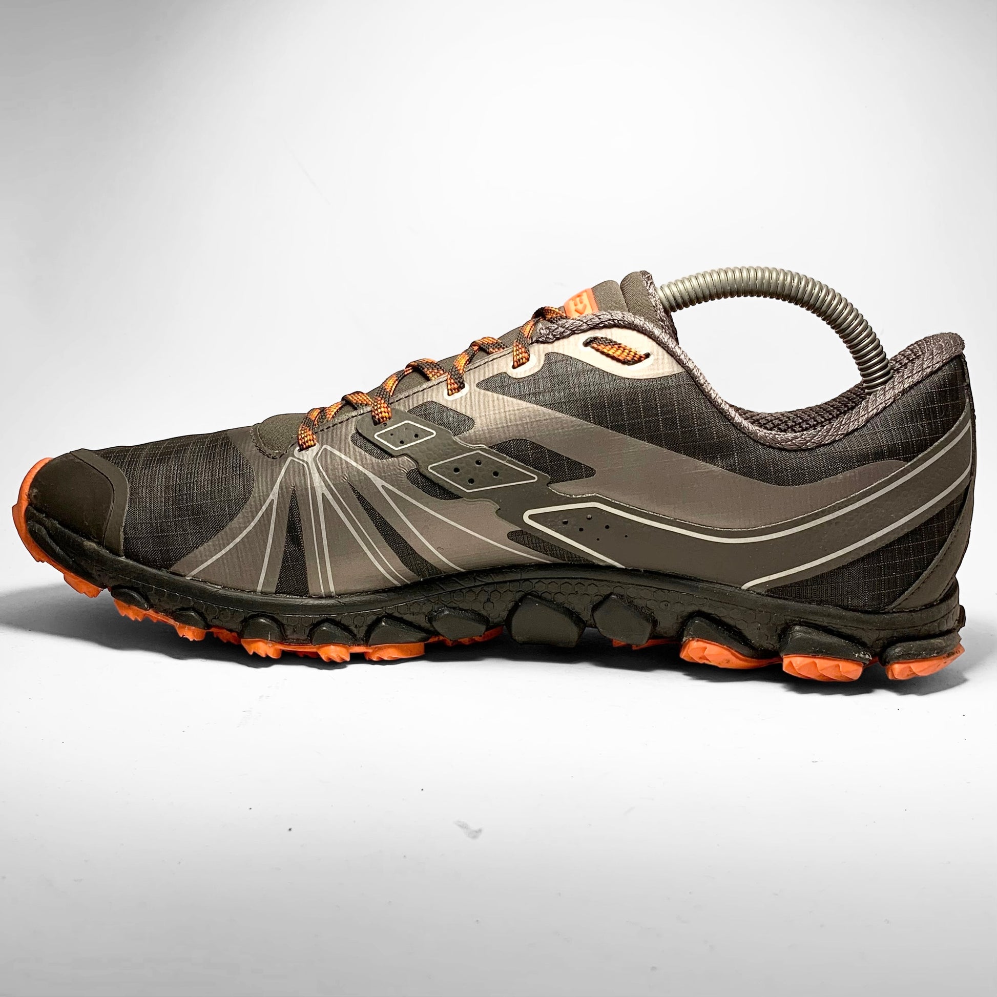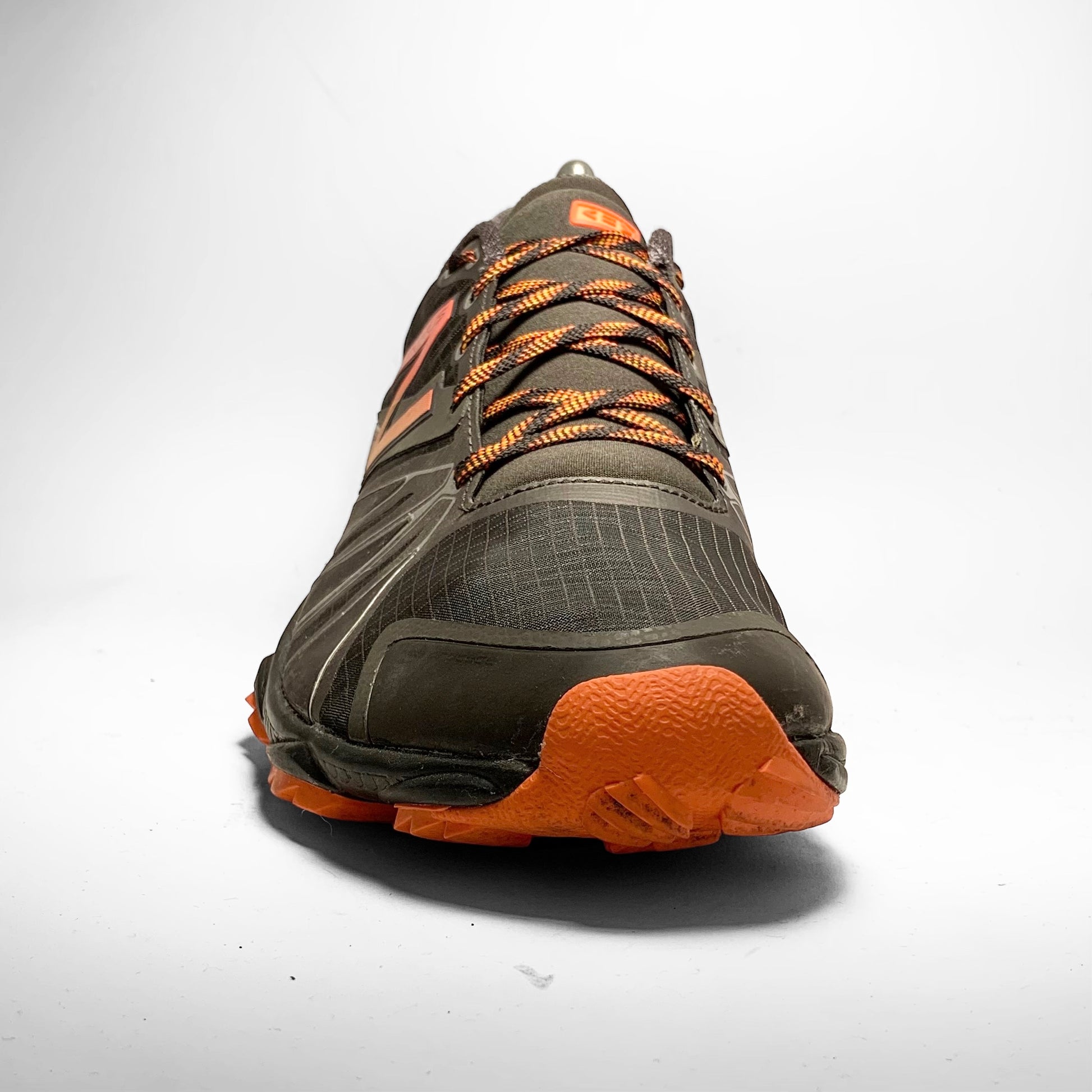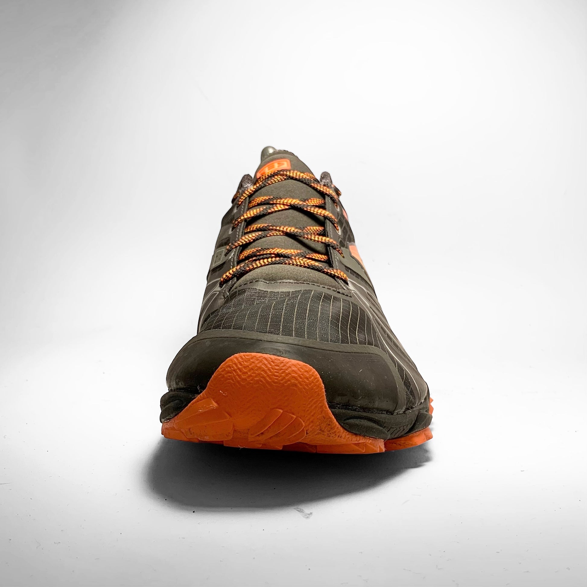 Super lightweight pair with a ton of grip due to Vibram’s outsole structure, rockstop plate and REVlite midsole. Khaki coloured rip-stop upper layered with robust synthetic panels and orange detailed branding and details.