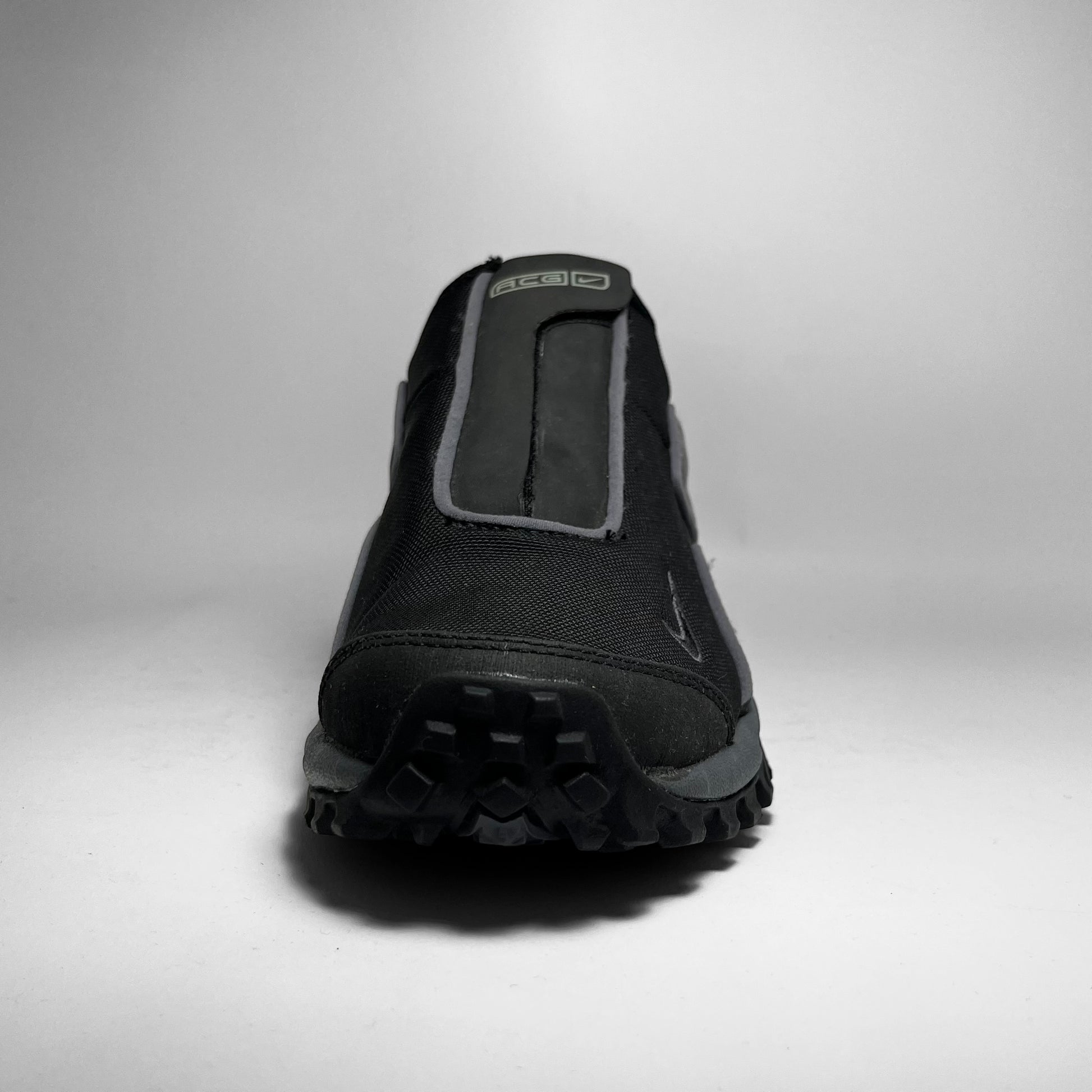 This all-black colorway with dark grey accents enhances its stealthy aesthetic, while the minimalist paneling and sculpted midsole reflect the bold experimental era of early-2000s Nike design. A rare archival piece, the Nike ACG Air Plateau is a must-have for collectors and those who appreciate functional innovation in footwear.