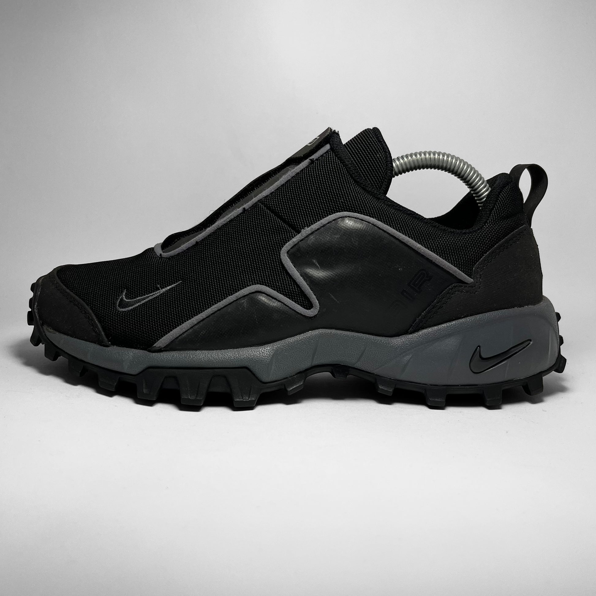 A true gem from Nike’s early 2000s ACG lineup, the Nike ACG Air Plateau (2002) embodies rugged functionality and futuristic design. Built for off-road adventures, this sneaker features a leather velcro patch covering the laces, a construction with durable textile and leather overlays for a sleek yet utilitarian look. The aggressive outsole is engineered for traction and the Air cushioning provides comfort and stability, while the subtle ACG branding highlights its outdoor pedigree.