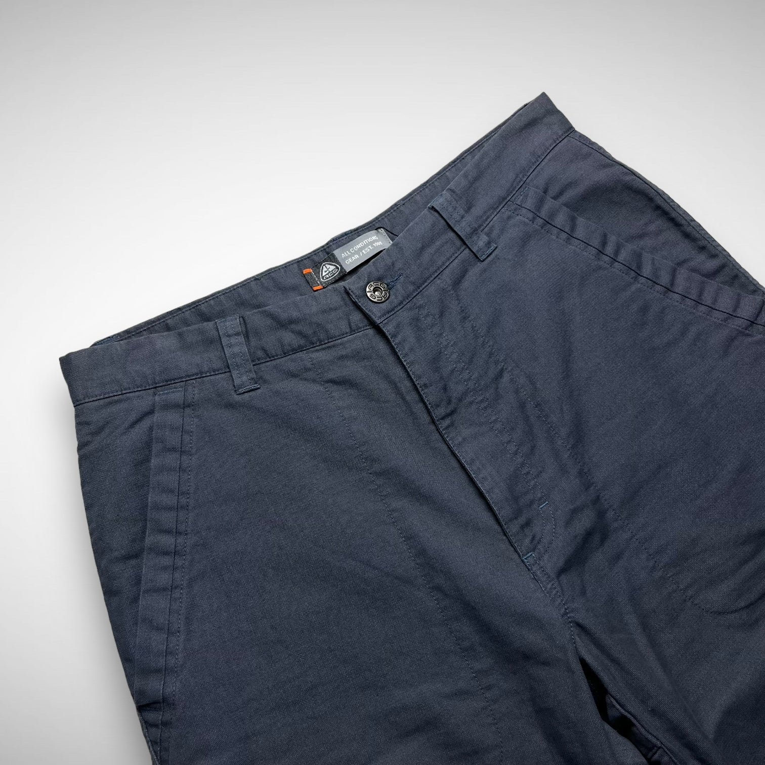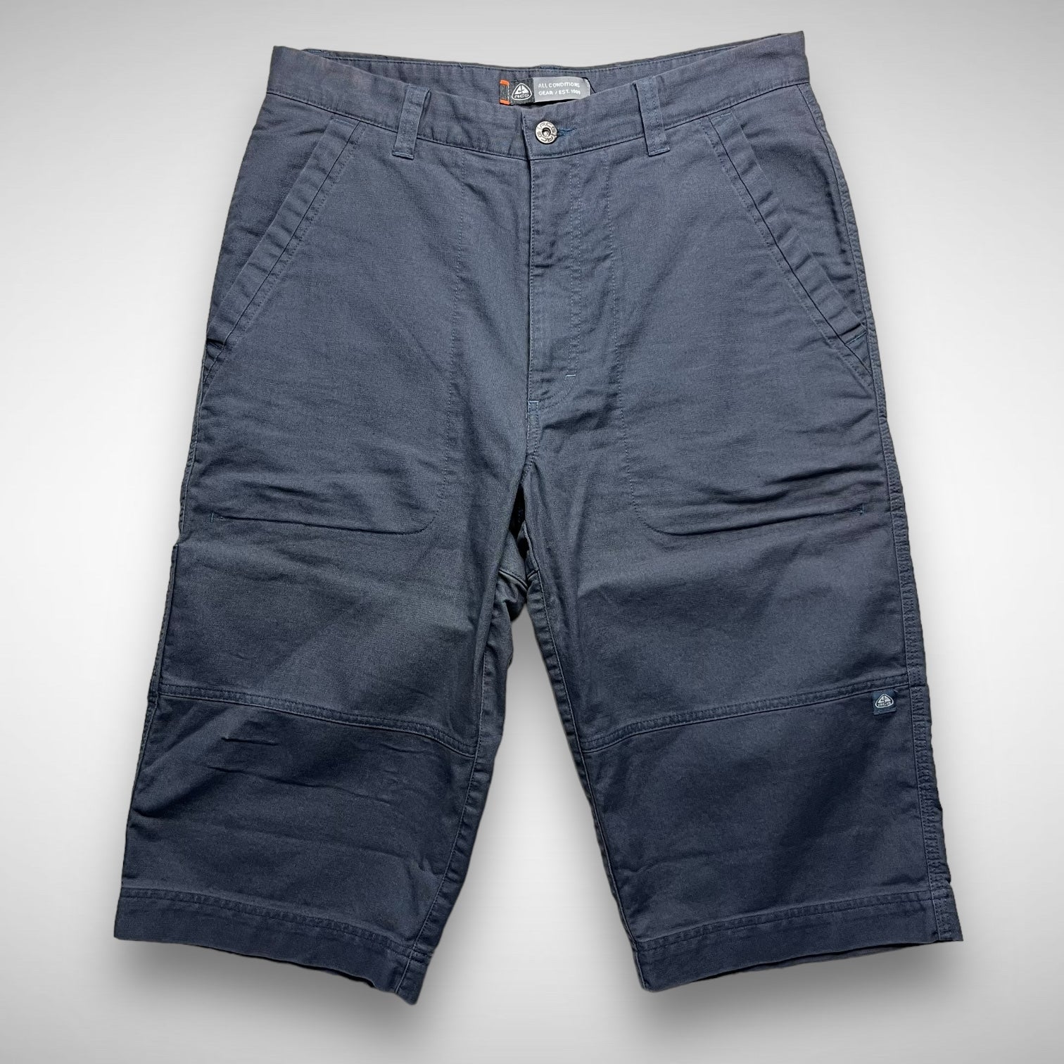 These Nike ACG jorts from the early 2000s come in a dark grey cotton twill fabric, featuring a relaxed fit and knee-length cut. Built for utility and comfort, they include deep front and back pockets, reinforced knee panels, and subtle ACG branding on the leg and waistband.