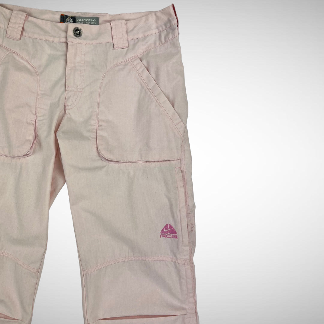 Tactical hiking pants with a multitude of vertical two-way zip-pockets on the legs and two big pockets, articulated knees, stitched ACG lungs-logo branding and patch on the back pocket.