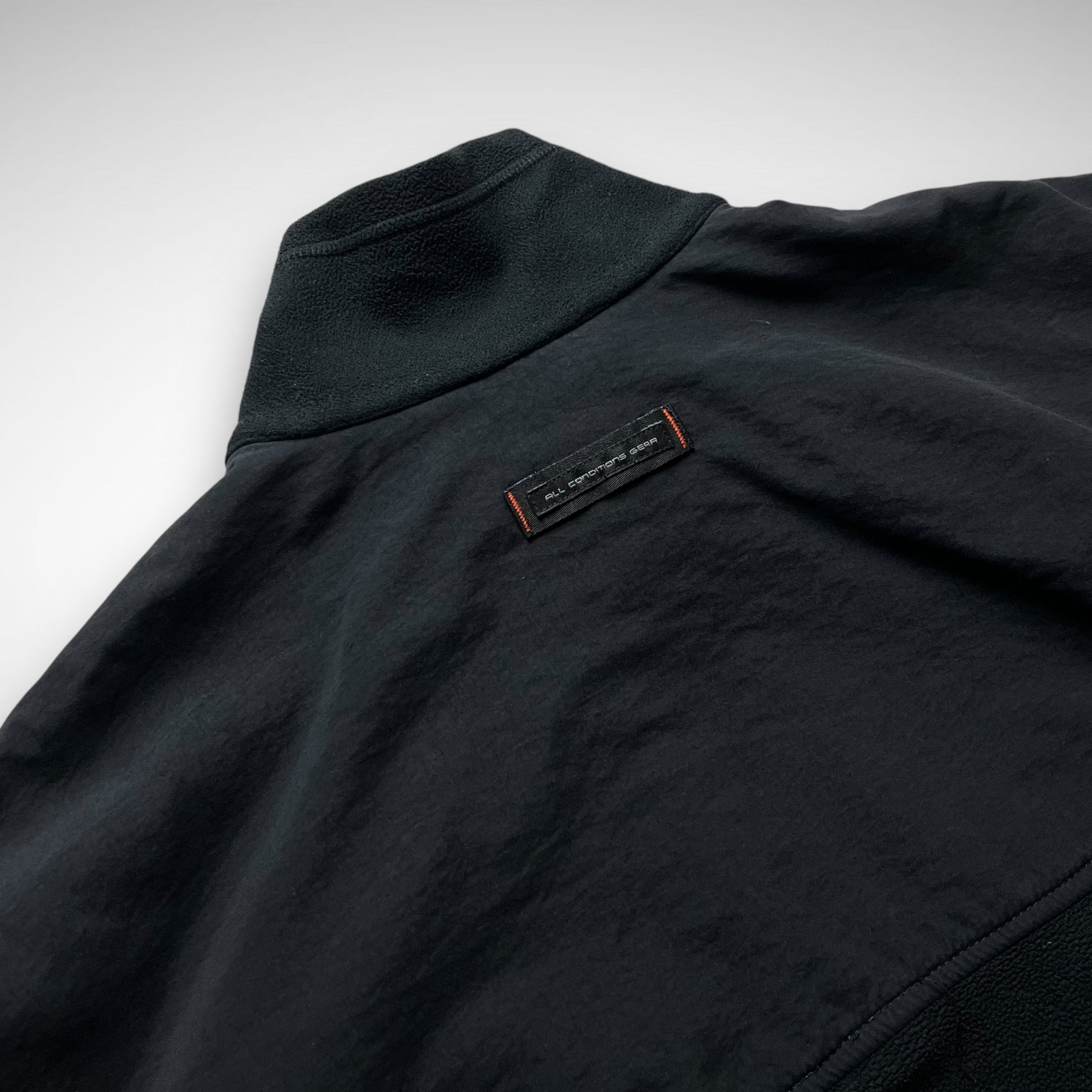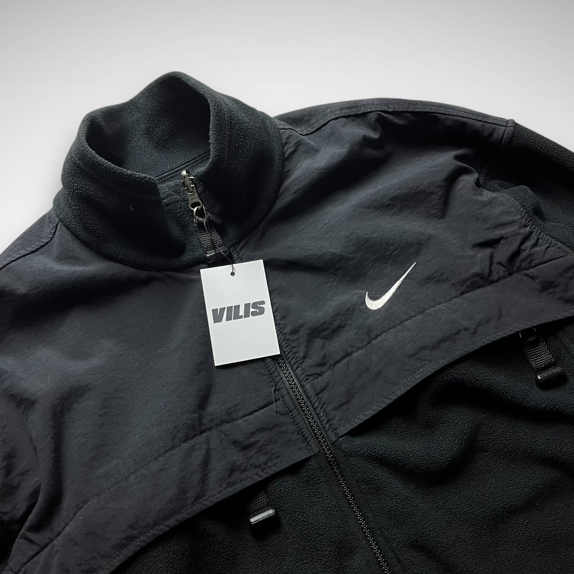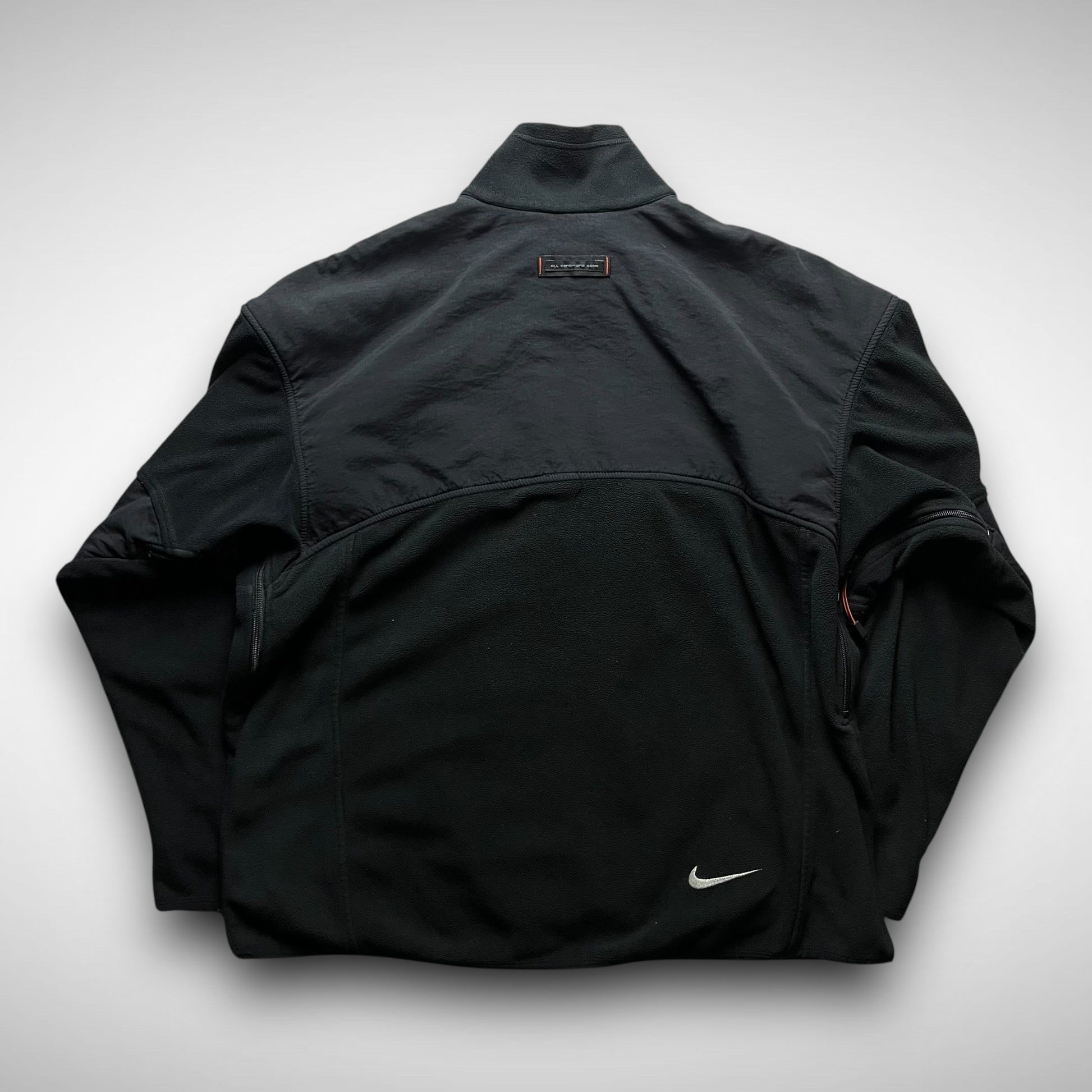 Thermo fleece jacket featuring a nylon upper body including elbows, branded hardware on all four front zip-pockets and closure, elasticated cuffs, embroidered swoosh on chest and lower back, ACG lungs-logo on upper arm, Thermo-Fit tag at lower arm and ACG script branded tag at upper-neck. Including arm-pit zips for ventilation.