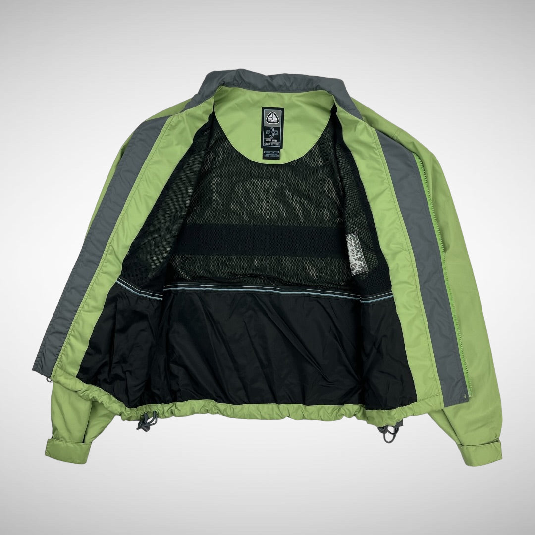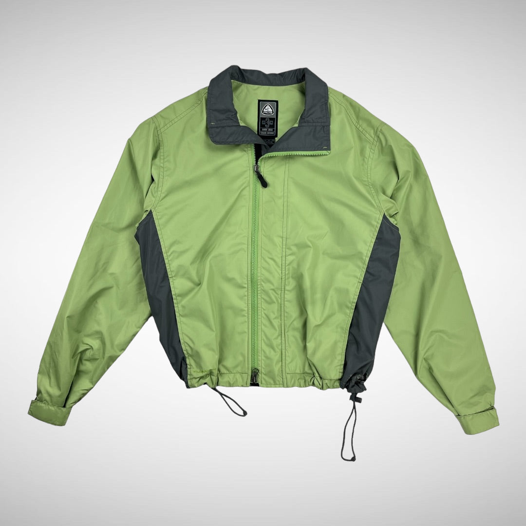 Condition is like new. Green and grey panels, two-way zip, double front pockets, contrast print and patch branding including Lungs-logo branding on the back mid-section.