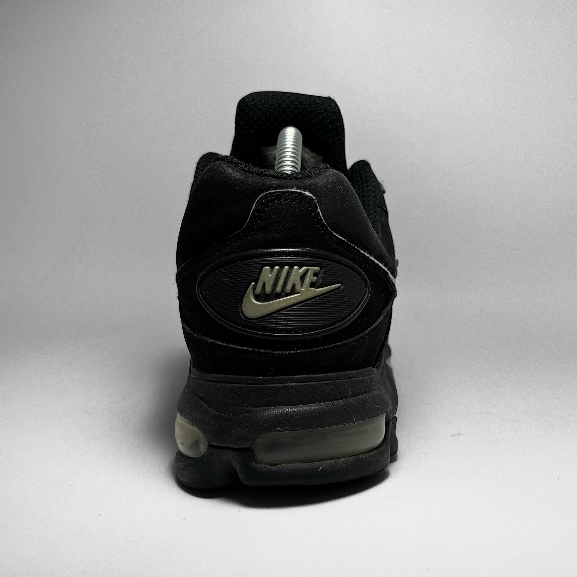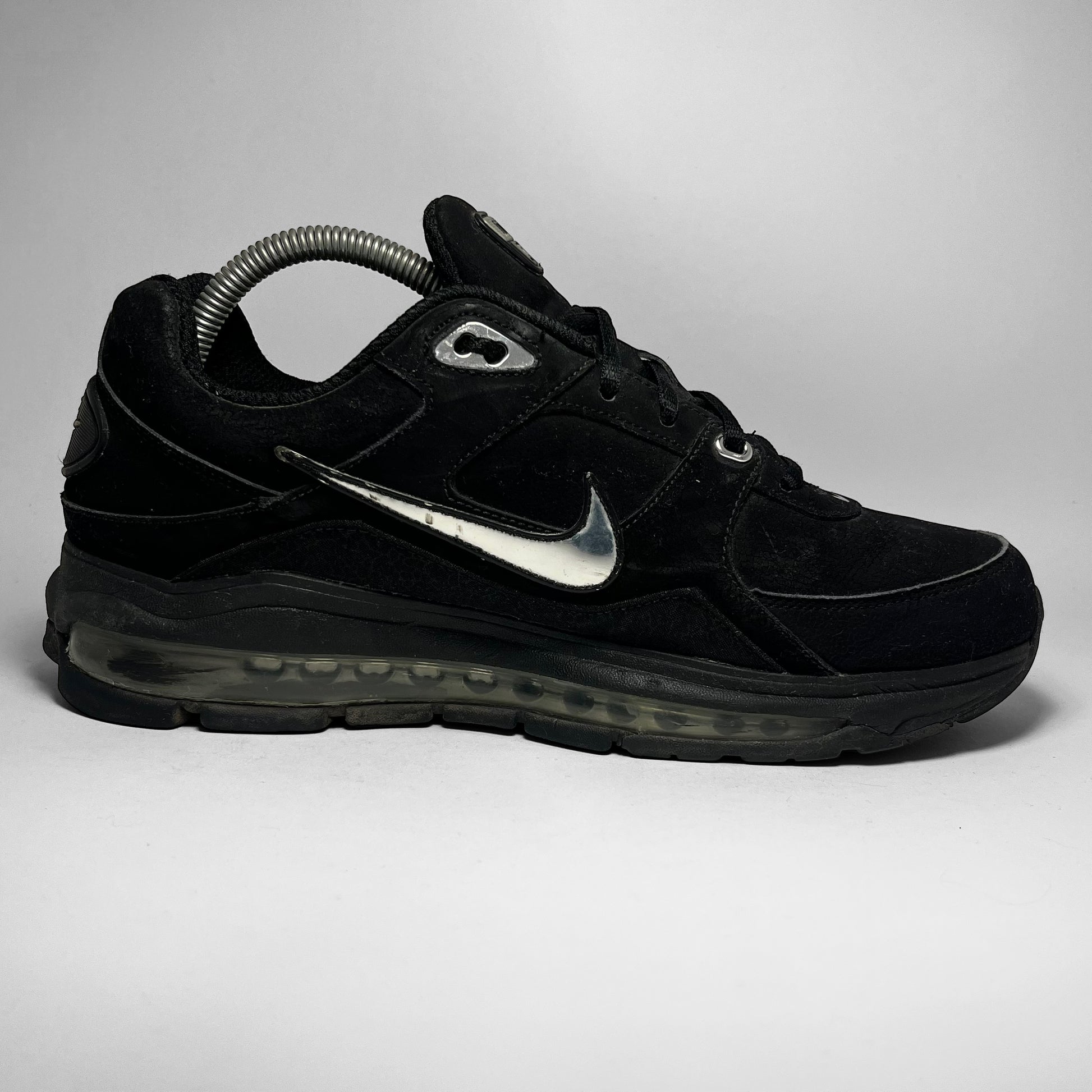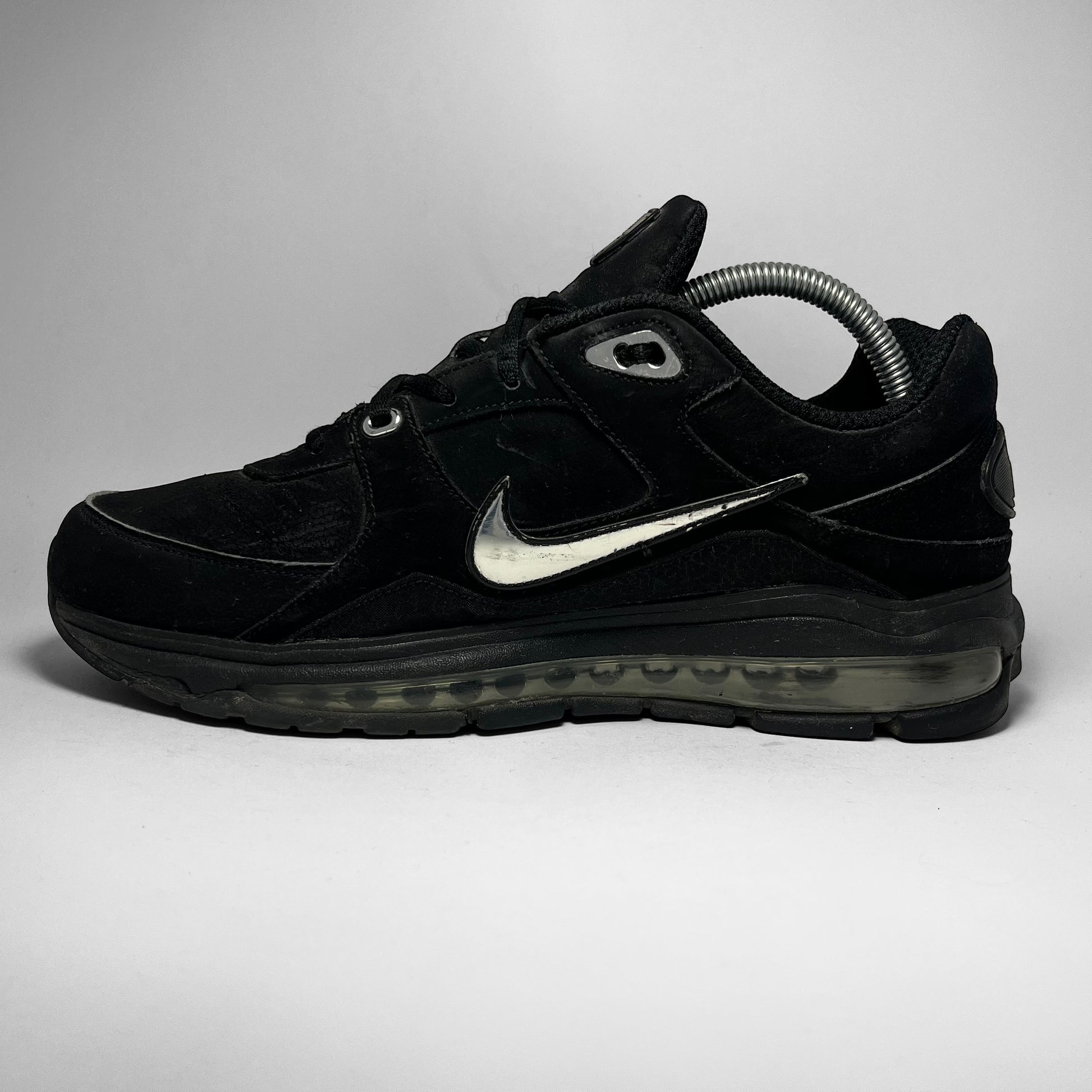 Black suede upper panels with a multitude of details on each part such as see-through detailed mesh overlay, perforated parts, hidden elephant print, leather panels and added rubber branded heel-patch, chrome eyelets and swoosh.
