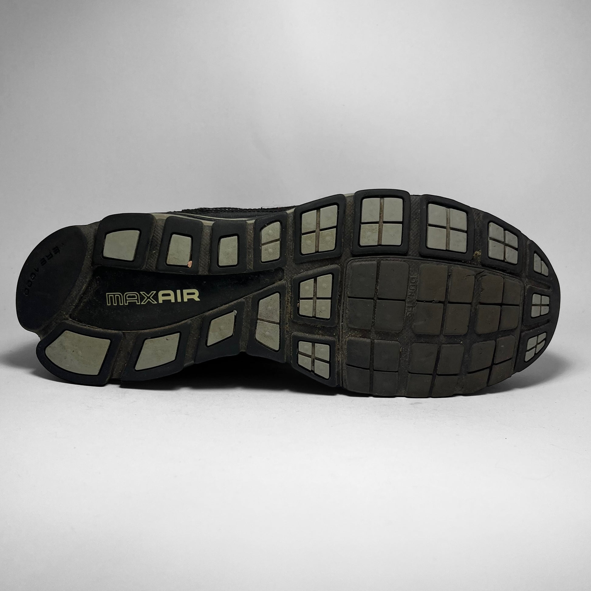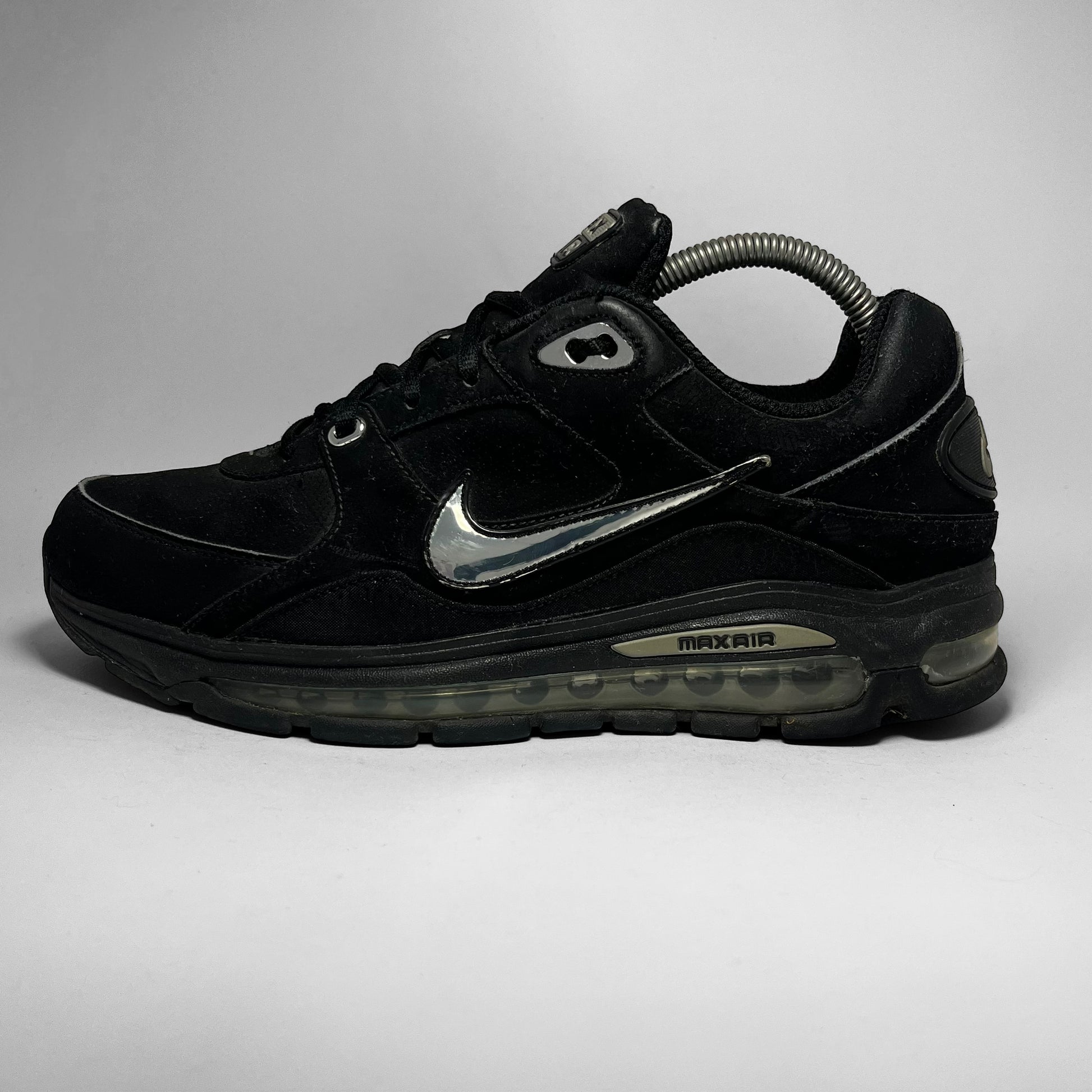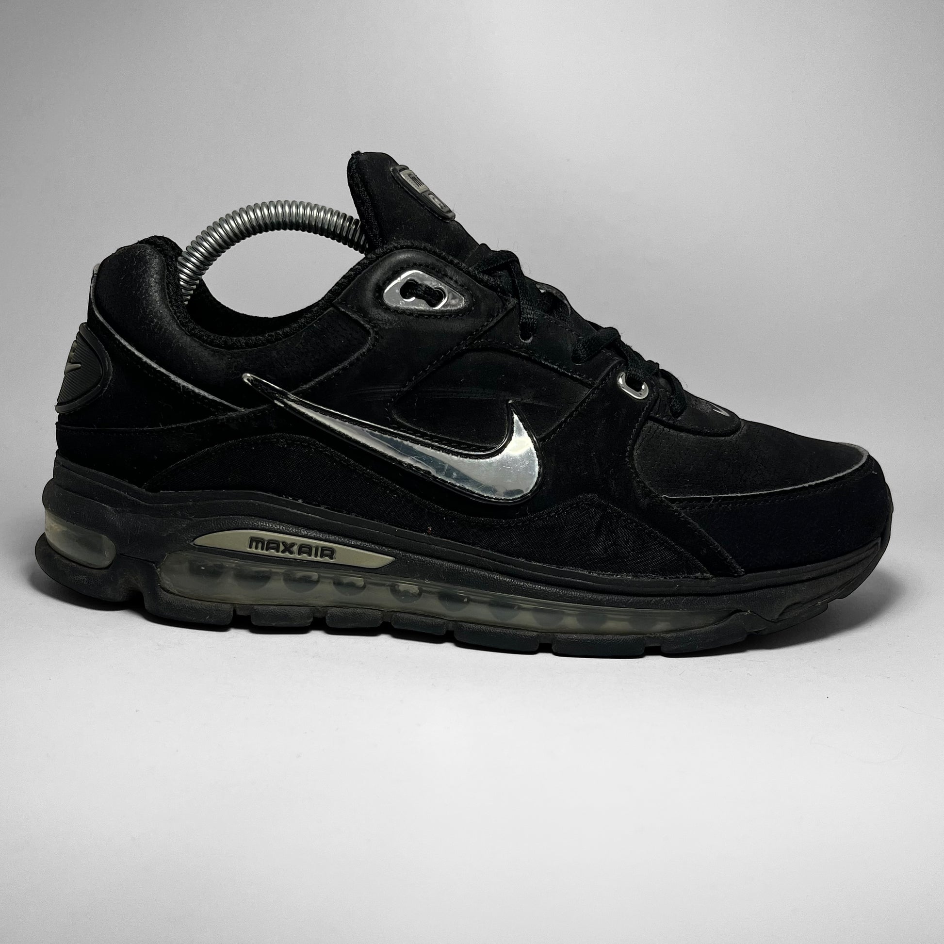 Black suede upper panels with a multitude of details on each part such as see-through detailed mesh overlay, perforated parts, hidden elephant print, leather panels and added rubber branded heel-patch, chrome eyelets and swoosh.