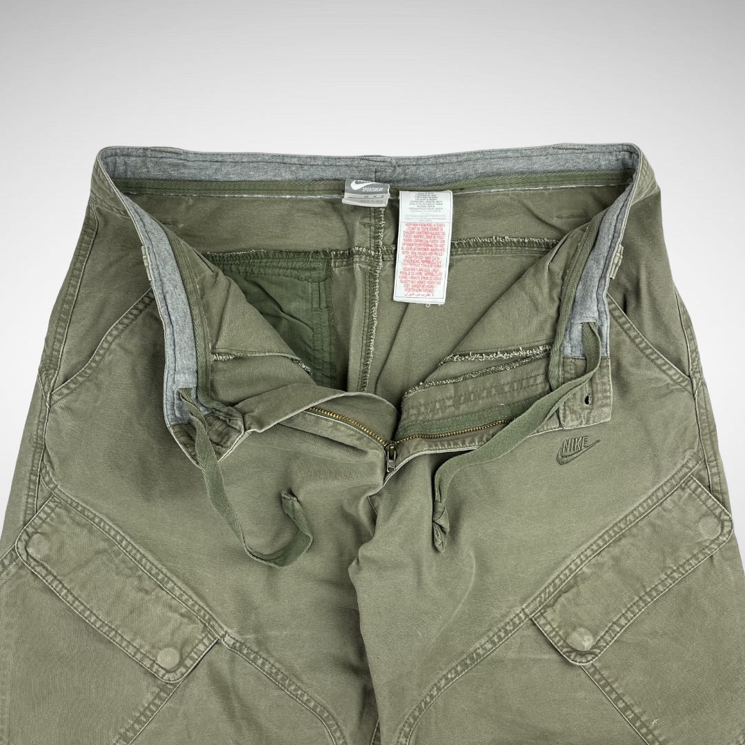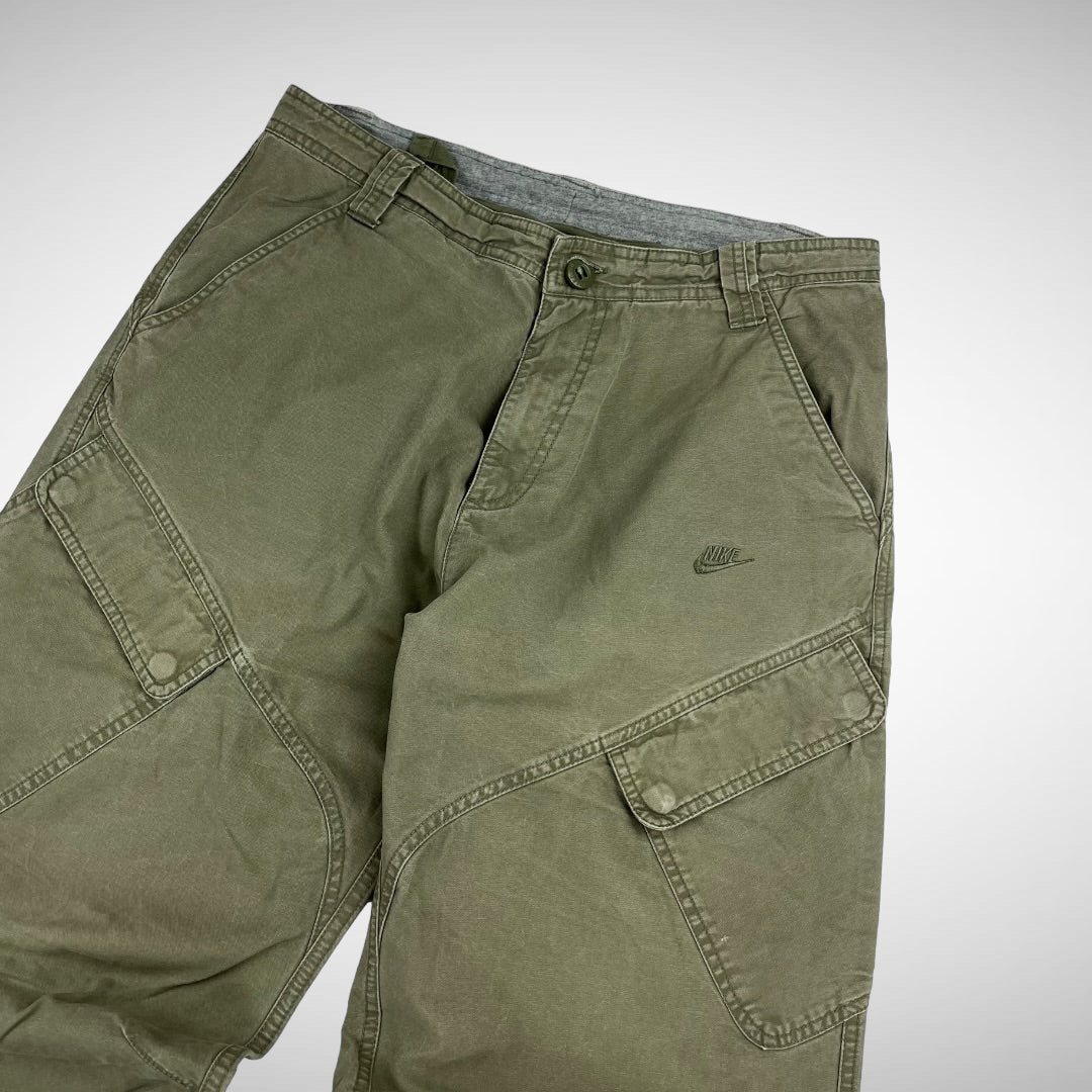 Army green Nike cargos with double press-button closure compartments and made in India.