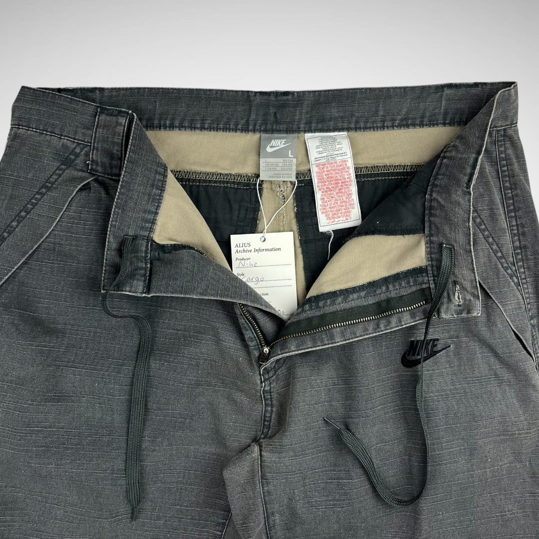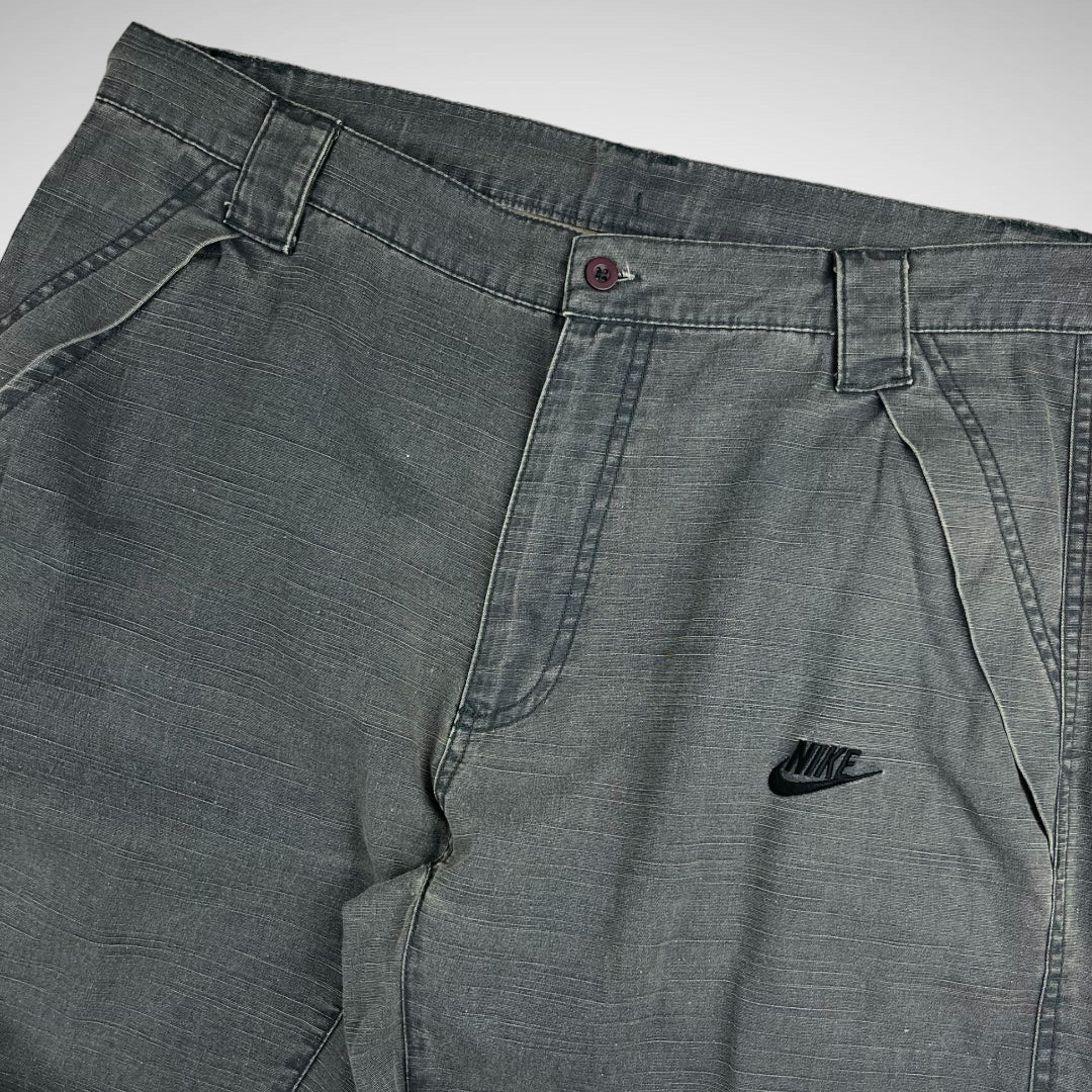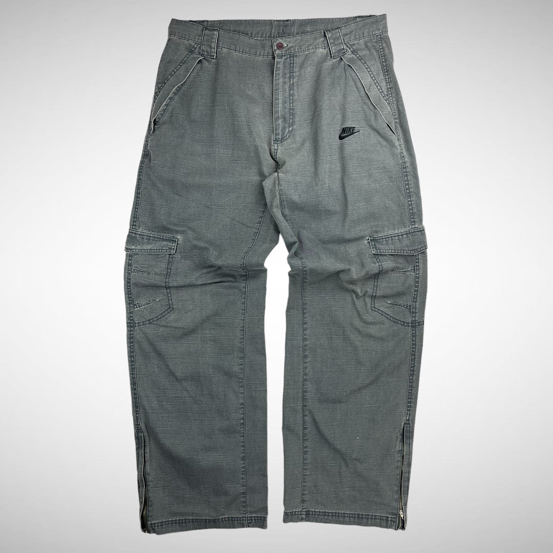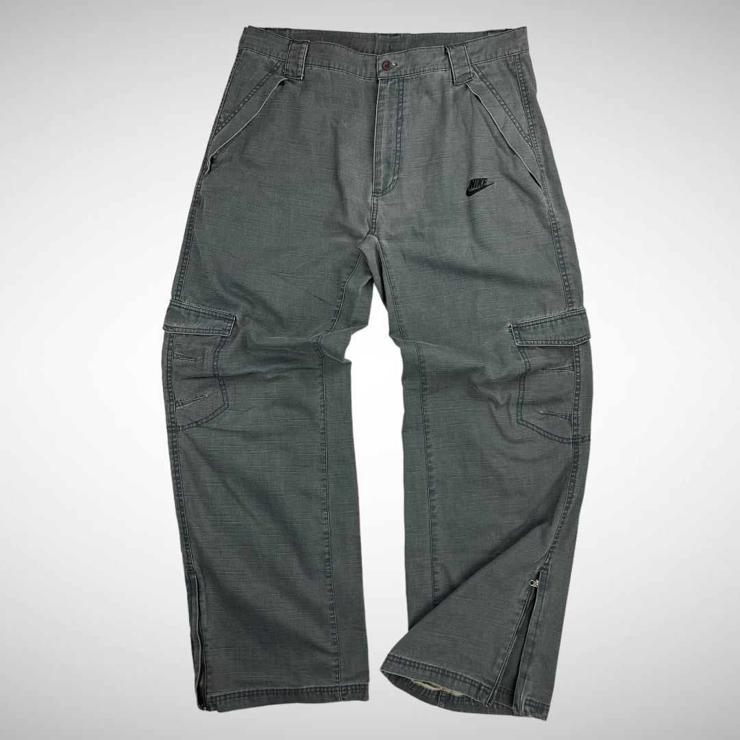 Perfect to blend your items in a dark-grey cotton washed finish with two upper pockets, double knee velcro-flap compartments with accentuated details, lower-leg zip to adjust to baggier fit, embroidered Nike on front, ropes to adjust waist on inside and double back pockets.