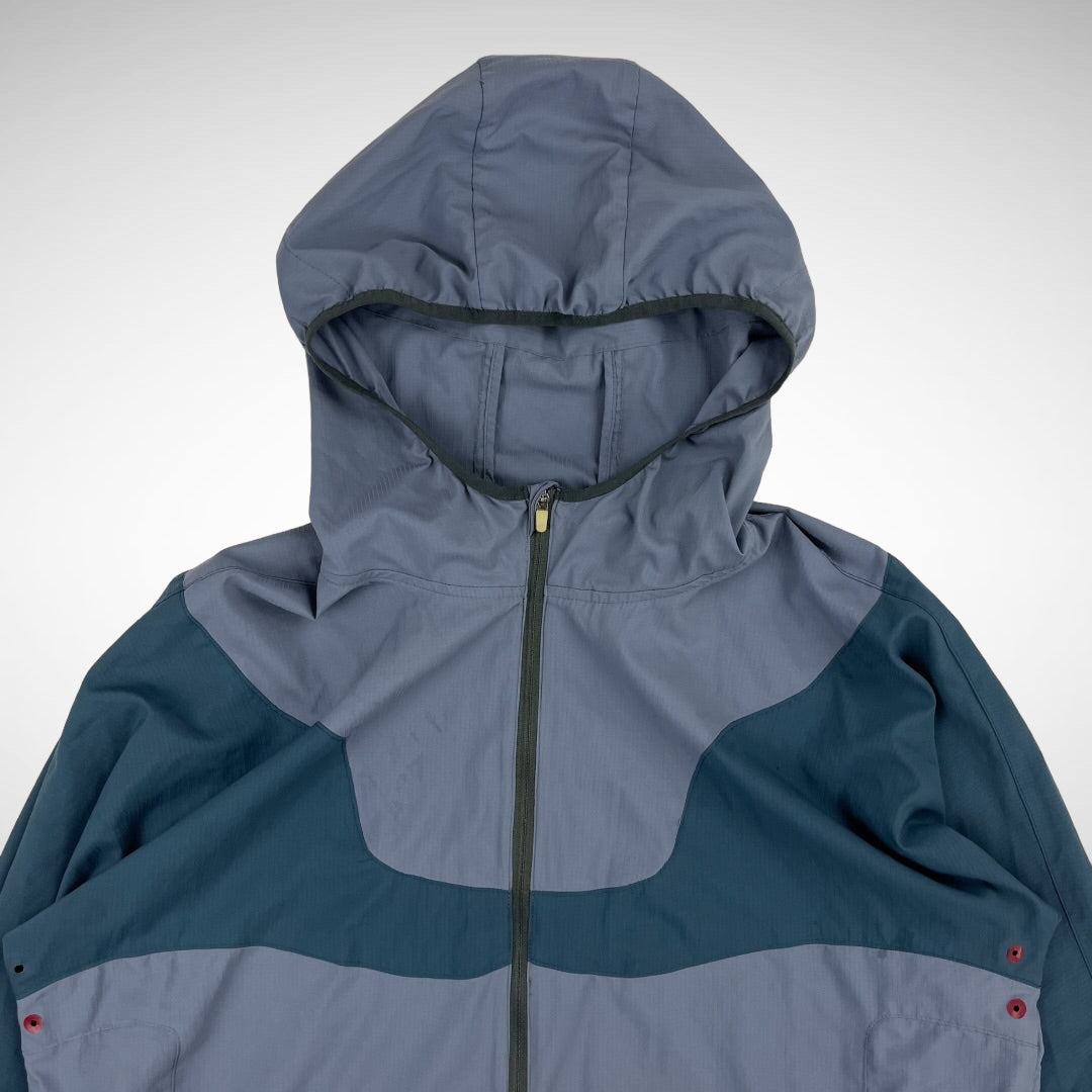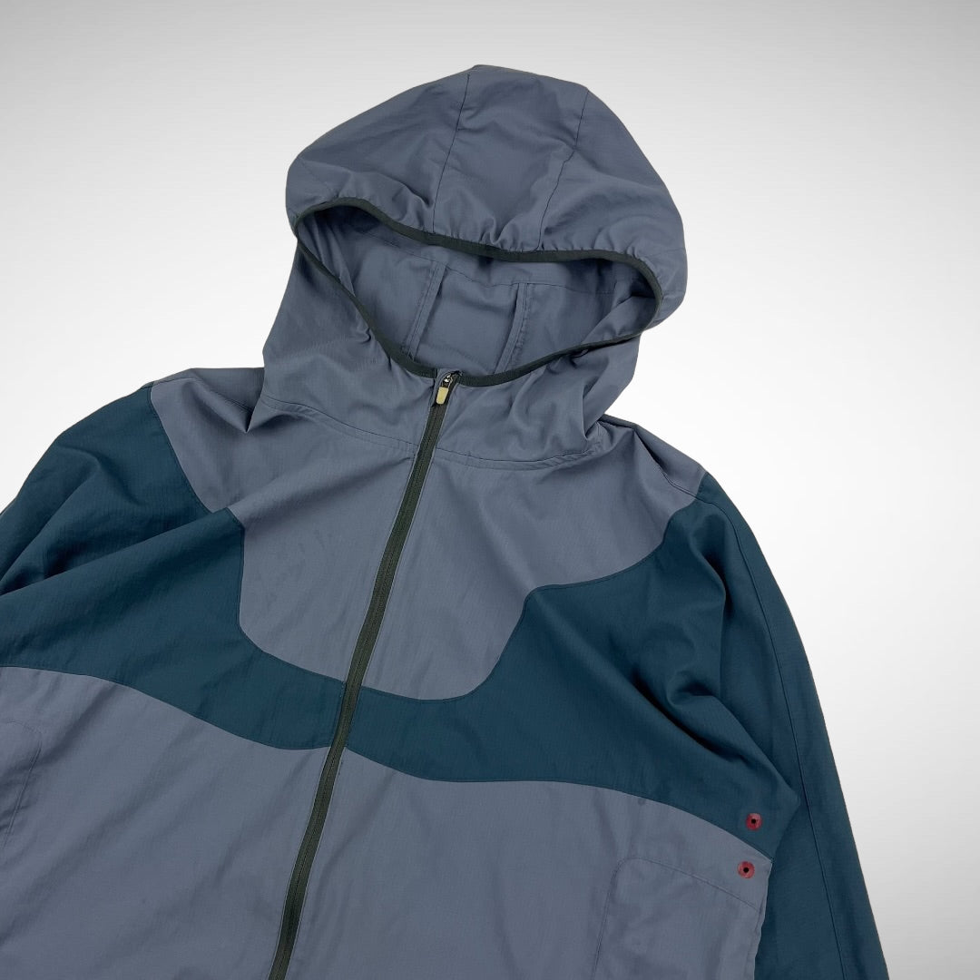 From the 2016 collection which was still produced in Japan showing the same colours and style used on the infamous Topo-jacket, wavy panels in a two-tone ocean colour-way, double front zip-pockets with 3M script print, highlighted arm-pit vents with a few missing and back print in 3M.