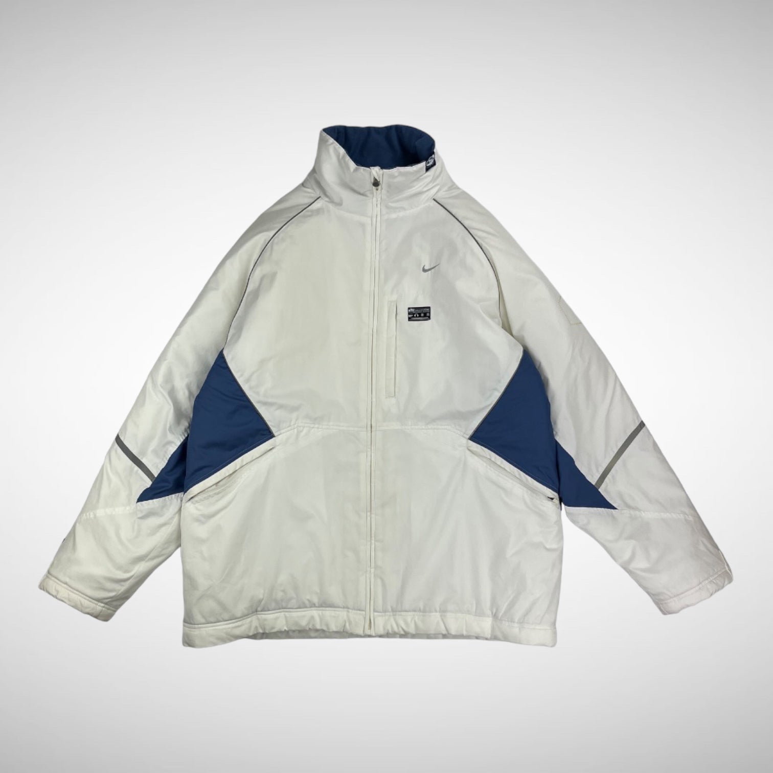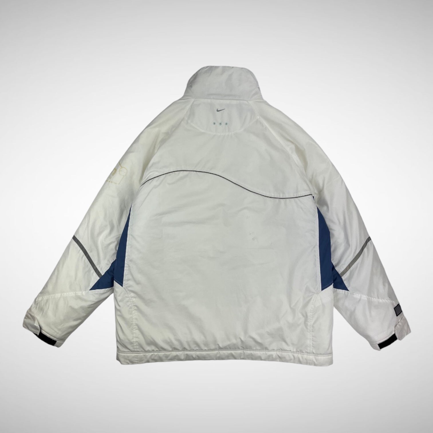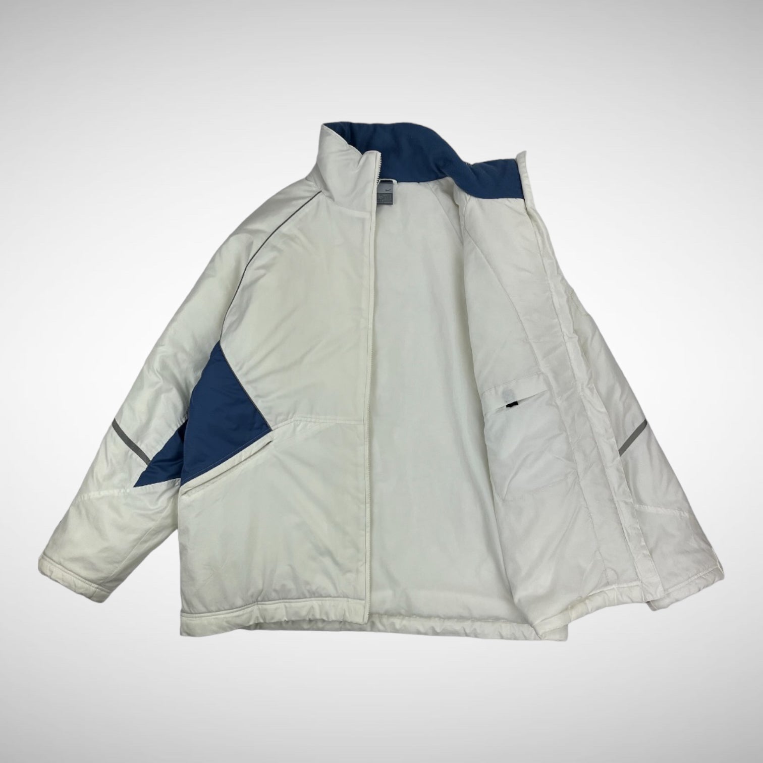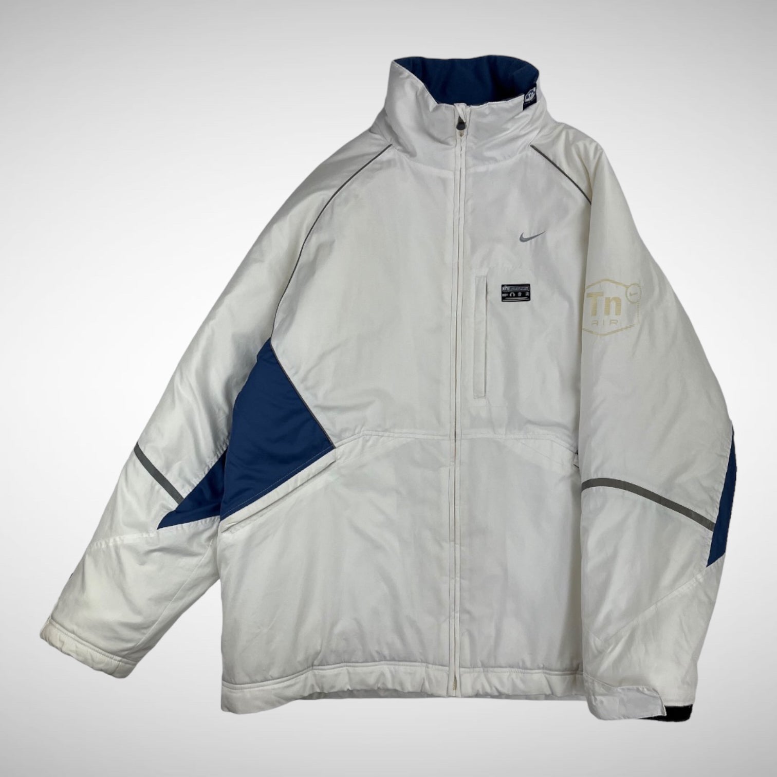 White and navy panelled outer with a multitude of TN branding, TN tag on collar, TN patch with MP3 on the chest including zip-pocket, 3M print on upper left arm and TN badge on lower left sleeve. Velcro adjustable cuffs, fleeced collar and two front zip-pockets.