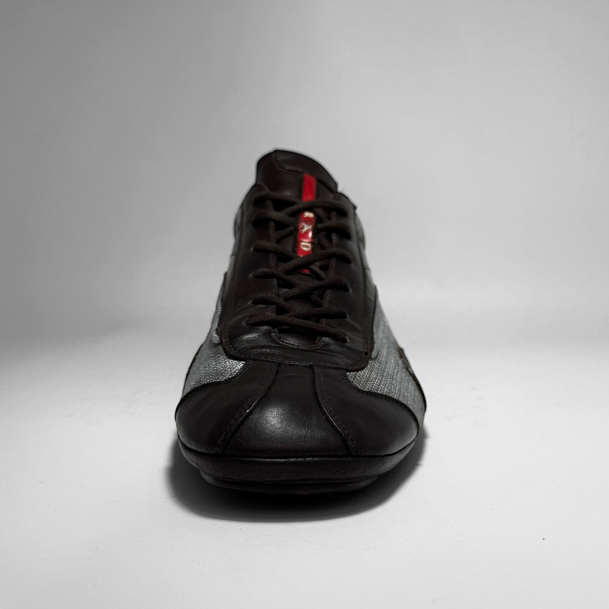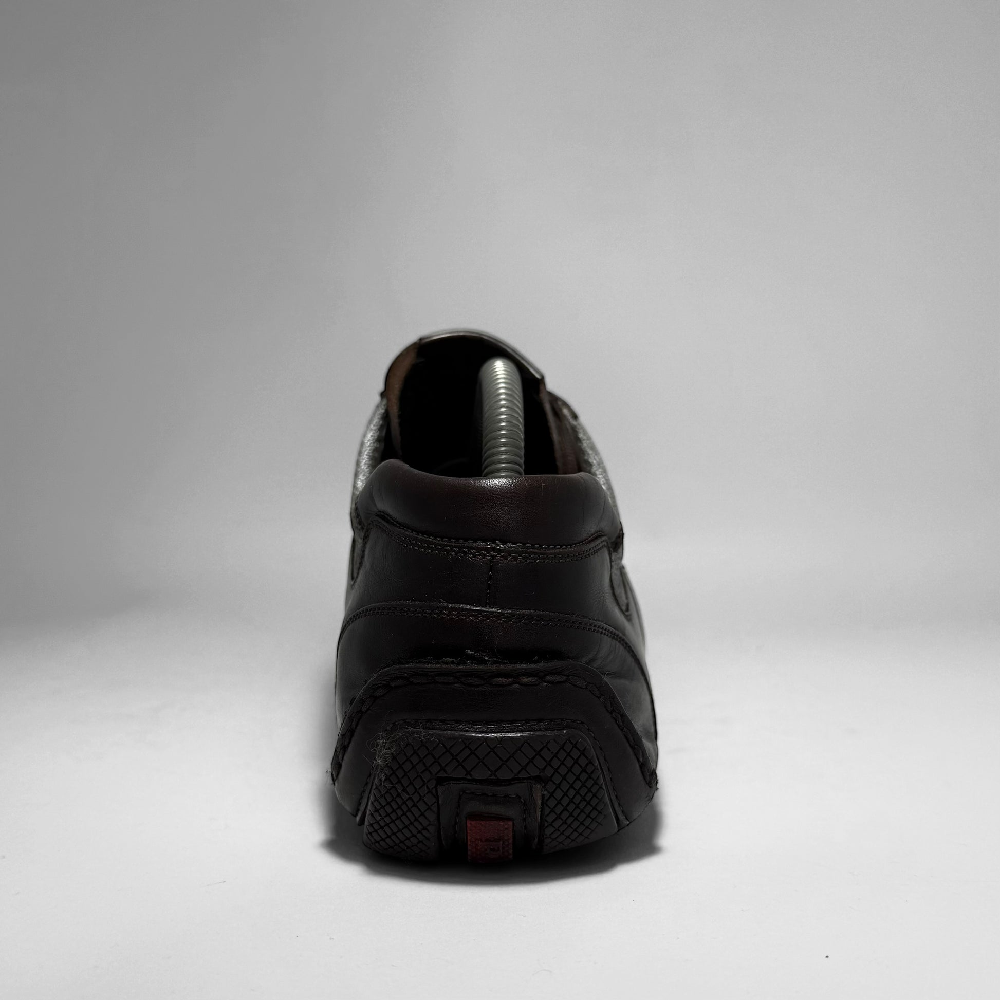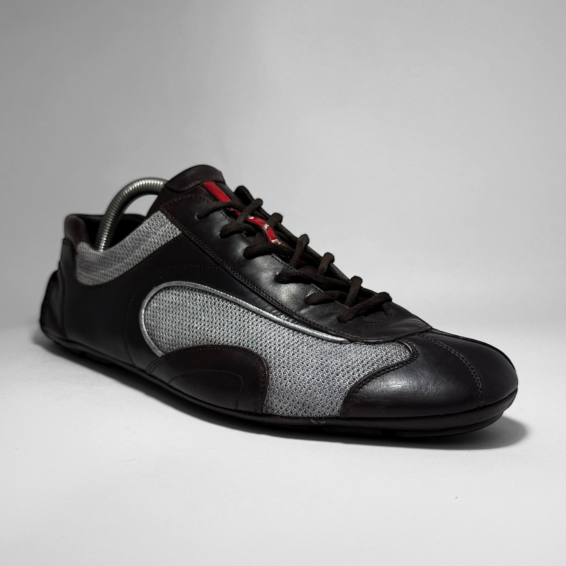 Built from smooth brown leather with a hint of black on the side-skirts, breathable silver mesh panels. Featuring streamlined overlays, subtle red branding hits, and a flexible rubber sole for a driving-inspired finish.