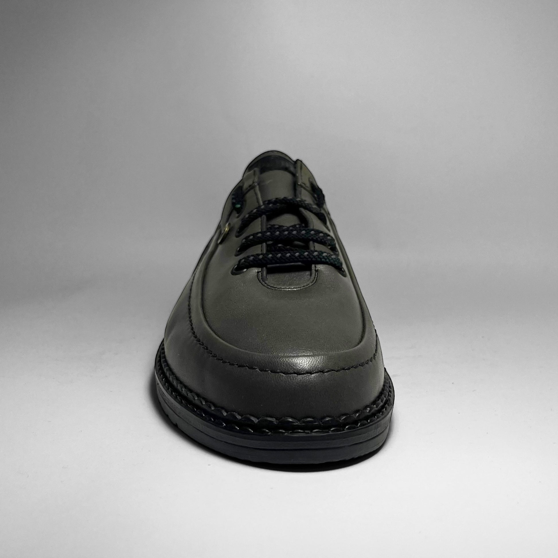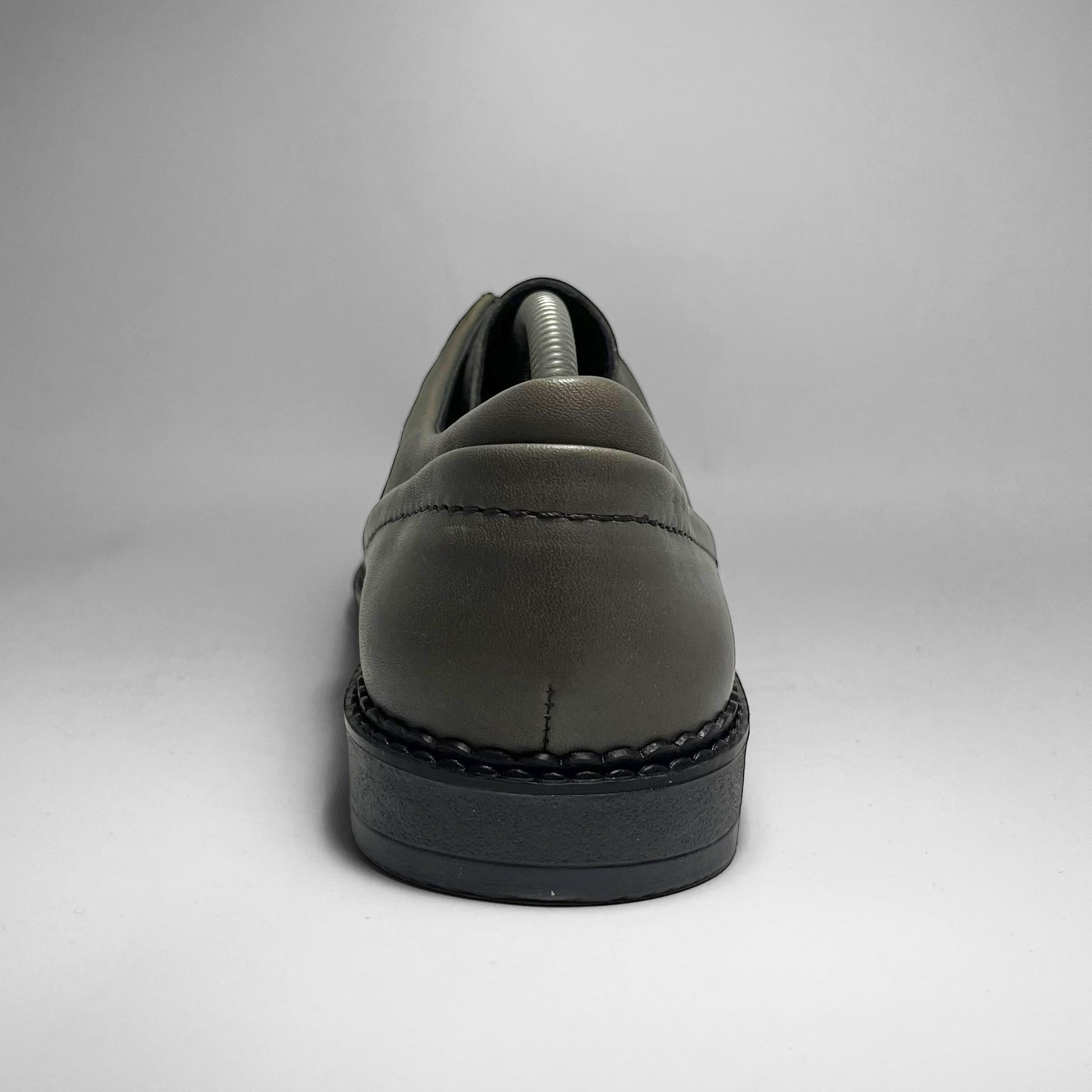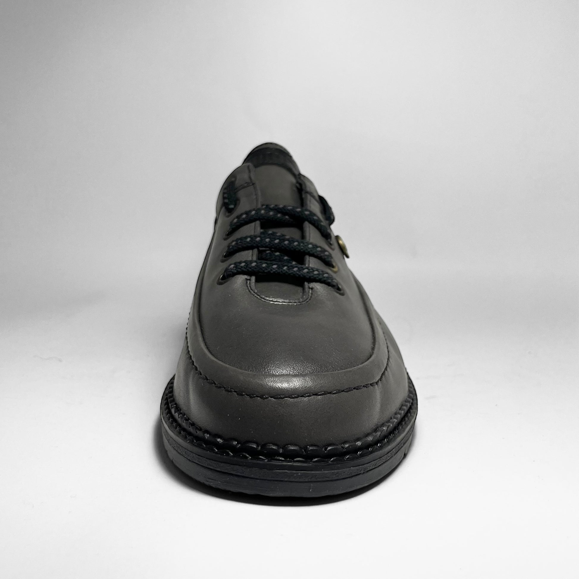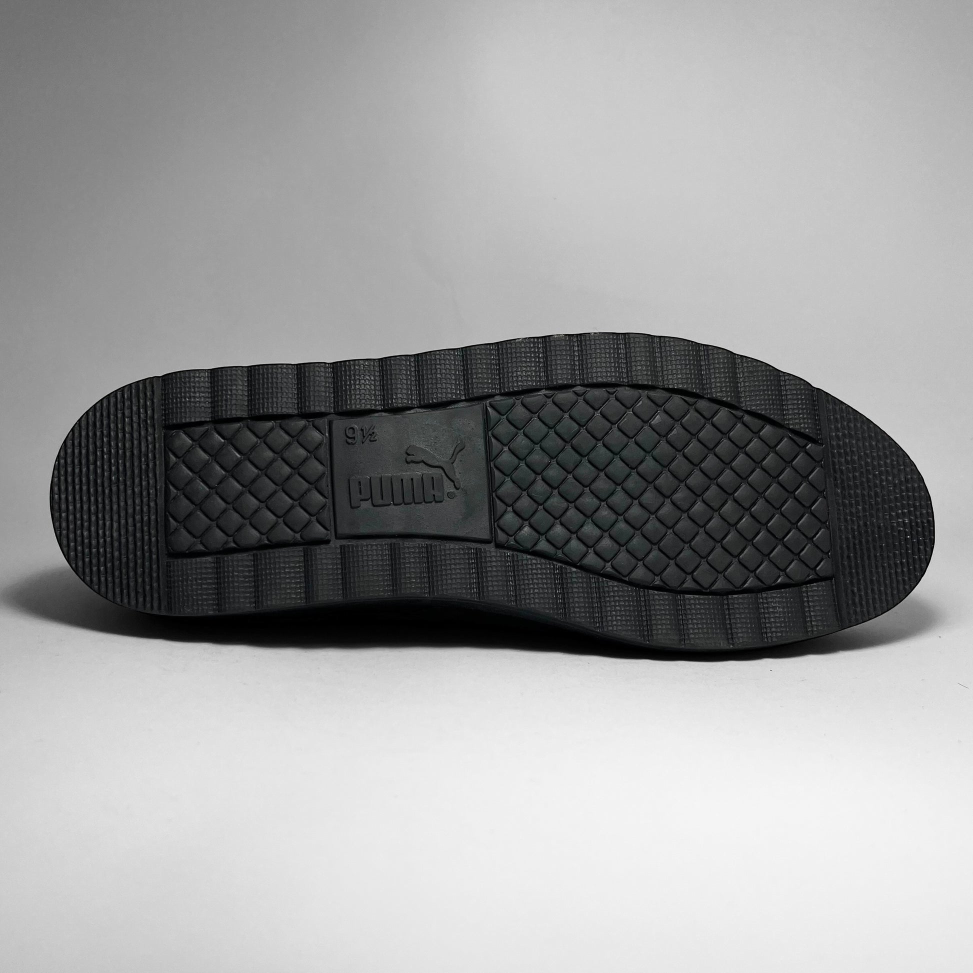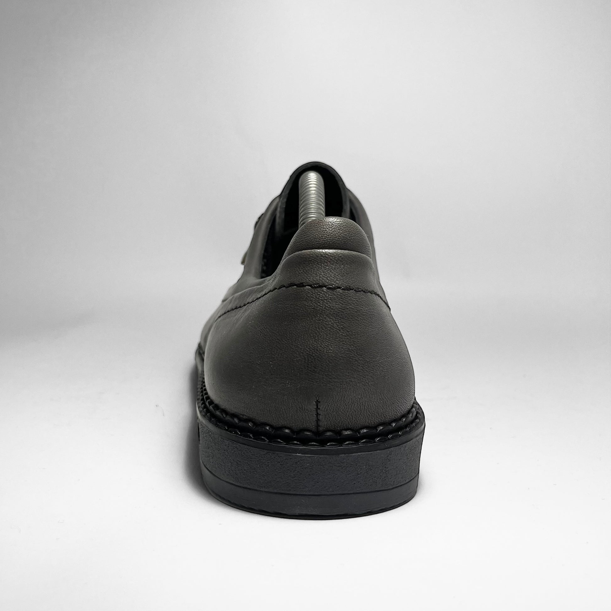 Premium leather in (dark) grey, Puma stamped metal coin as branding, stitched upper and sole with beautiful decorations, matching laces.