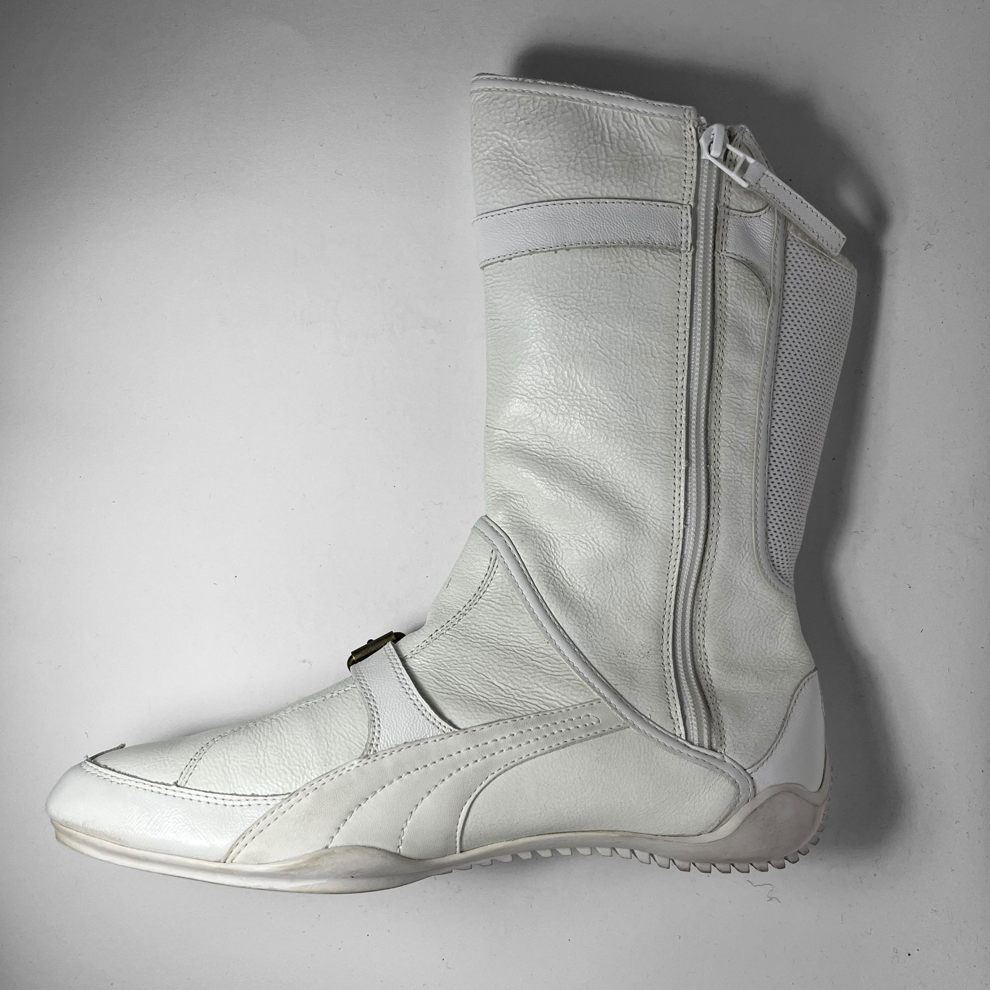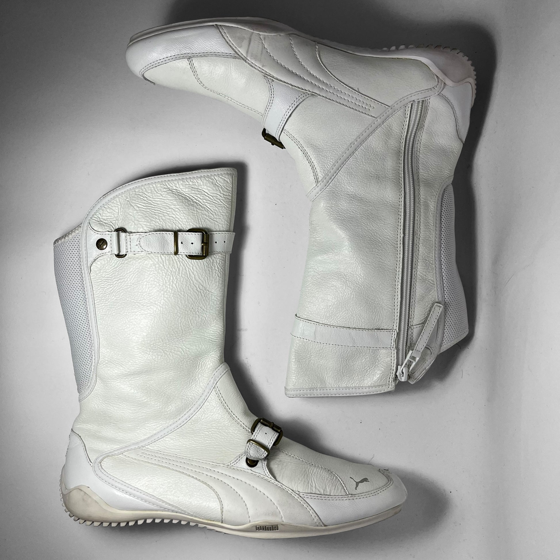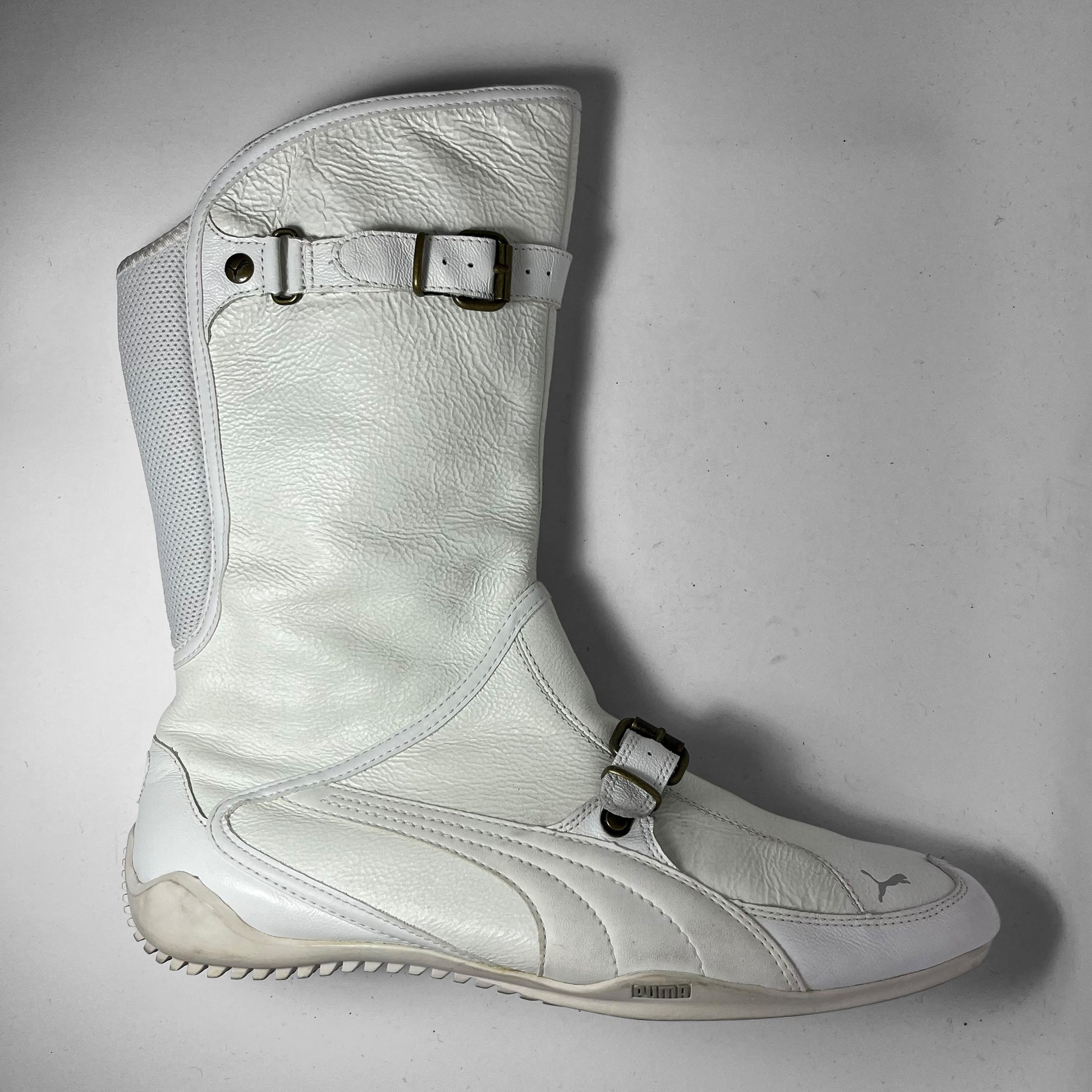 Hi-top boots made from premium leather in white, zip closure on the medial side, double buckle fastening, branding embossed metal studs, Puma print on front, mesh panel at heel and square shaped outsole.