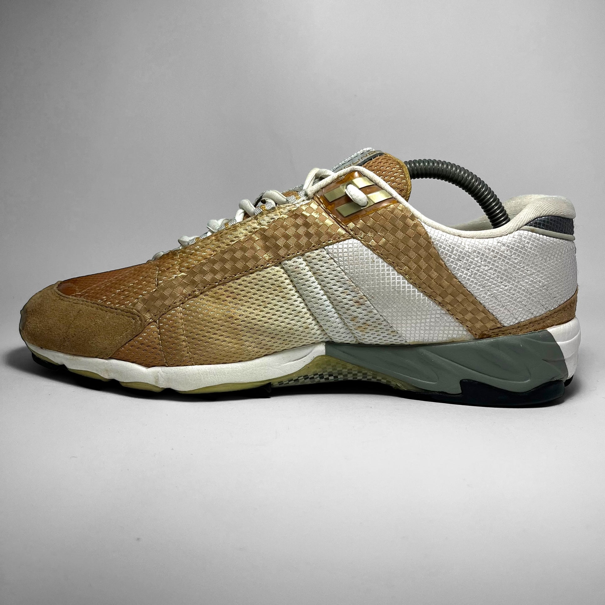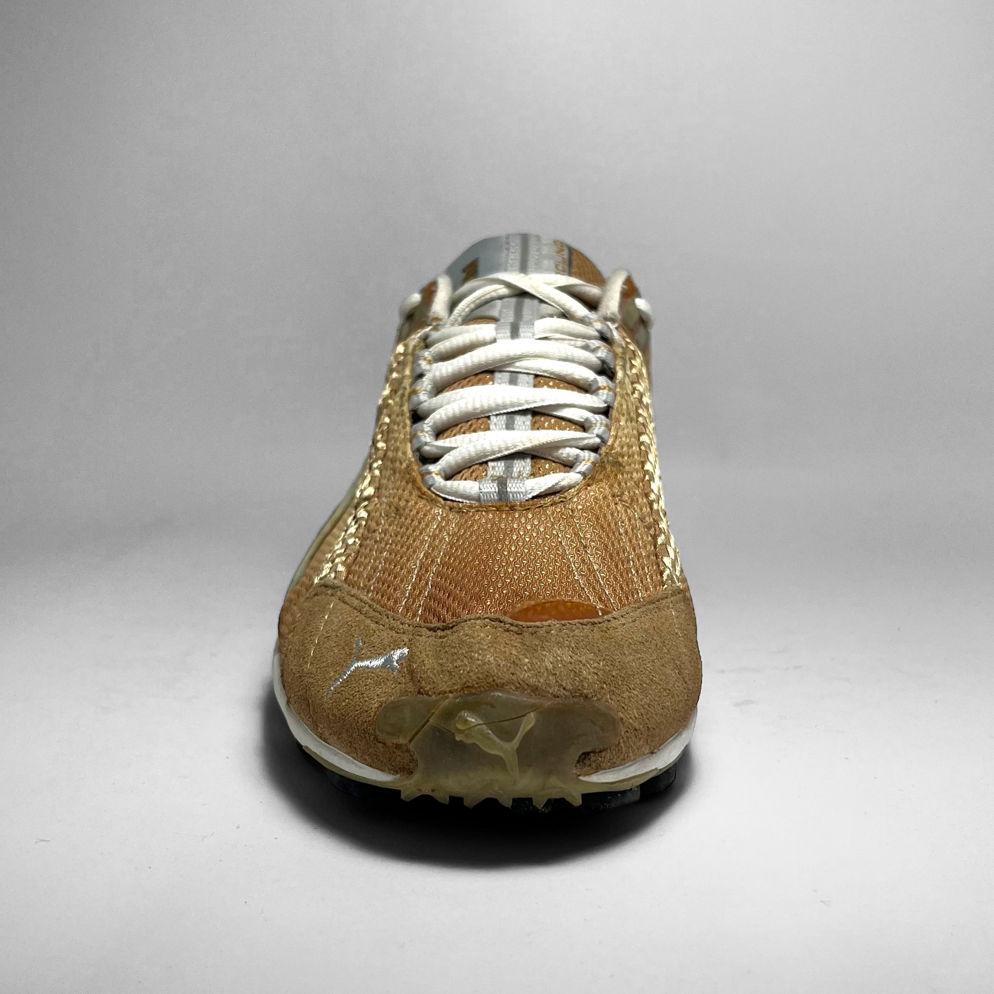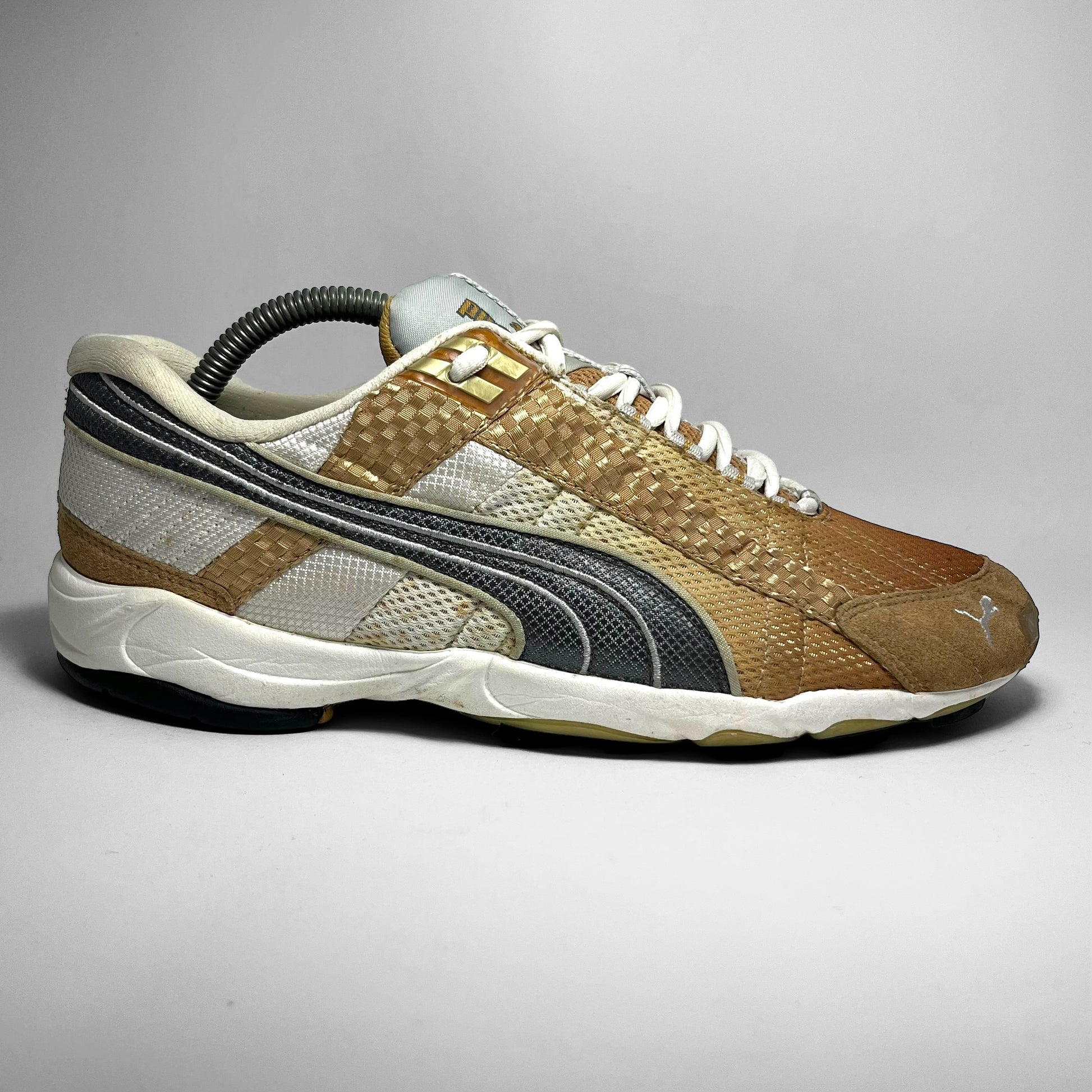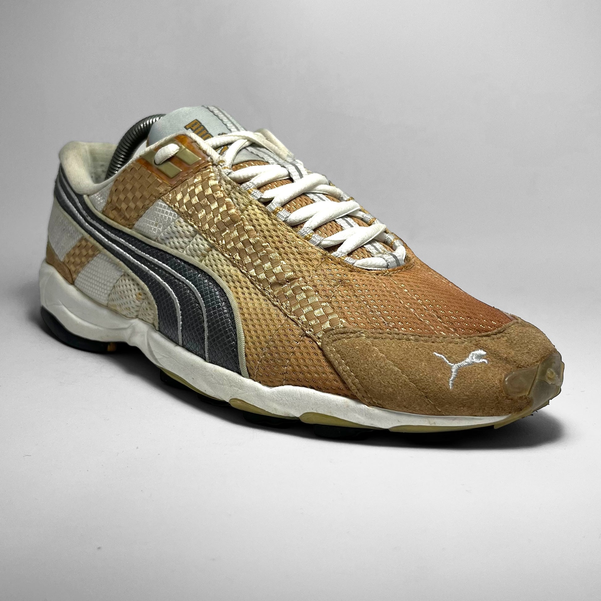 Unreleased edition of the Unbound showing the ultimate motorsport-era that Puma was in during the early 2000s. Rocking a fade on the double-layered mesh front part, woven panels along the sides, suede mudguard with embroidery, carbon-like logo and piping highlights, golden details near eyelets, and mesh tongue with unique branding. The outsole is made for grip, on every terrain.