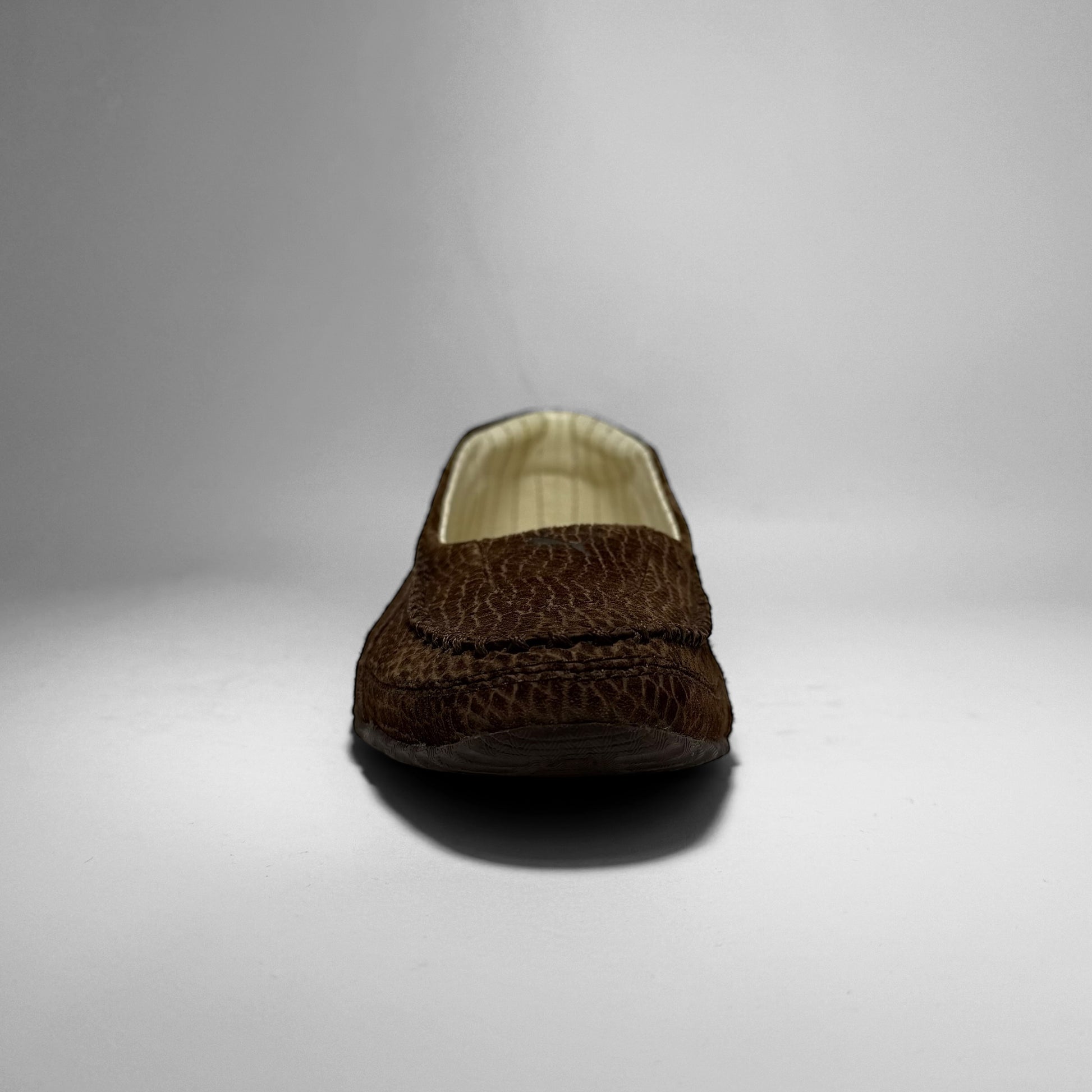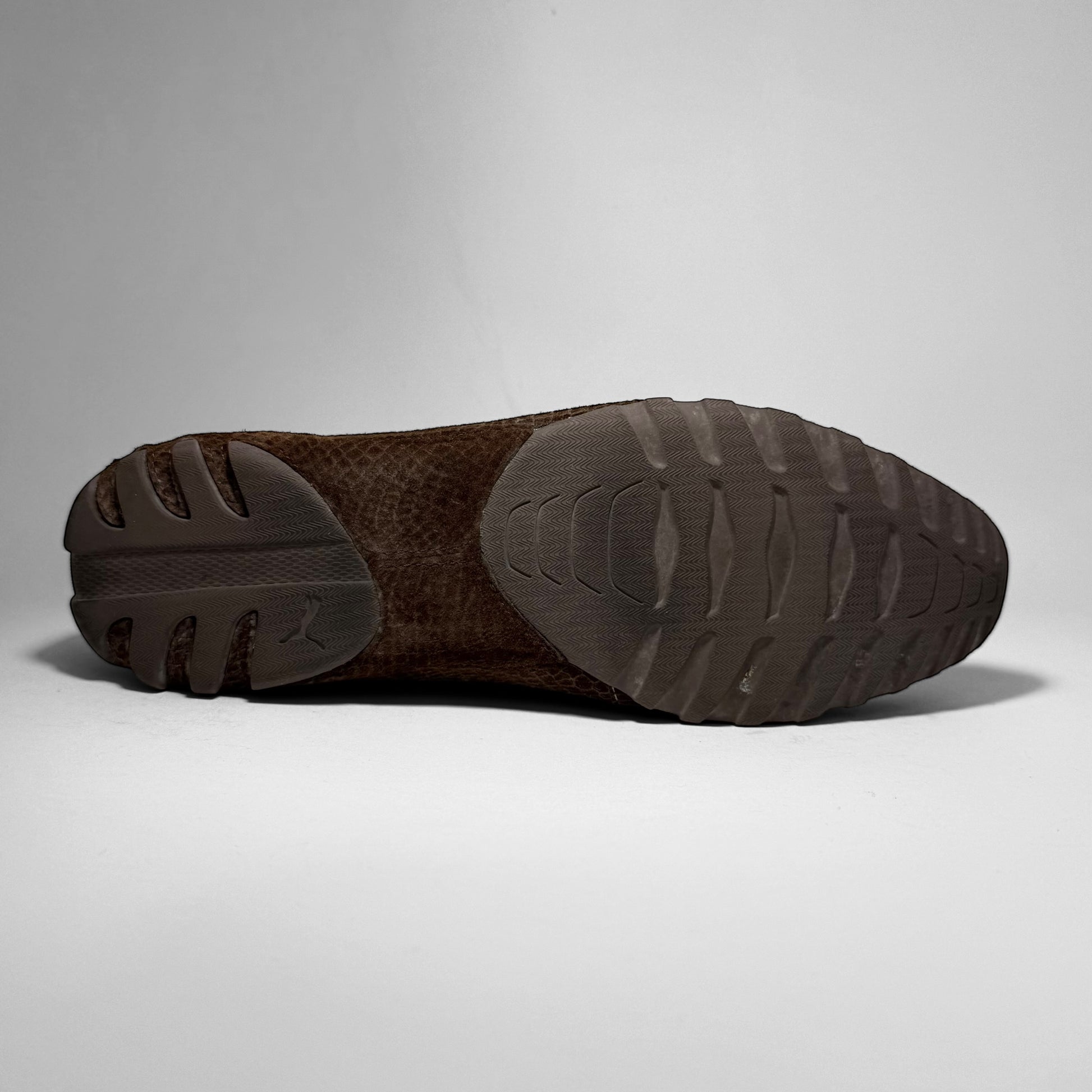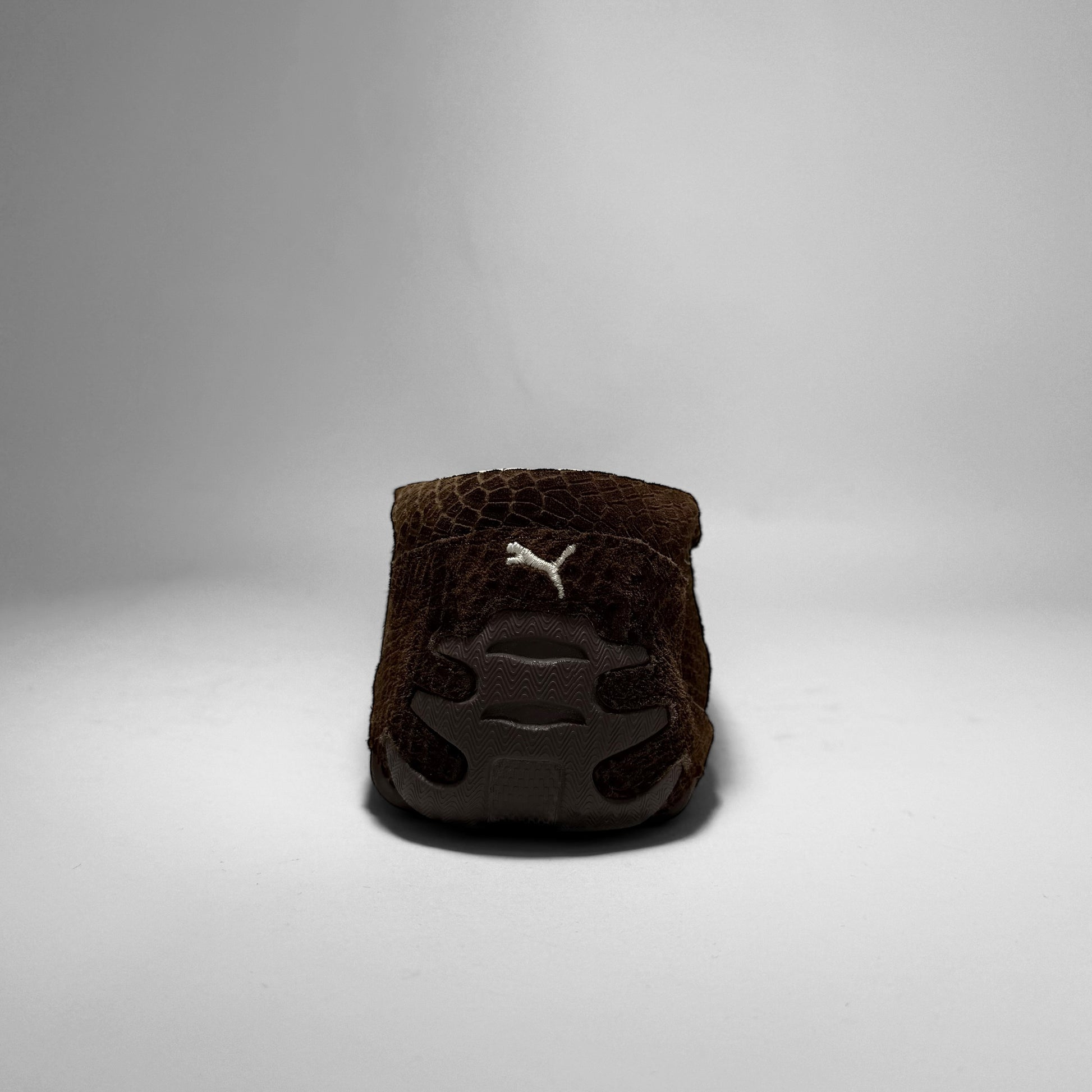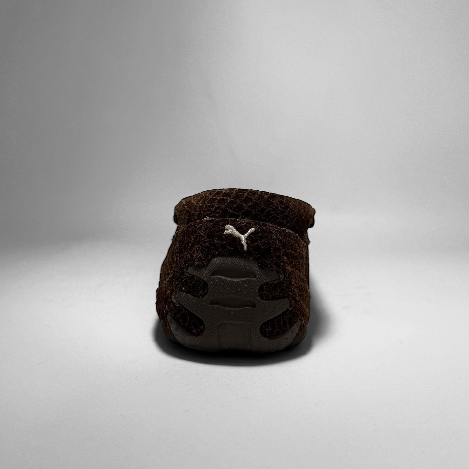 Crafted in brown croc textured suede with a low, driving-shoe silhouette. Features Ferrari branding on the side, a Puma logo on the heel, a cream quilt-lined interior, and a rubber split outsole with aggressive intakes throughout the heel.