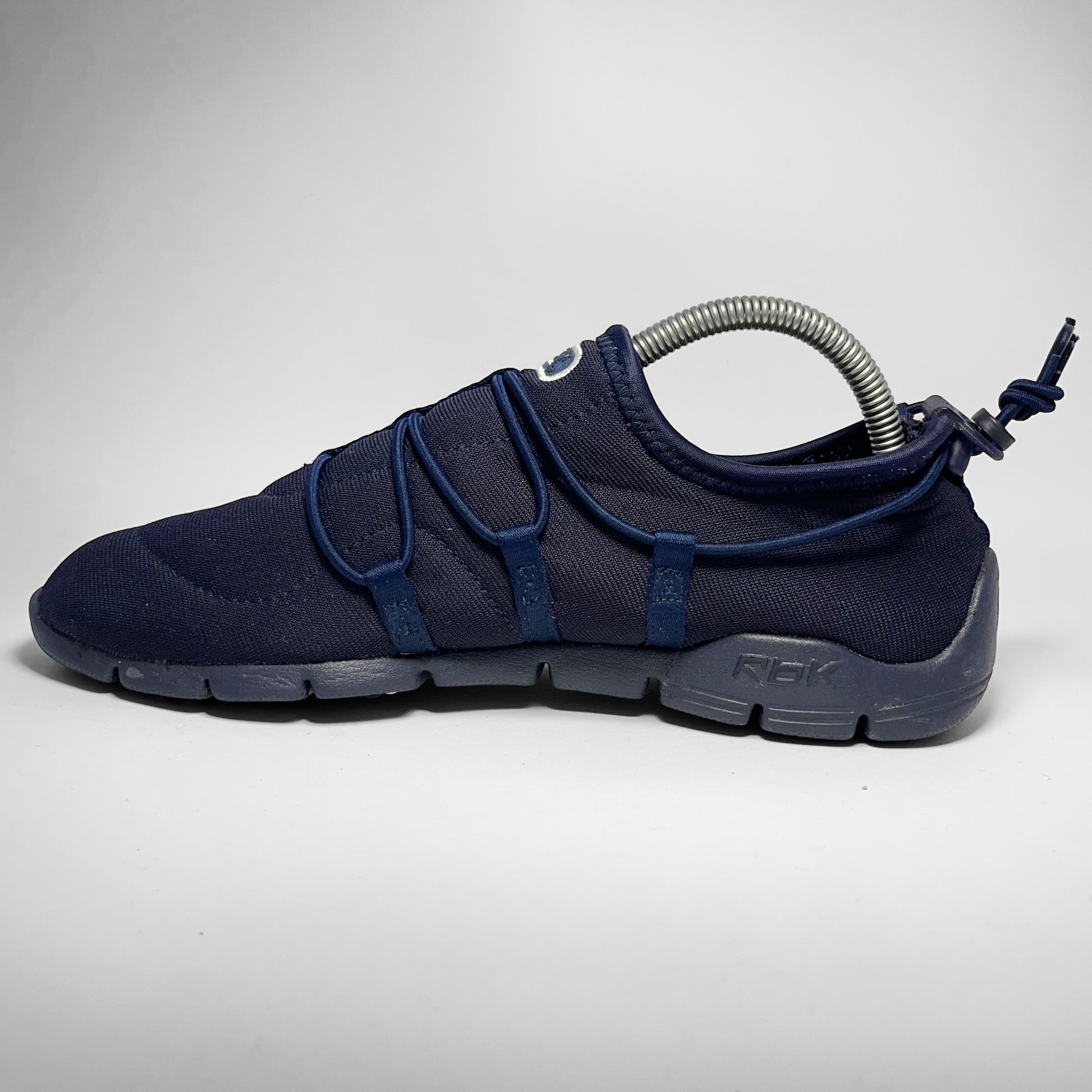Seen here is the Travel Trainer Low 2, with an elastic cord functioning as the lacing system ranging to the adjustable back-part toggle, slip-on model with comfy neoprene upper, TT and Reebok branding on top and front part as well as the back.
